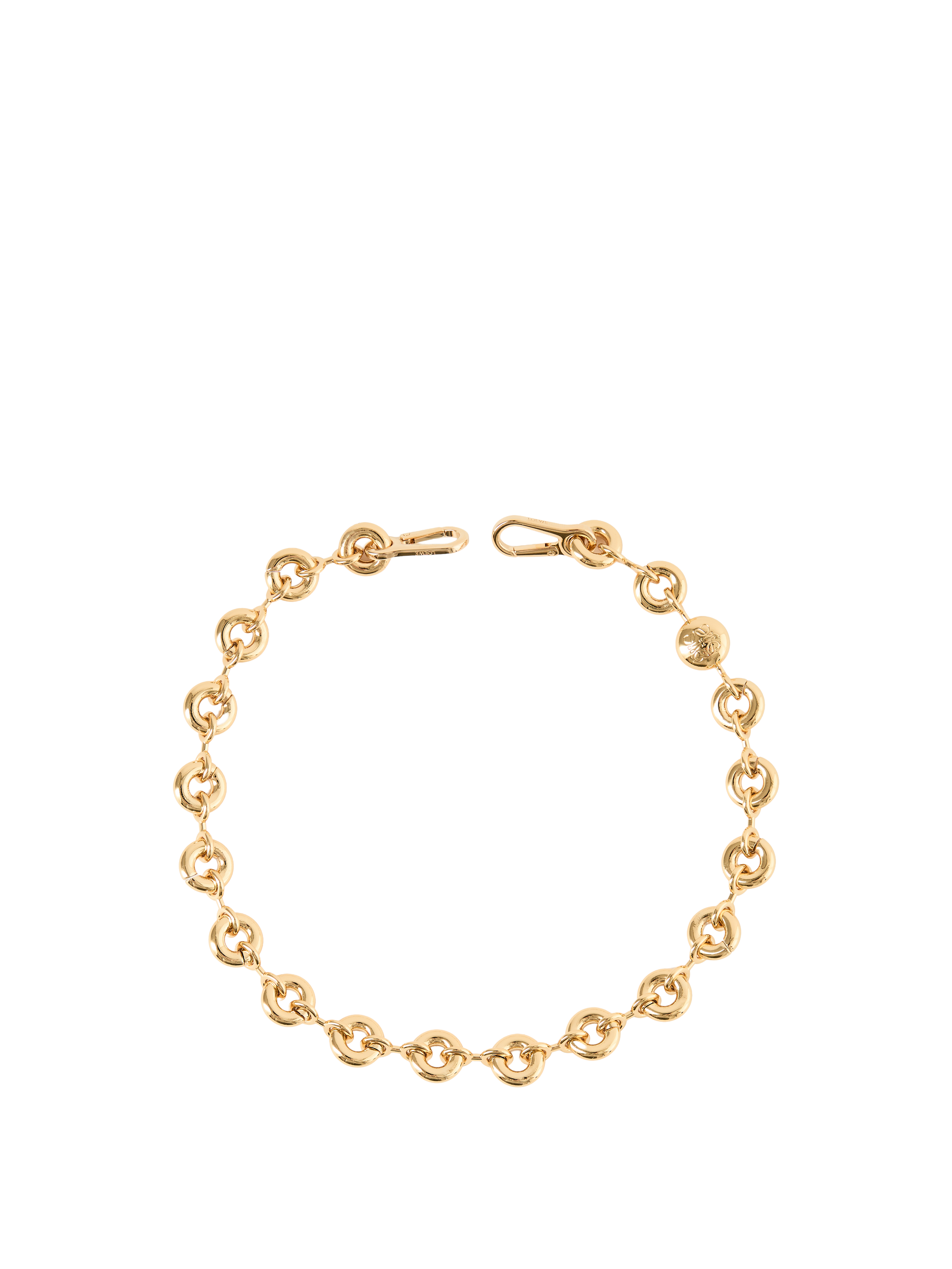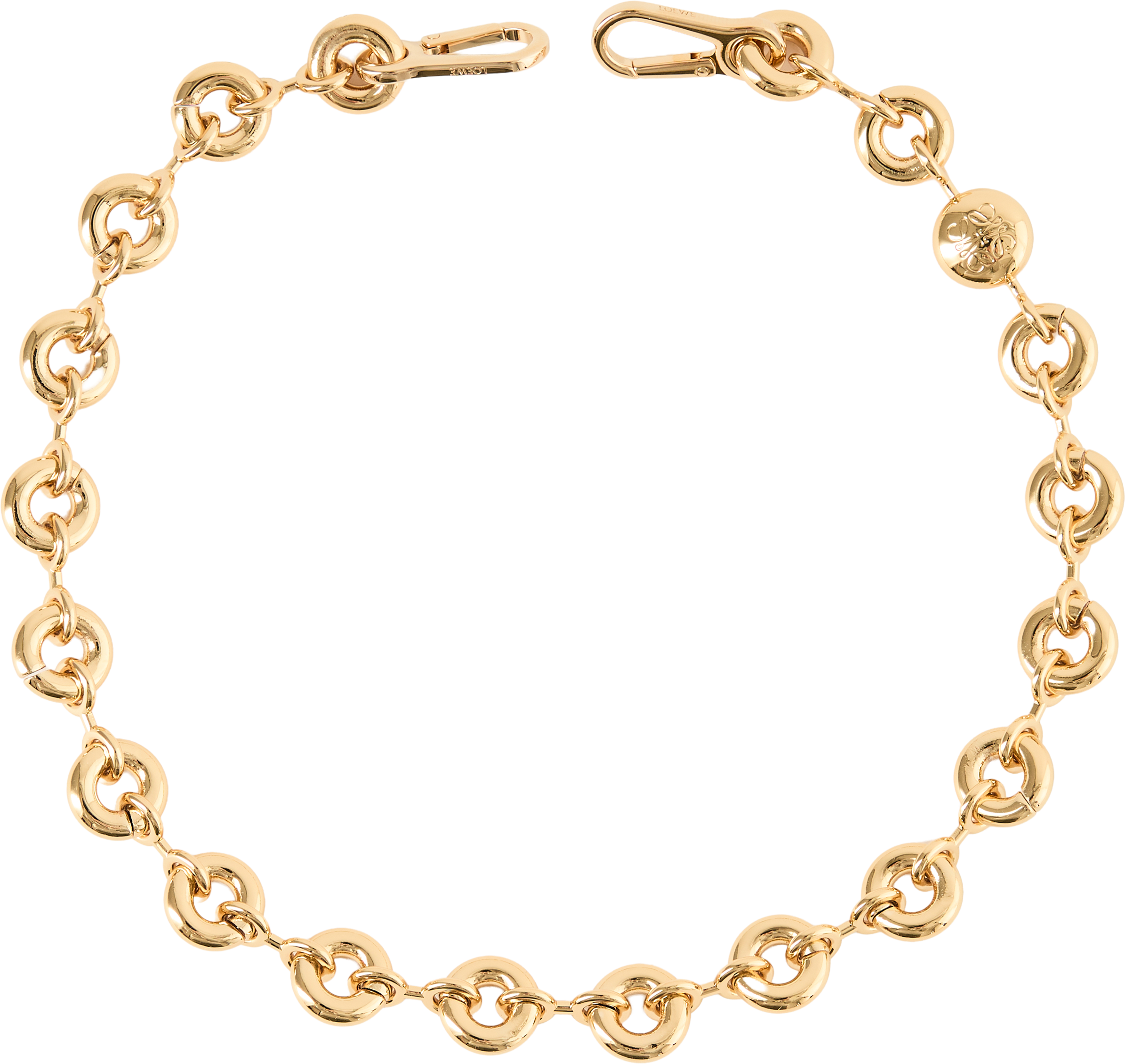 Der Kettenriemen 'Donut' in Gold von LOEWE wurde aus hochwertigem Messing gefertigt und mit einem glänzenden Finish edel abgerundet. Die markante Gliederform verleiht jeder Tasche ein modernes Update. Ein praktischer Hakenverschluss mit dezenter LOEWE-Gravur sorgt für eine einfache Befestigung und rundet das luxuriöse Design funktional ab.