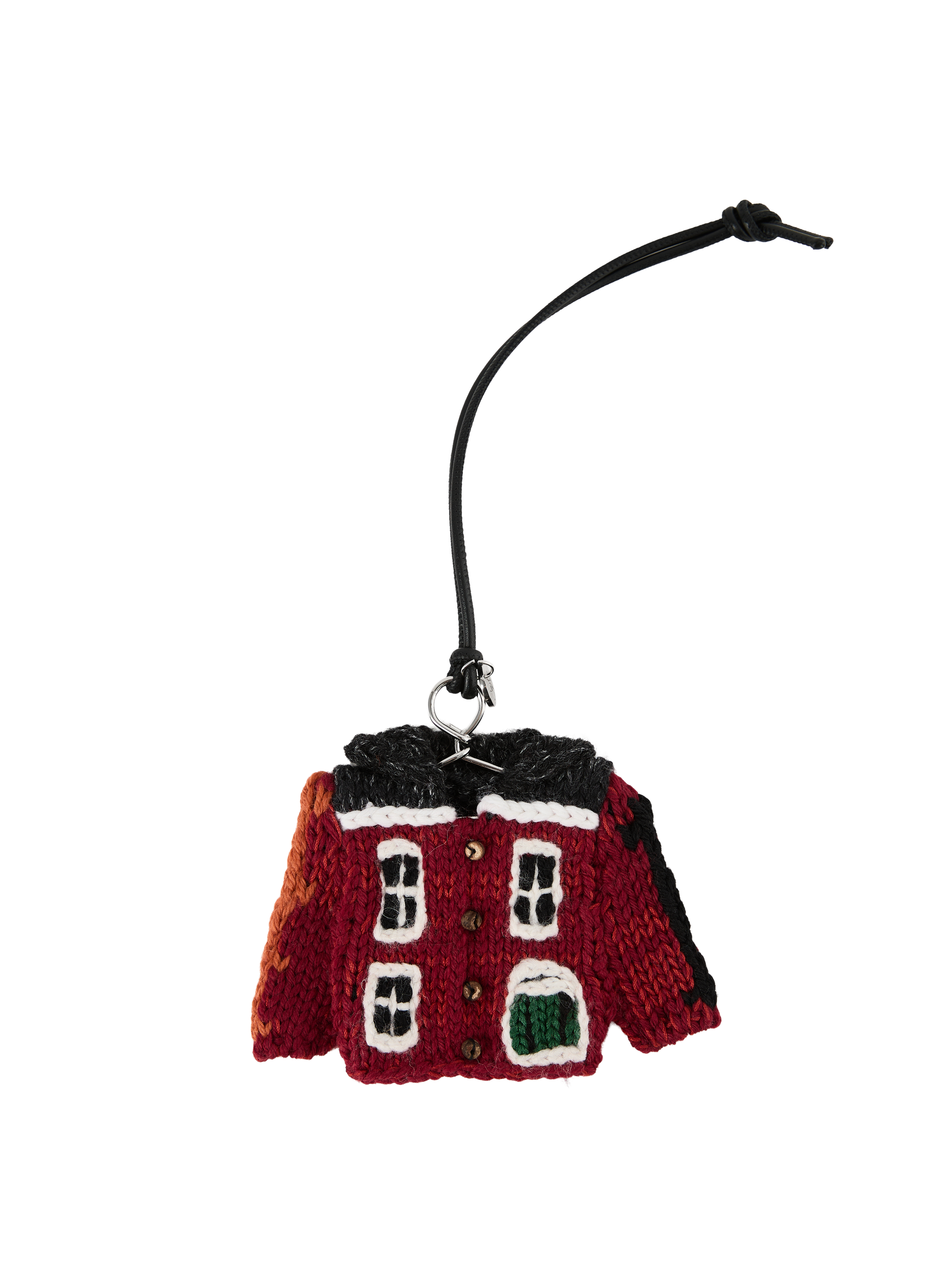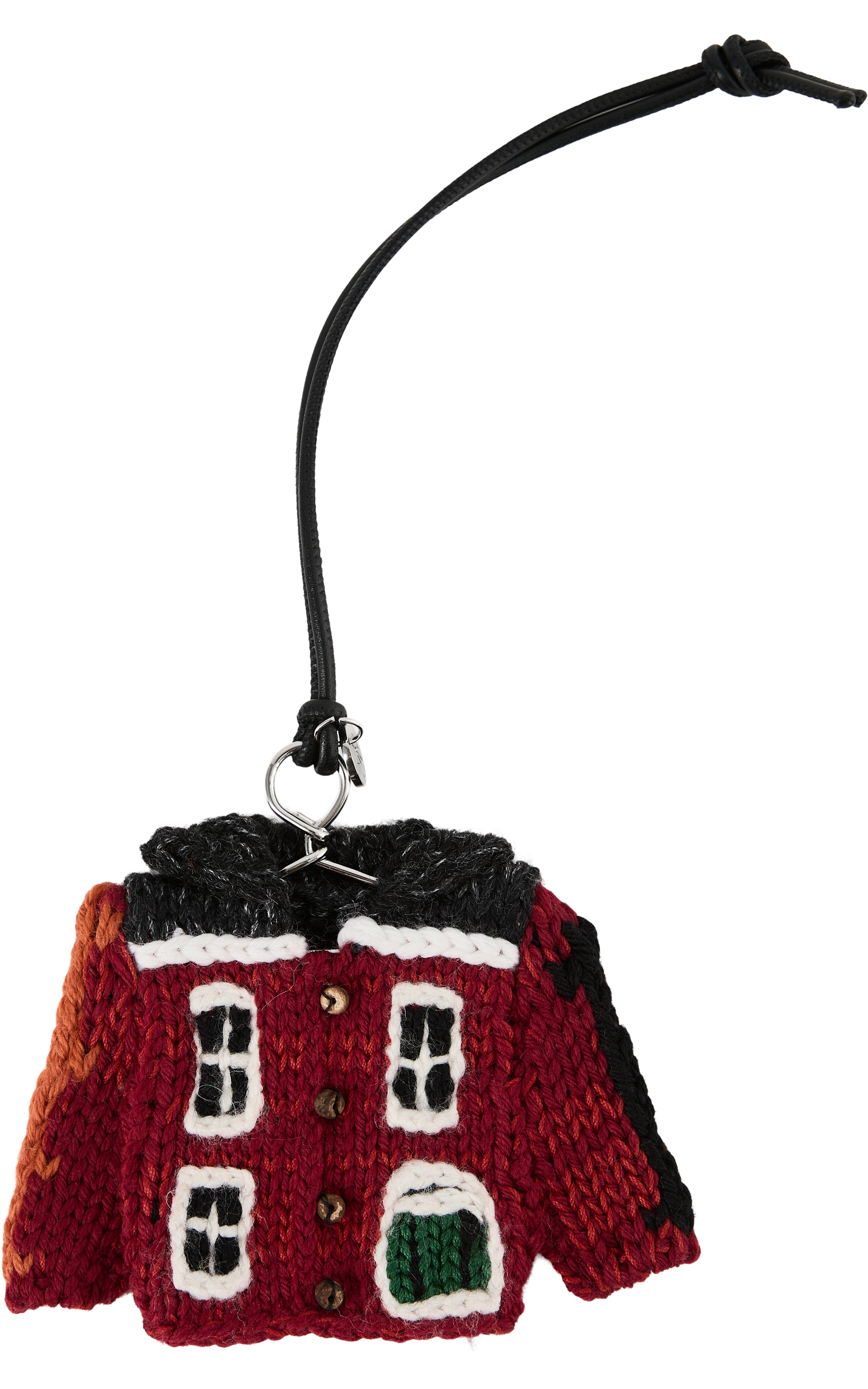Der Anhänger 'House' in Braun von JW Anderson ist aus einer hochwertigen Wollmischung gefertigt und besticht durch sein Design in Form eines Strickcardigans. Die handgestickten Details aus mercerisiertem Baumwollgarn, ein Medaillon mit Logogravur sowie eine Lederkordel runden das Modell stilvoll ab.