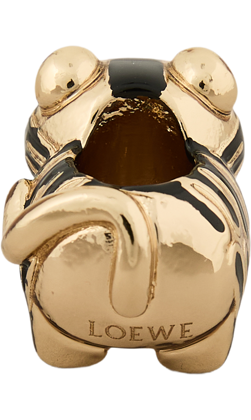 Der Würfel 'Tiger Dice' in Gold von LOEWE wurde aus hochwertigem Messing mit einem glänzenden Emaille-Finish gefertigt und besticht durch sein verspieltes Tiger-Motiv. Dieser Personalisierungswürfel lässt sich individuell mit anderen Elementen kombinieren, während die feine LOEWE-Gravur das exklusive Design stilvoll abrundet. Ein charmantes Detail, um Taschen oder Schlüsselanhänger einzigartig zu gestalten.