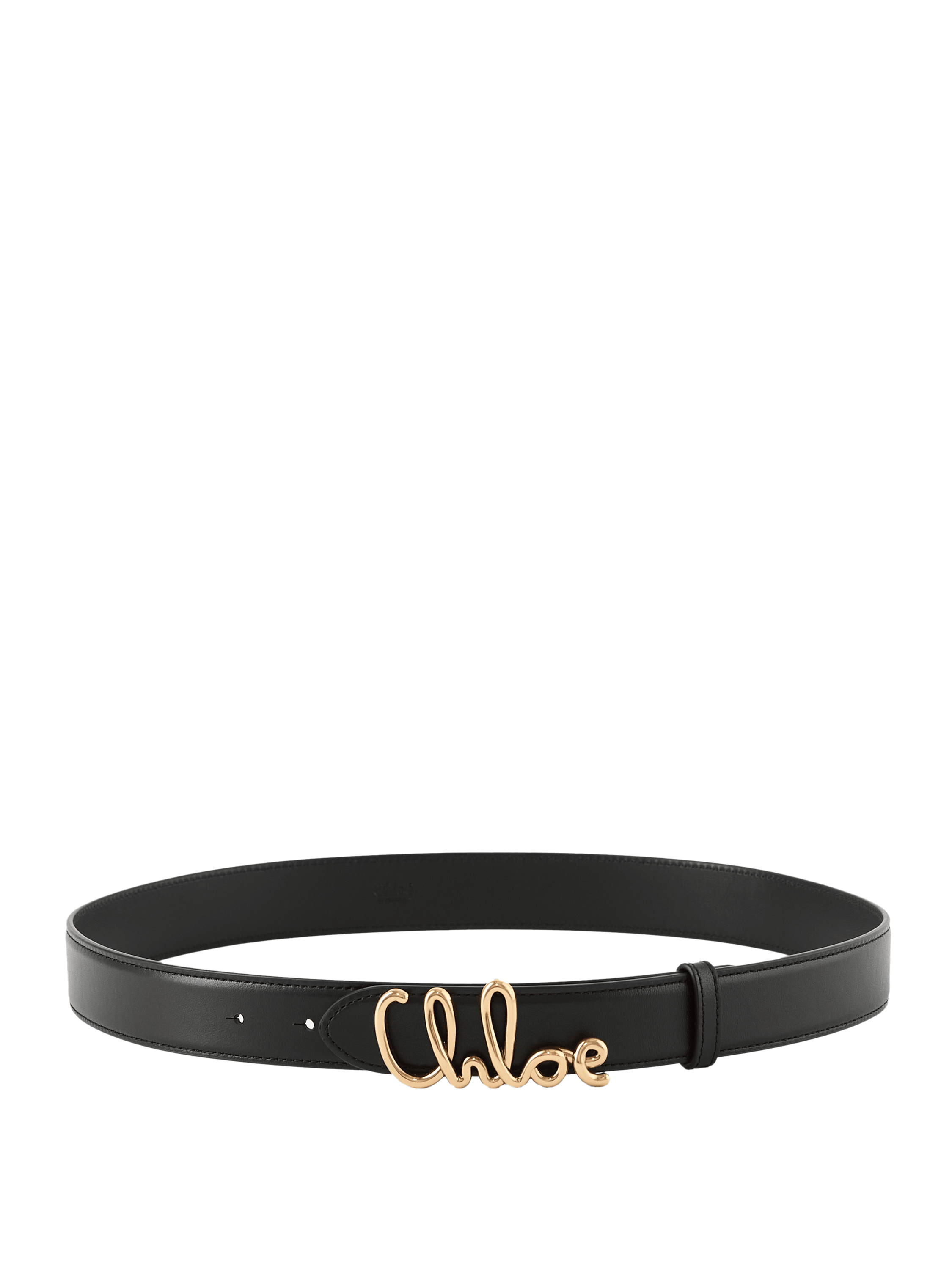 Dieser Ledergürtel in Schwarz von Chloé wurde aus glattem Kalbsleder gefertigt und besticht durch die goldfarbene Chloé-Logo-Schnalle in handschriftlicher Optik. Die markante Schnalle setzt einen verspielten Akzent und sorgt für einen echten Hingucker.