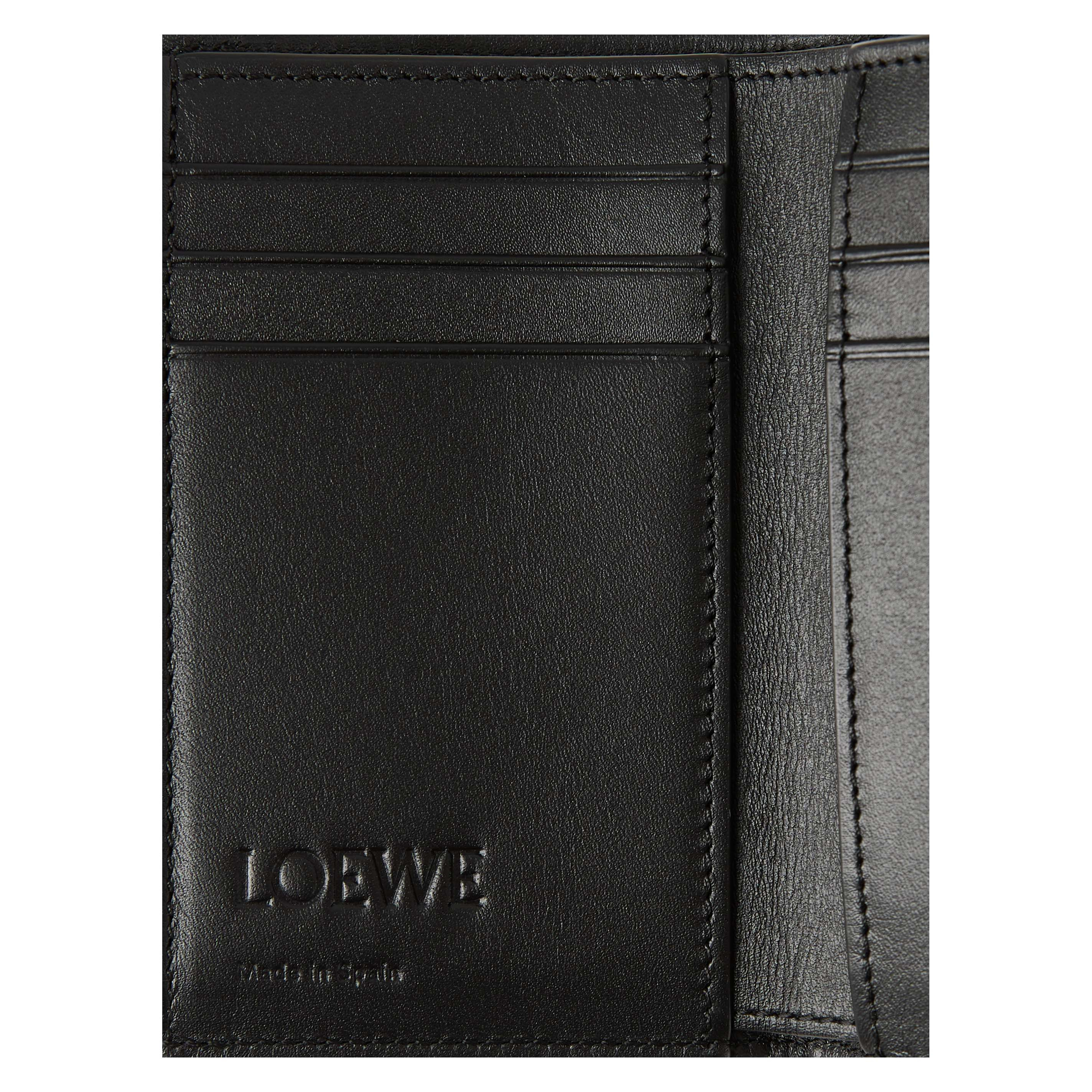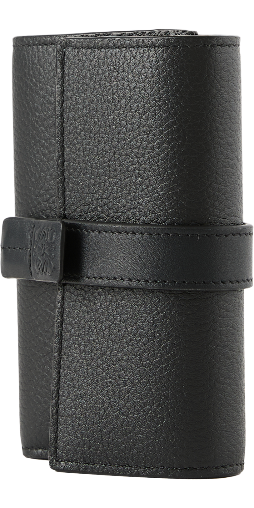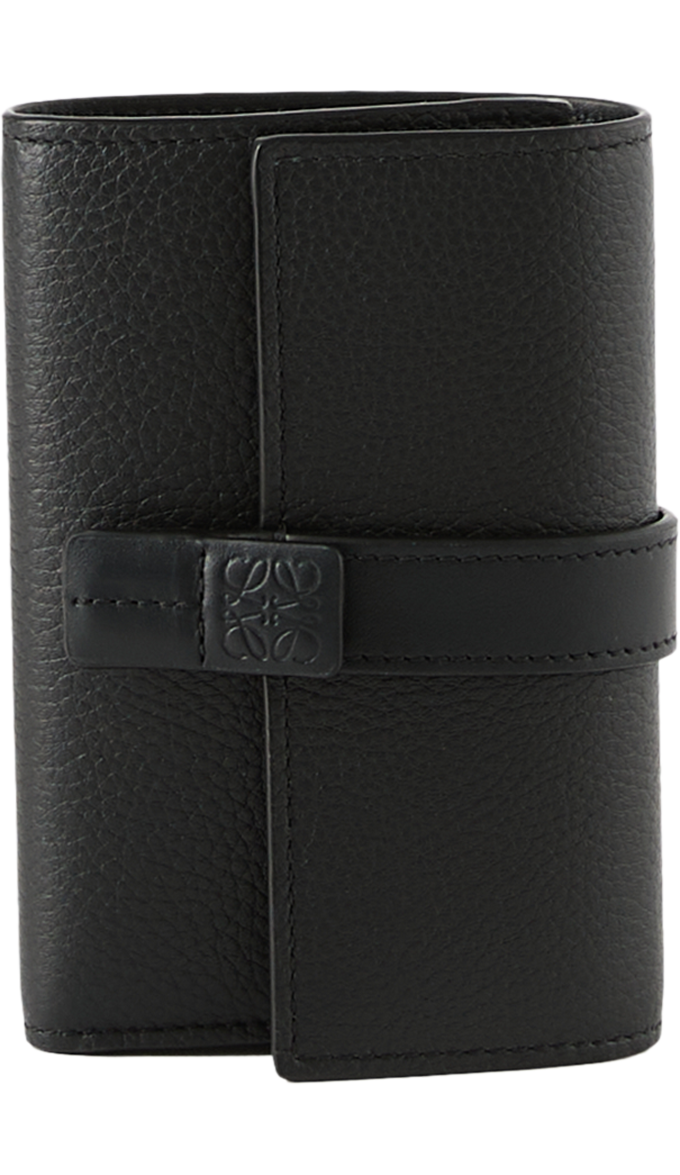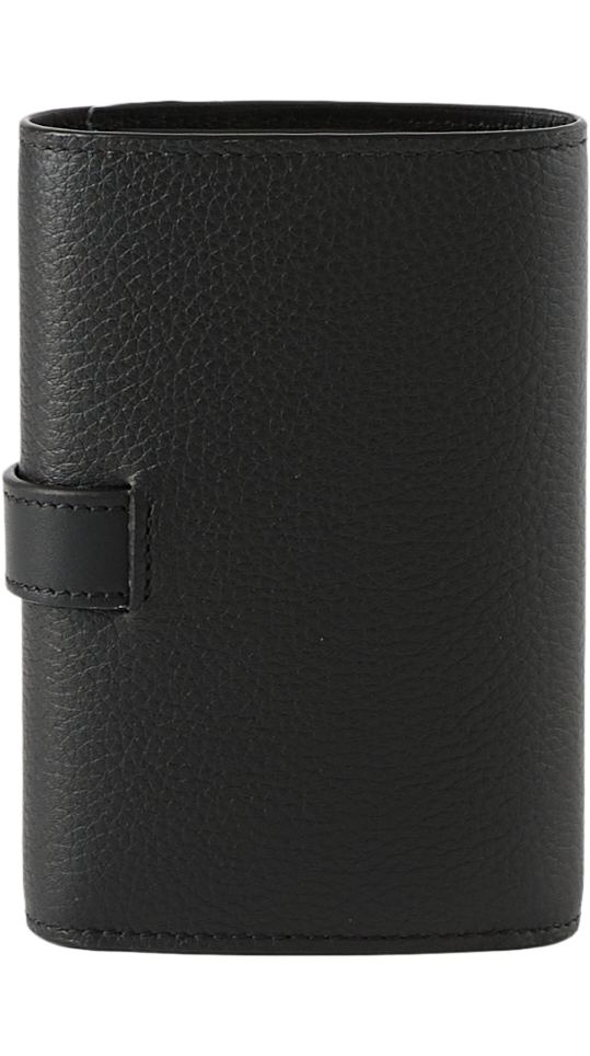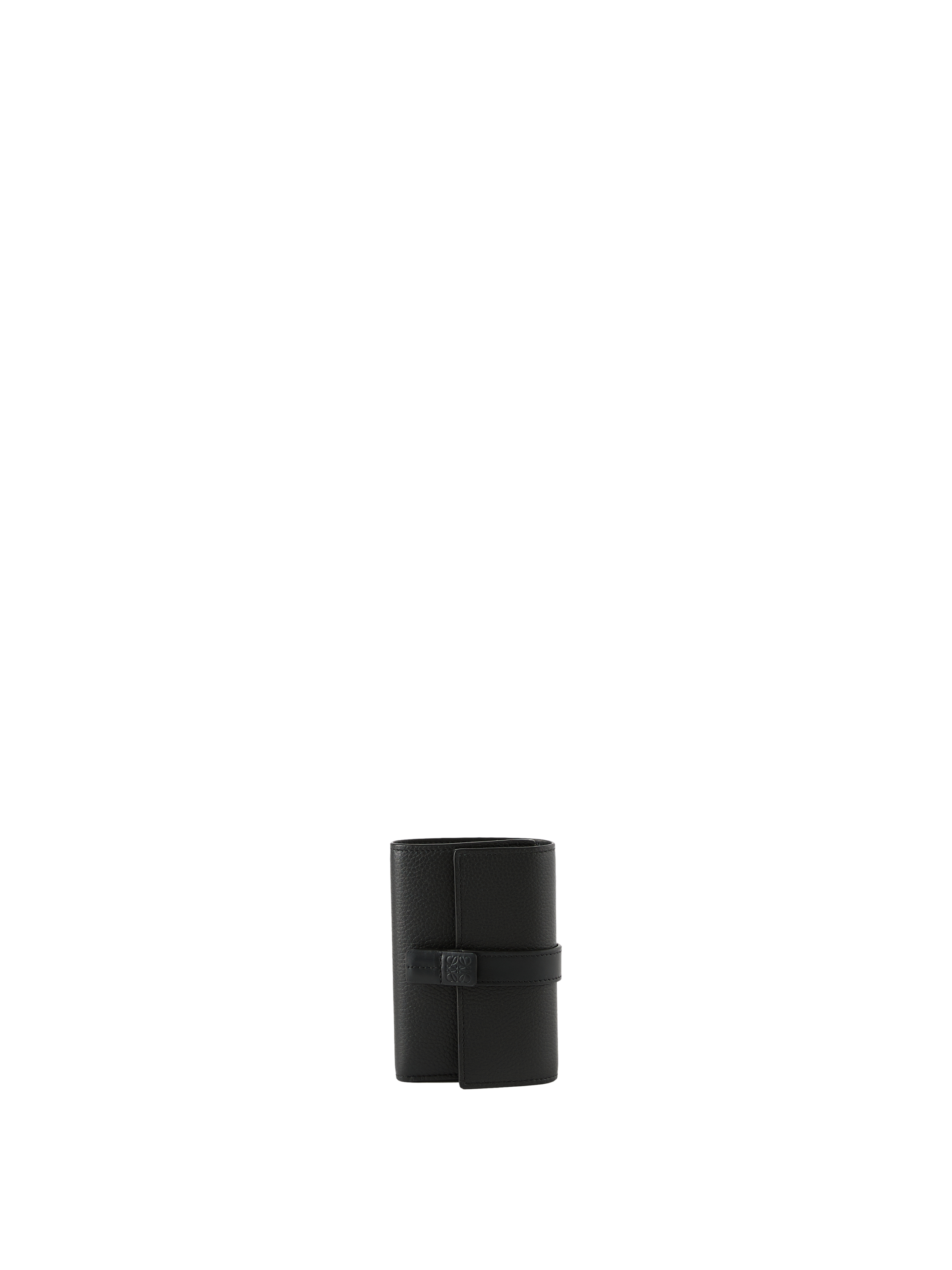 Die Geldbörse 'Small Vertical' in Schwarz von LOEWE wurde aus weichem, genarbtem Kalbsleder gefertigt und besticht durch das kleine, vertikal geprägte Anagram. Mit sechs Kartenfächern, zwei kleinen Fächern, einem großen Fach, einem Münzfach mit Reißverschluss, einem Druckknopfverschluss sowie einem Futter aus Kalbsleder erweist sich das Modell als funktionaler und stilvoller Begleiter im Alltag.