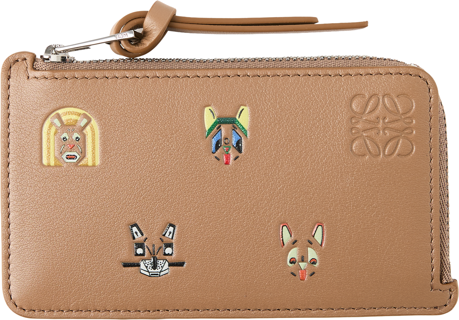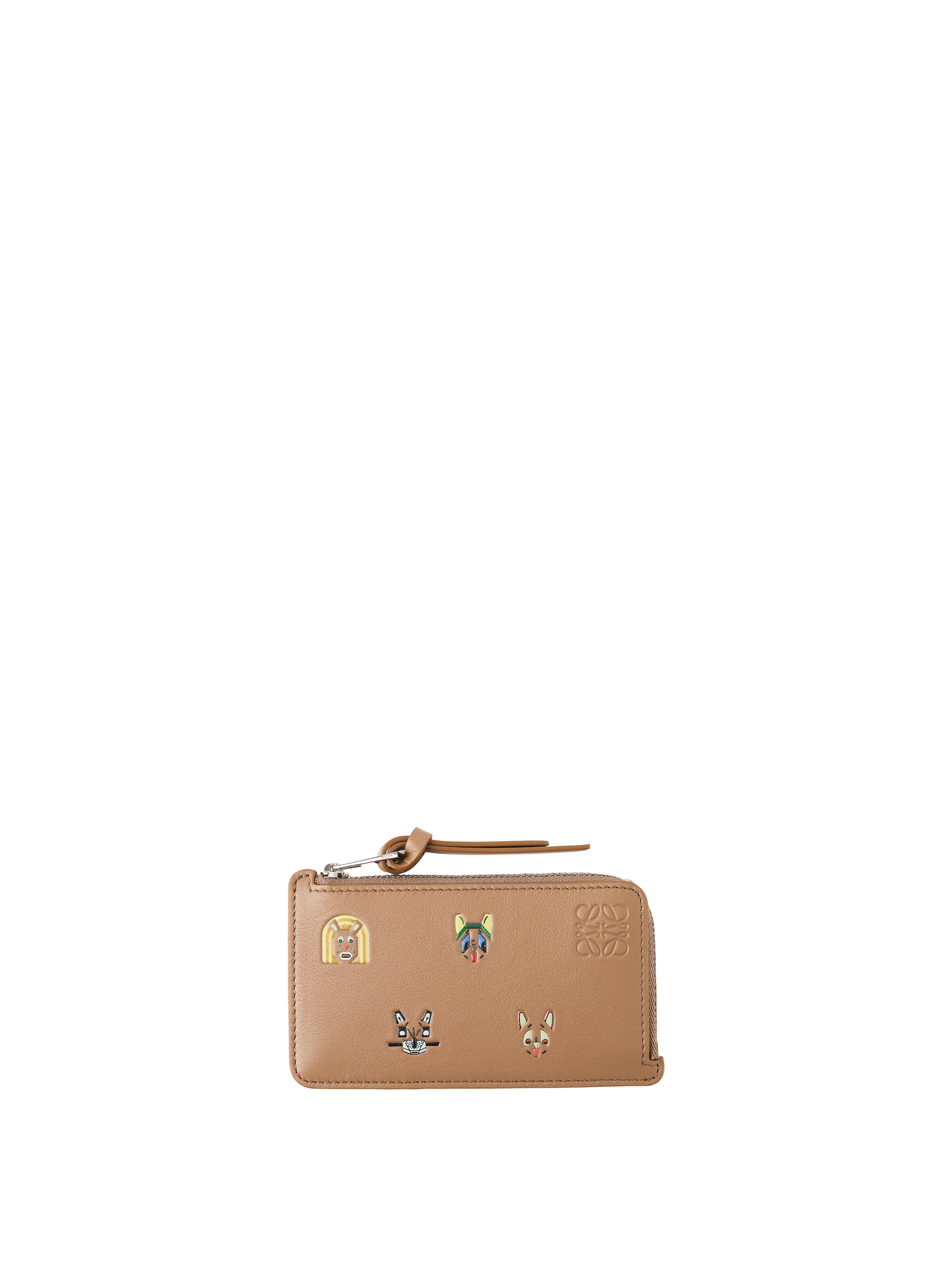 Das Kartenetui 'Coin Cats' in Mocha von LOEWE wurde aus klassischem Kalbsleder gefertigt und besticht durch die Katzenmotive im 3D-Effekt. Dieses Kartenetui ist von Louis Wains Porzellanvasen-Serie „Futurist Cats“ inspiriert. Die vier Kartenfächer, ein Münzfach mit Reißverschluss und Zugband sowie das Futter aus Kalbsleder machen es zu einem praktischen Begleiter. Abgerundet wird das Design durch das geprägte Anagram.