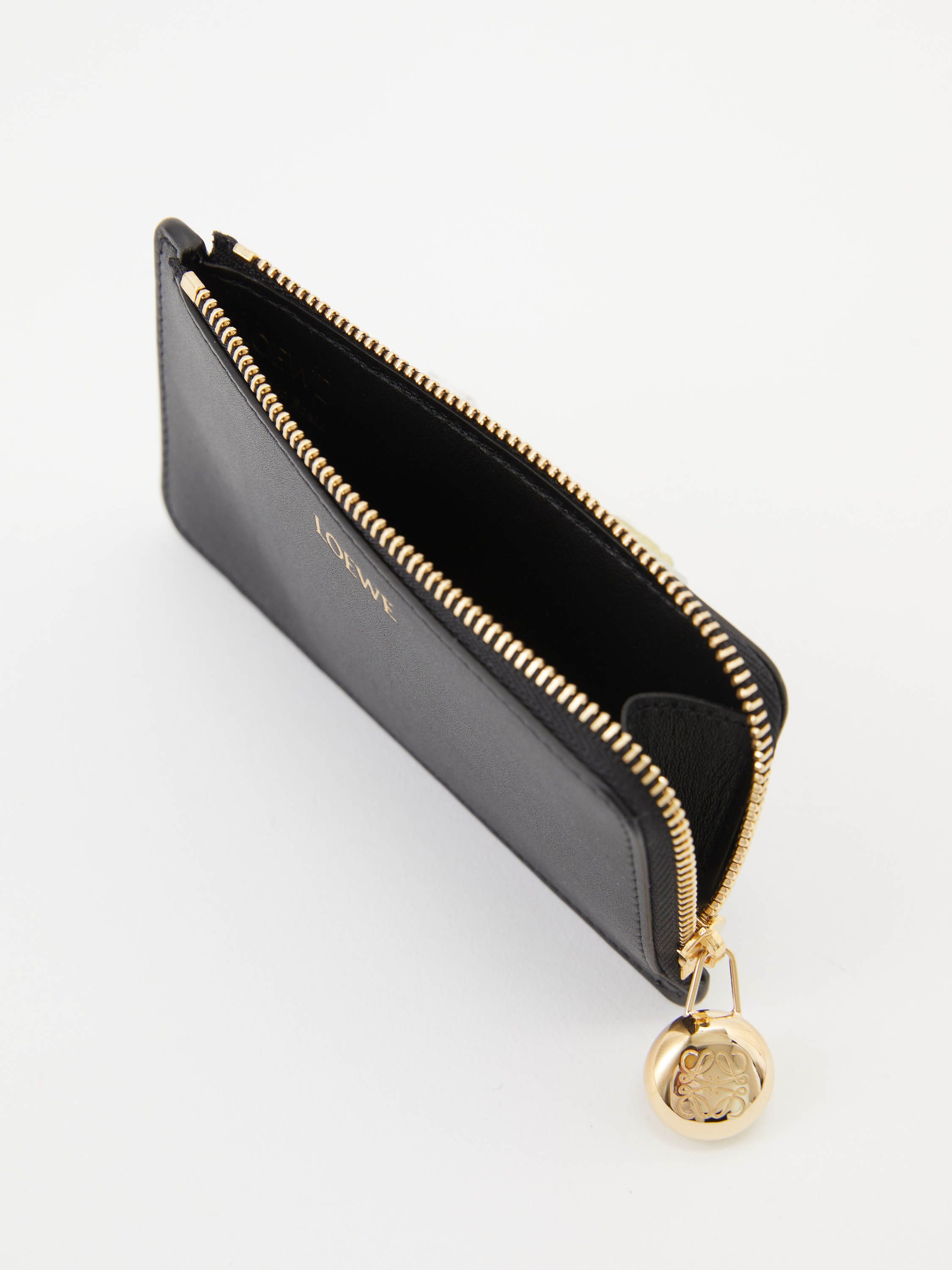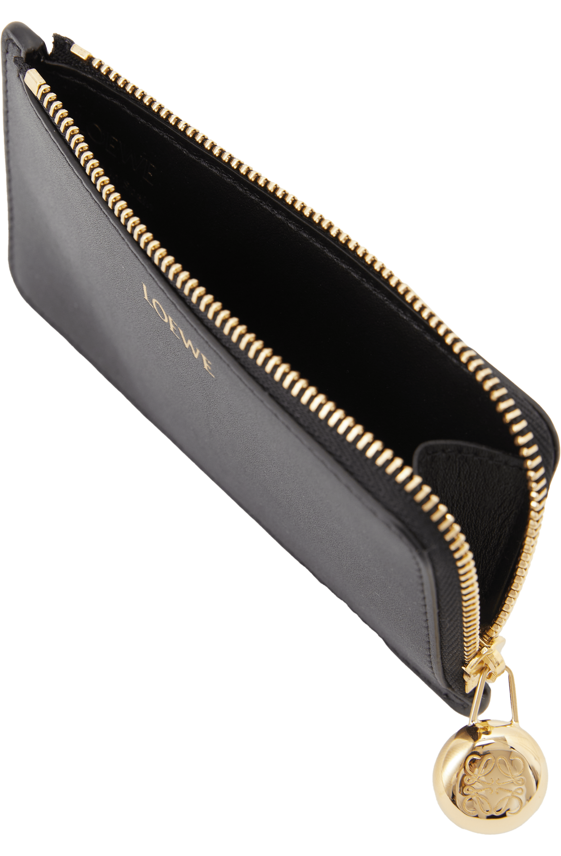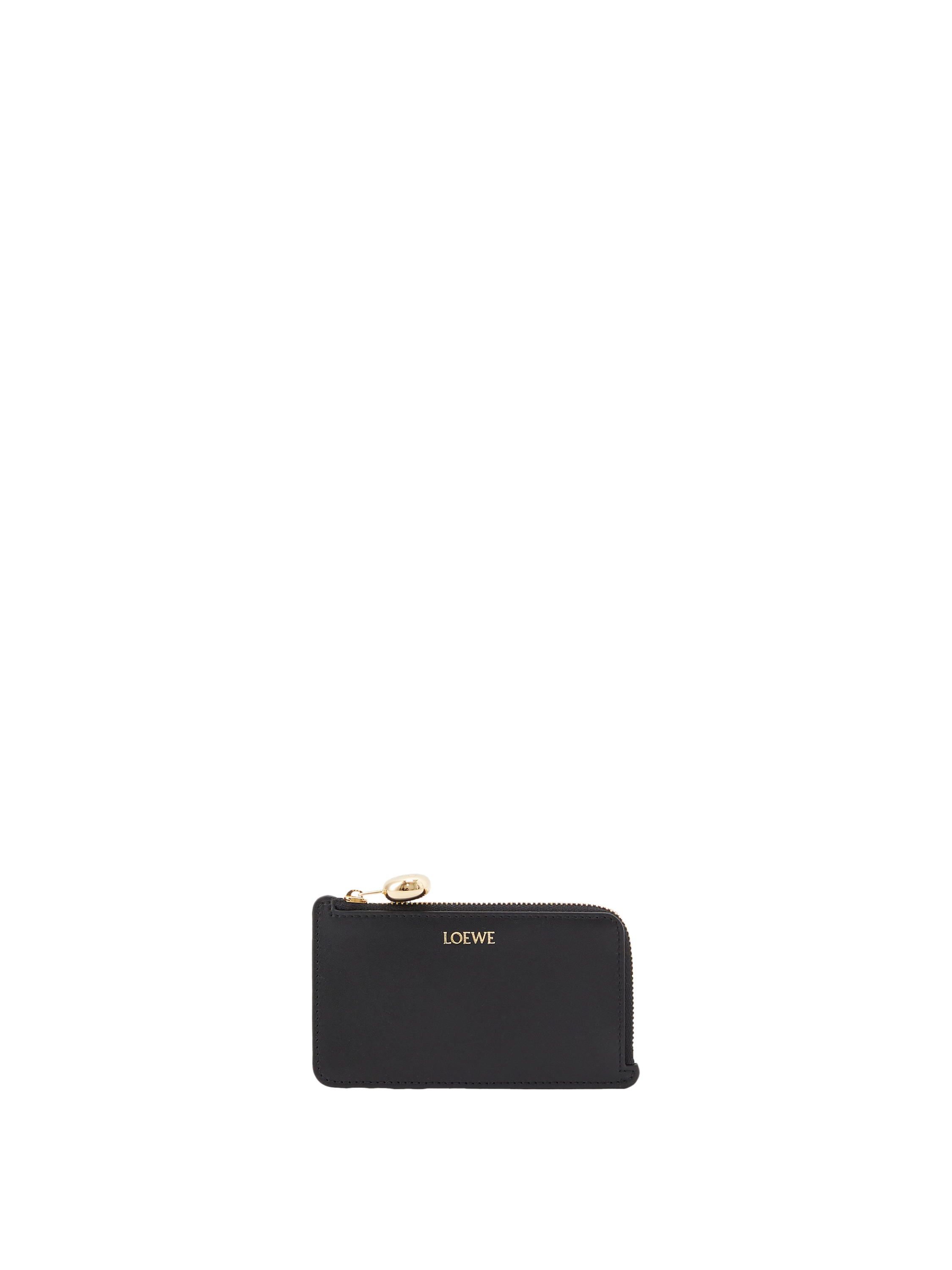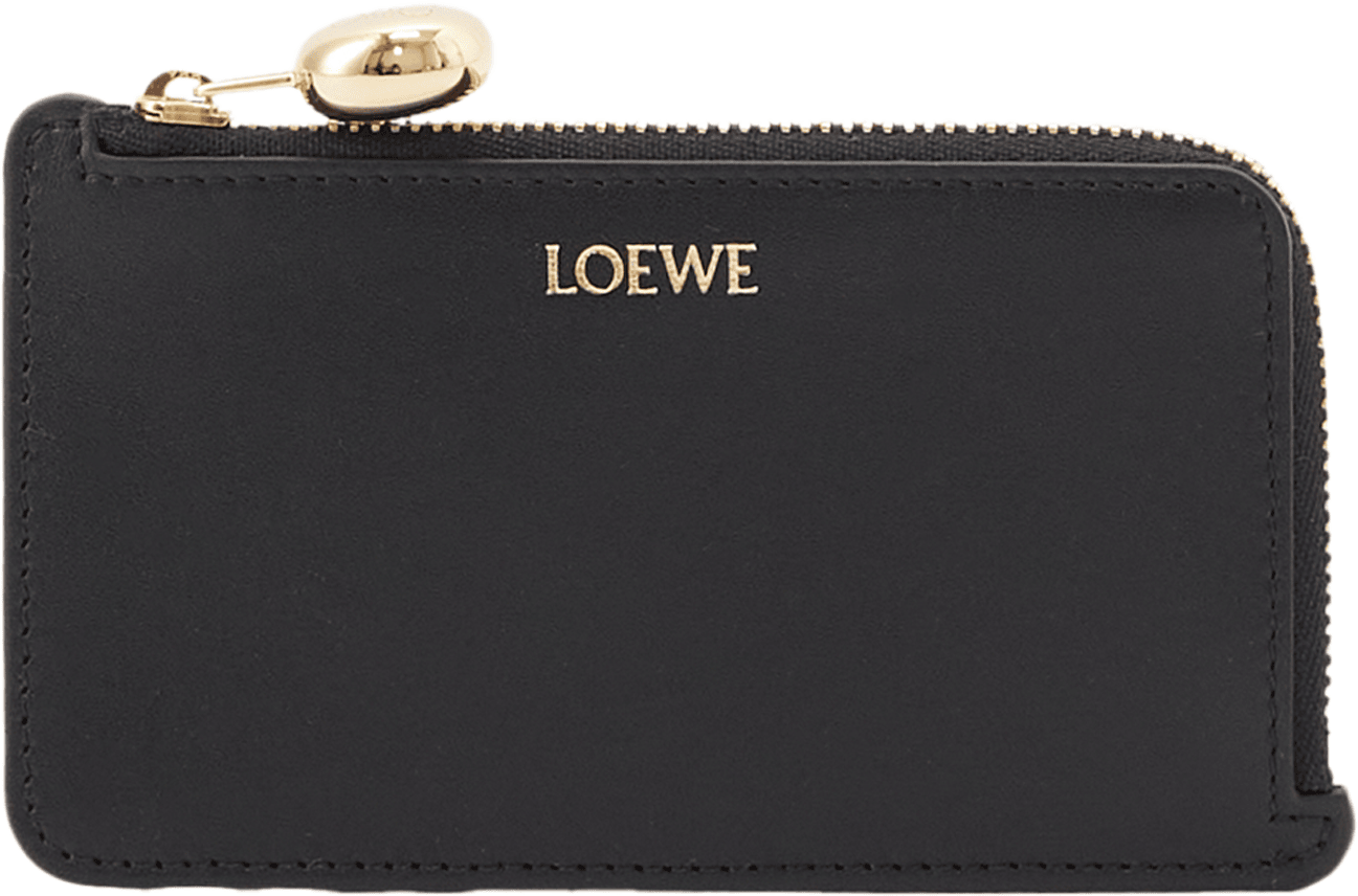 Das Kartenetui 'Pebble Coin' in Schwarz von LOEWE wurde aus hochwertigem Nappa-Kalbsleder gefertigt. Die vier Kartenfächer und das Reißverschlussfach machen das Modell zu einem praktischen Begleiter. Die goldfarbene Hardware und der charakteristische Pebble-Reißverschluss runden das Modell stilvoll ab.