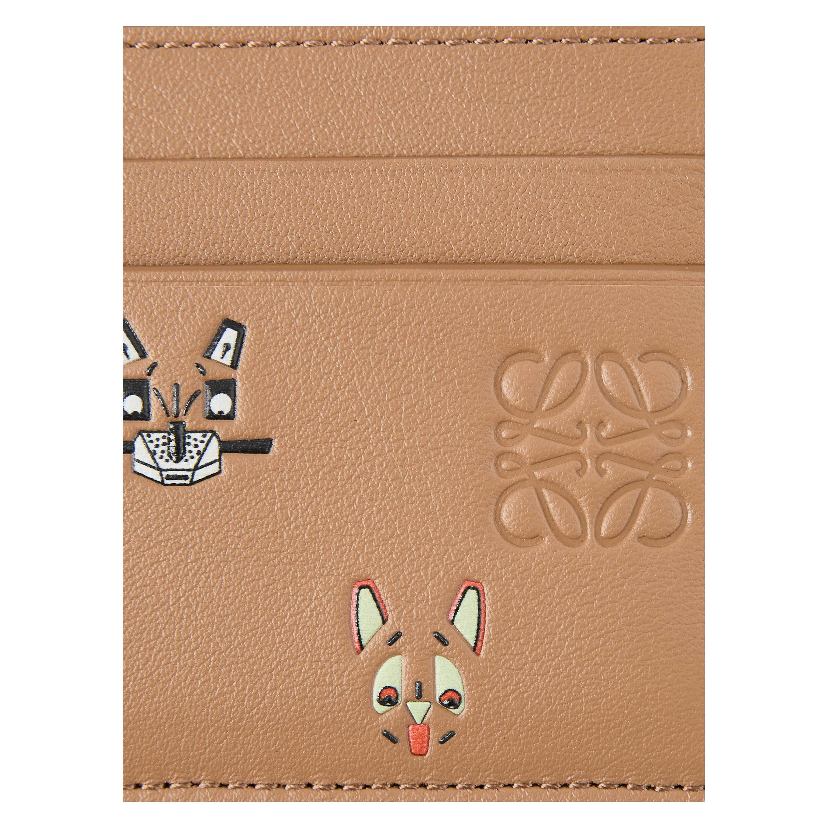 Das Kartenetui 'Plain Cats' in Mocha von LOEWE wurde aus klassischem Kalbsleder gefertigt und besticht durch die Katzenmotive im 3D-Effekt. Dieses Kartenetui ist von Louis Wains Porzellanvasen-Serie „Futurist Cats“ inspiriert. Die vier Kartenfächer, ein zentrales Fach sowie das Futter aus Kalbsleder machen das Modell zu einem praktischen Begleiter.