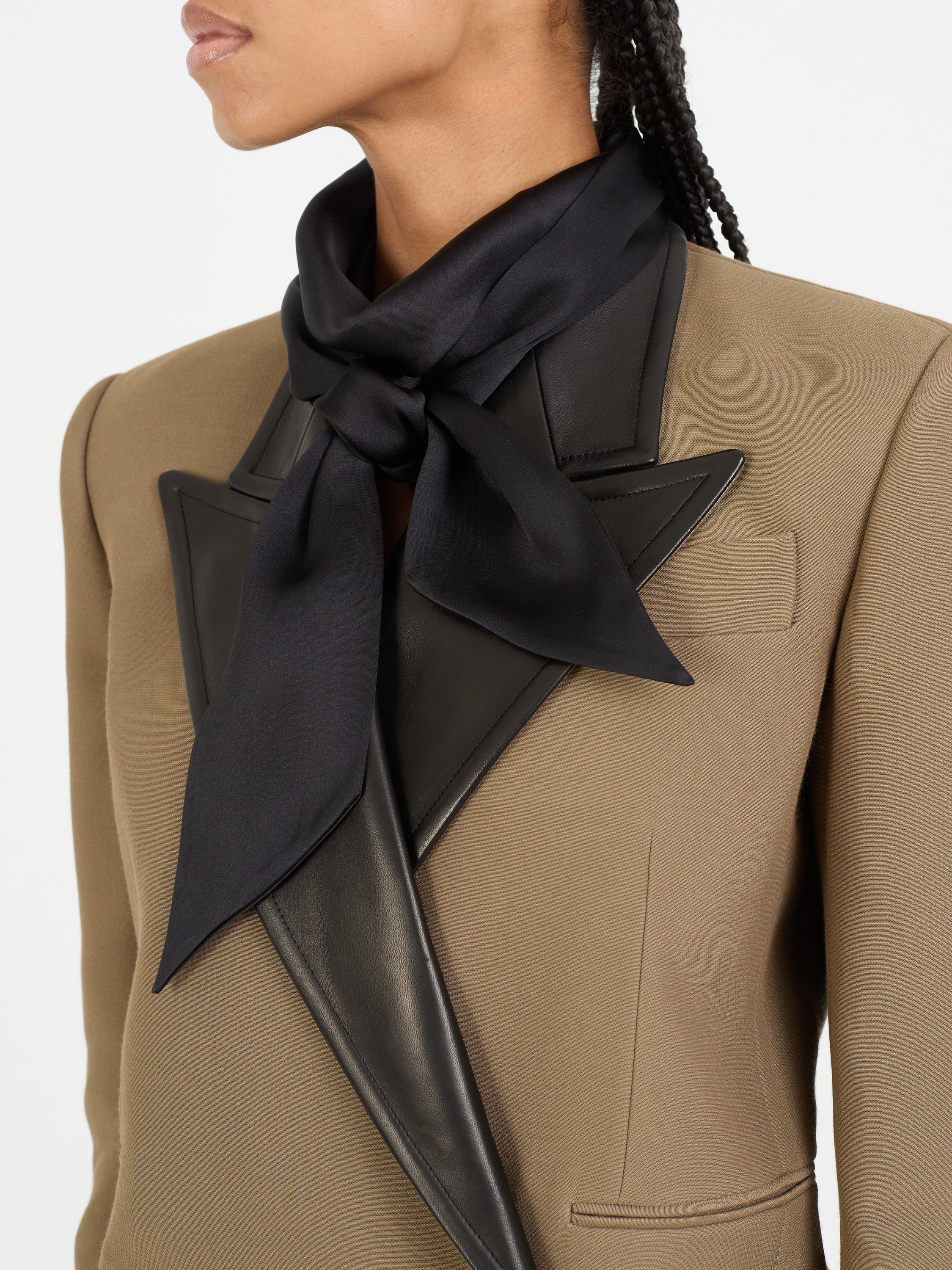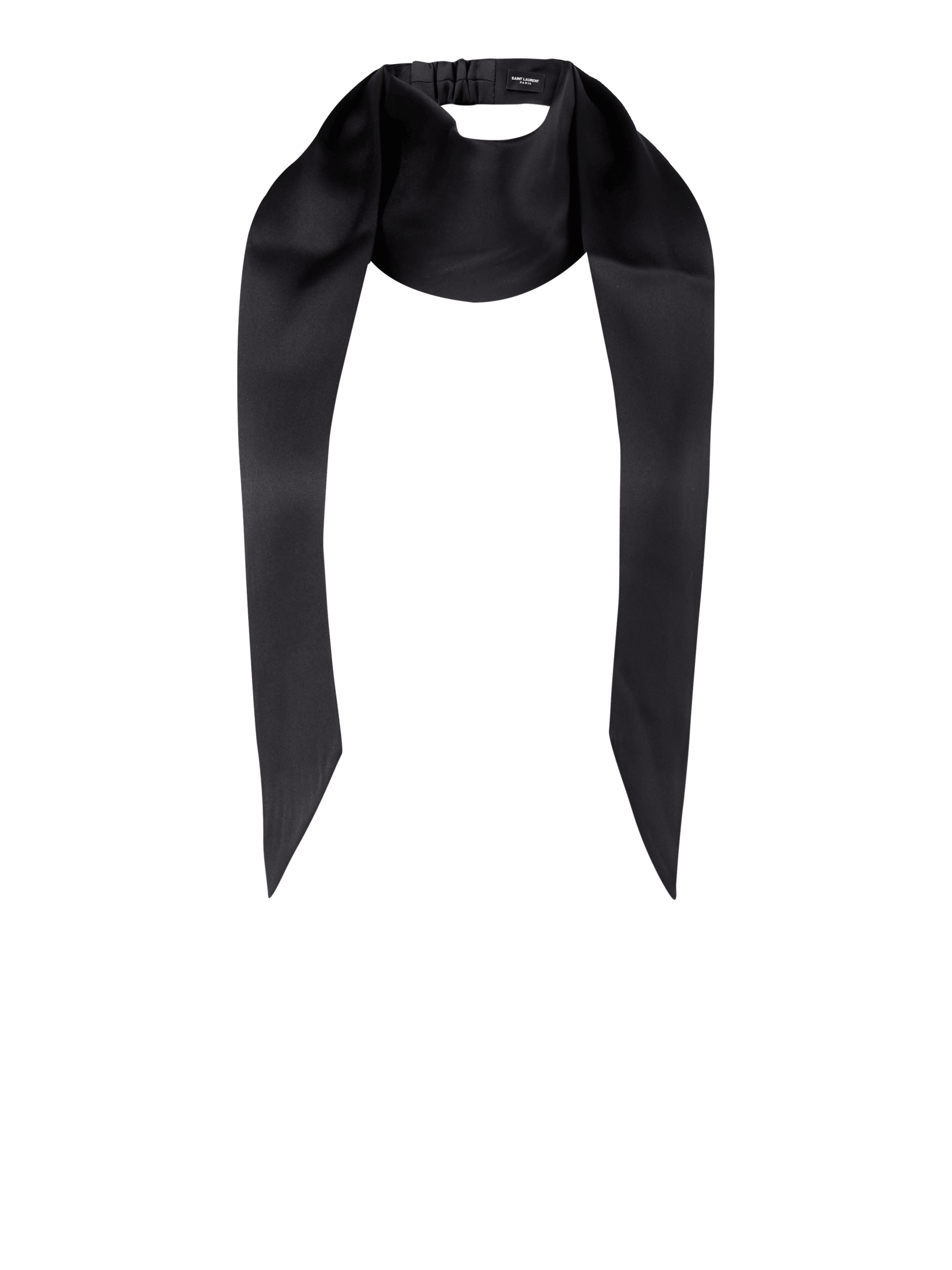 Dieses Tuch in Schwarz von Saint Laurent wurde aus reiner Seide gefertigt und besticht durch die langen Lavallière-Enden. Die weiche Haptik und das glänzende Finish zeichnet dieses Design aus.