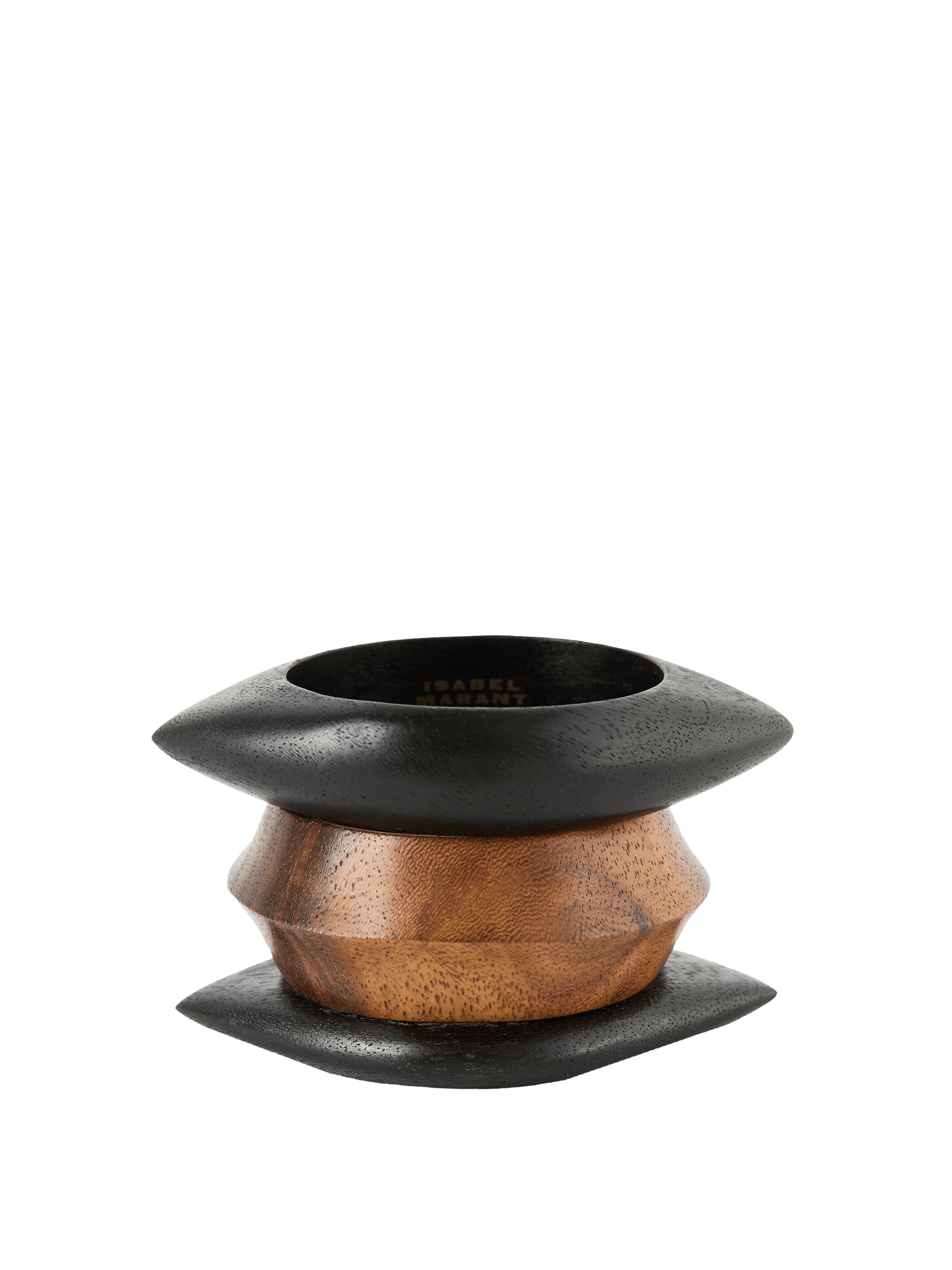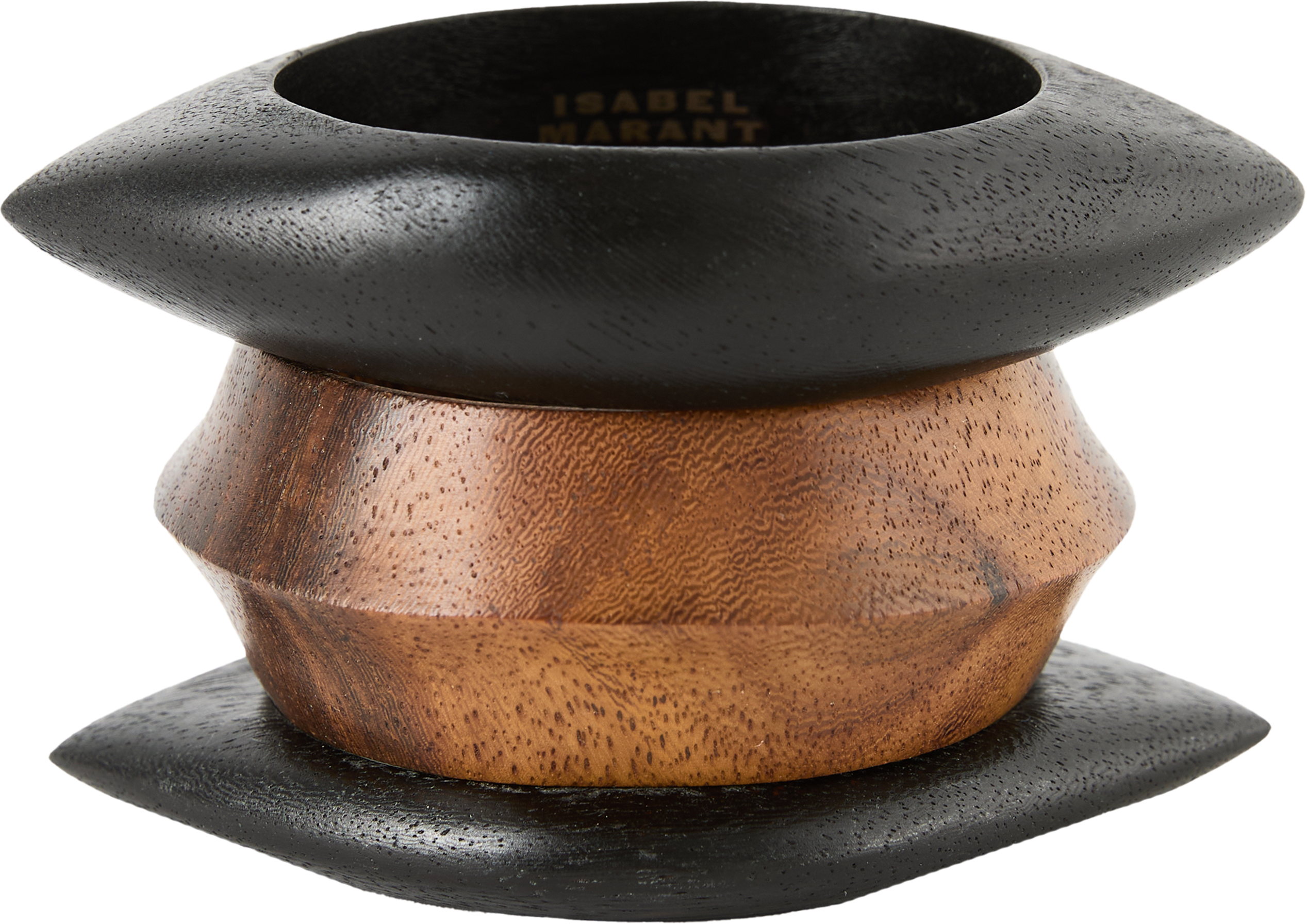 Diese Armreifen in Schwarz/Braun von Isabel Marant sind aus Holz gefertigt. Das Modell besticht durch die runde Form.