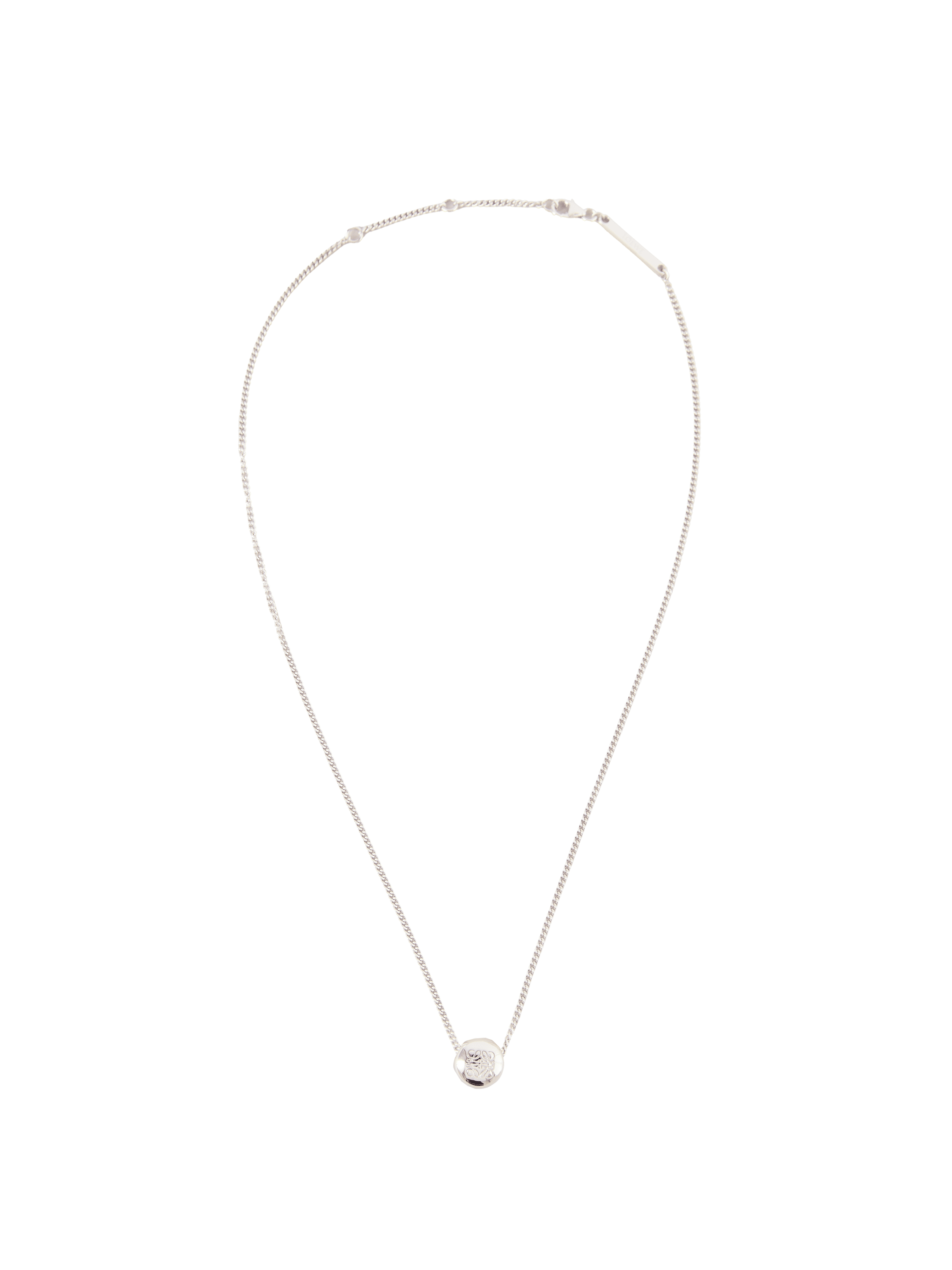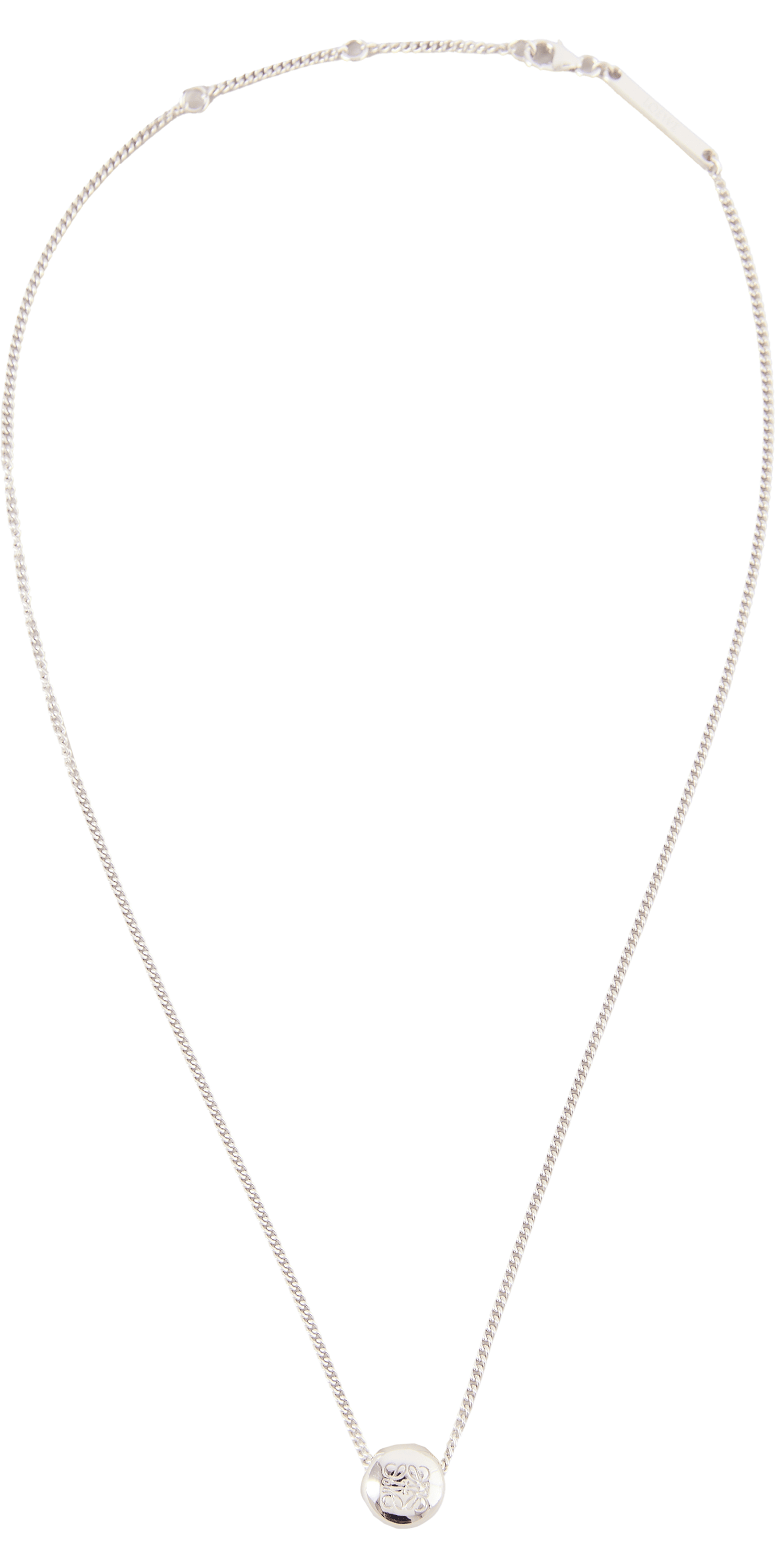 Die Halskette 'Anagram Pebble' in Silber von LOEWE wurde aus reinem Sterlingsilber gefertigt und besticht mit der ikonischen Anagramm-Kugel als Anhänger. Die filigrane Kette rundet das Modell elegant ab und lässt sich nach Belieben verstellen.