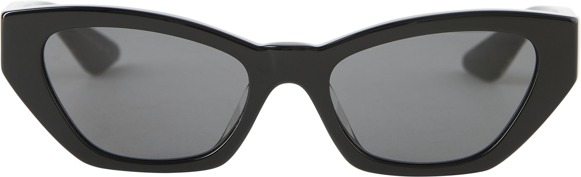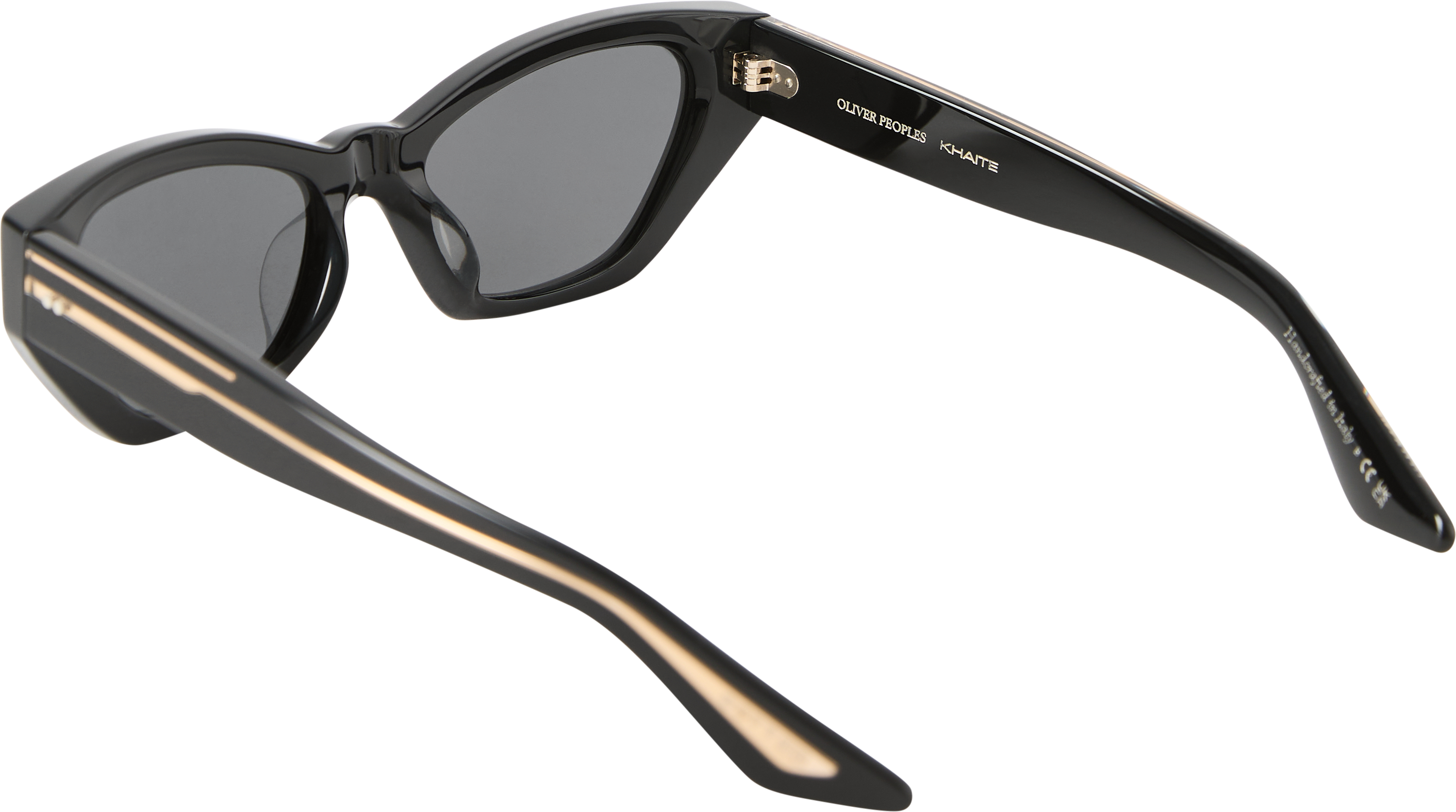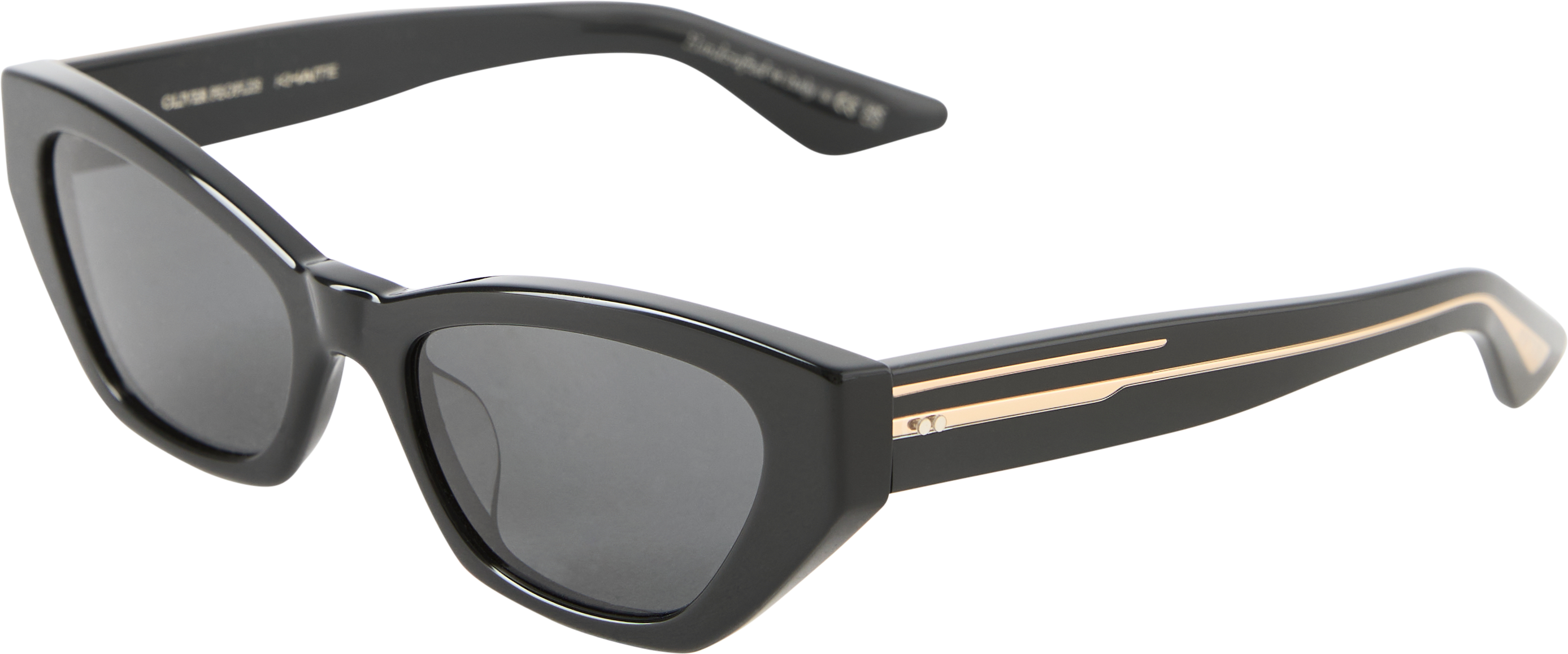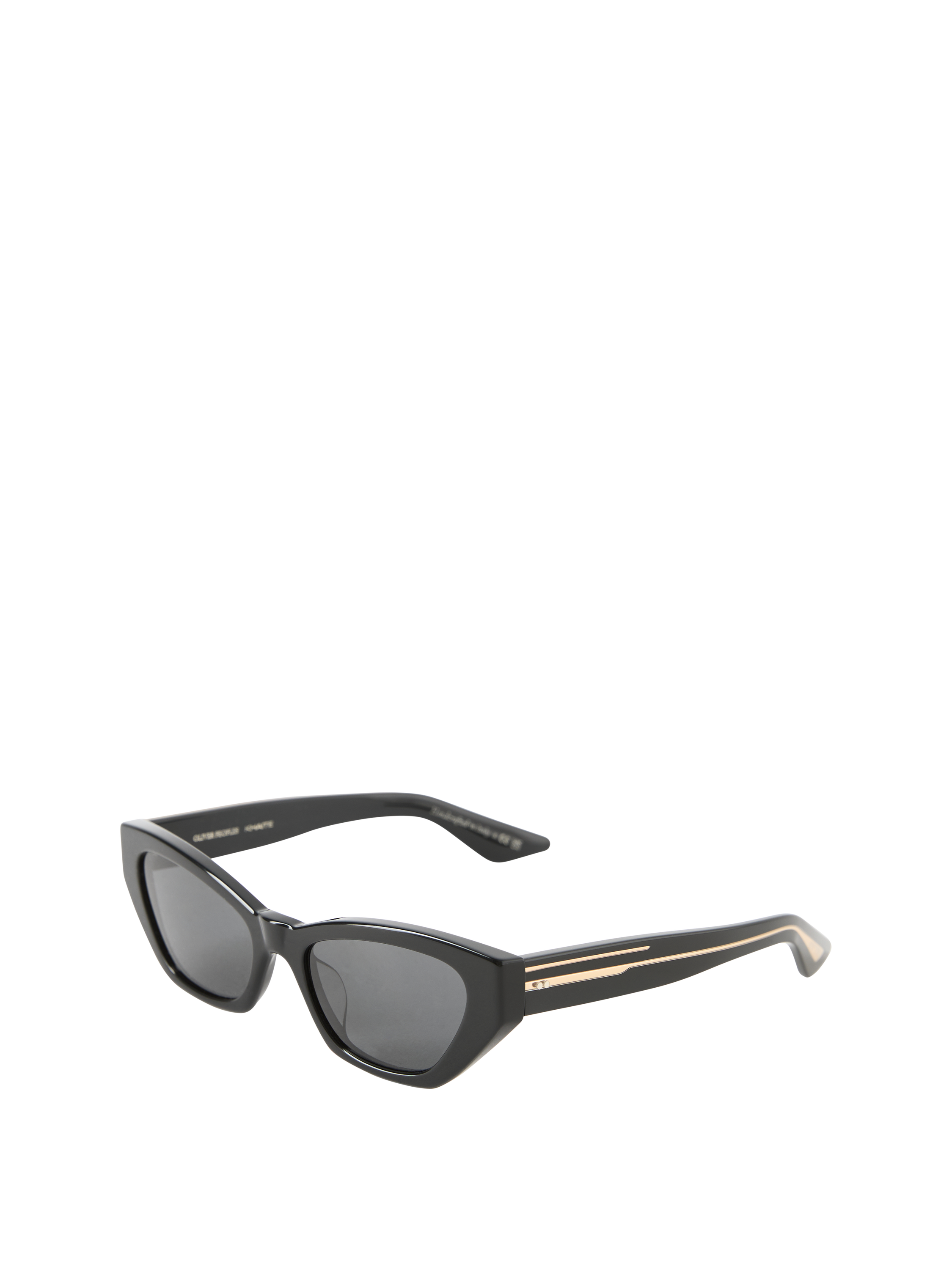 Die Sonnenbrille '1961c' in Schwarz von Oliver Peoples, in Zusammenarbeit mit Khaite, wurde aus hochwertigem Acetat gefertigt und besticht durch den verspielten Cat-Eye-Stil. Die geometrisch geschwungene Silhouette wird von goldfarbenen Details und dezenten Logo-Akzenten an den Bügeln elegant abgerundet.