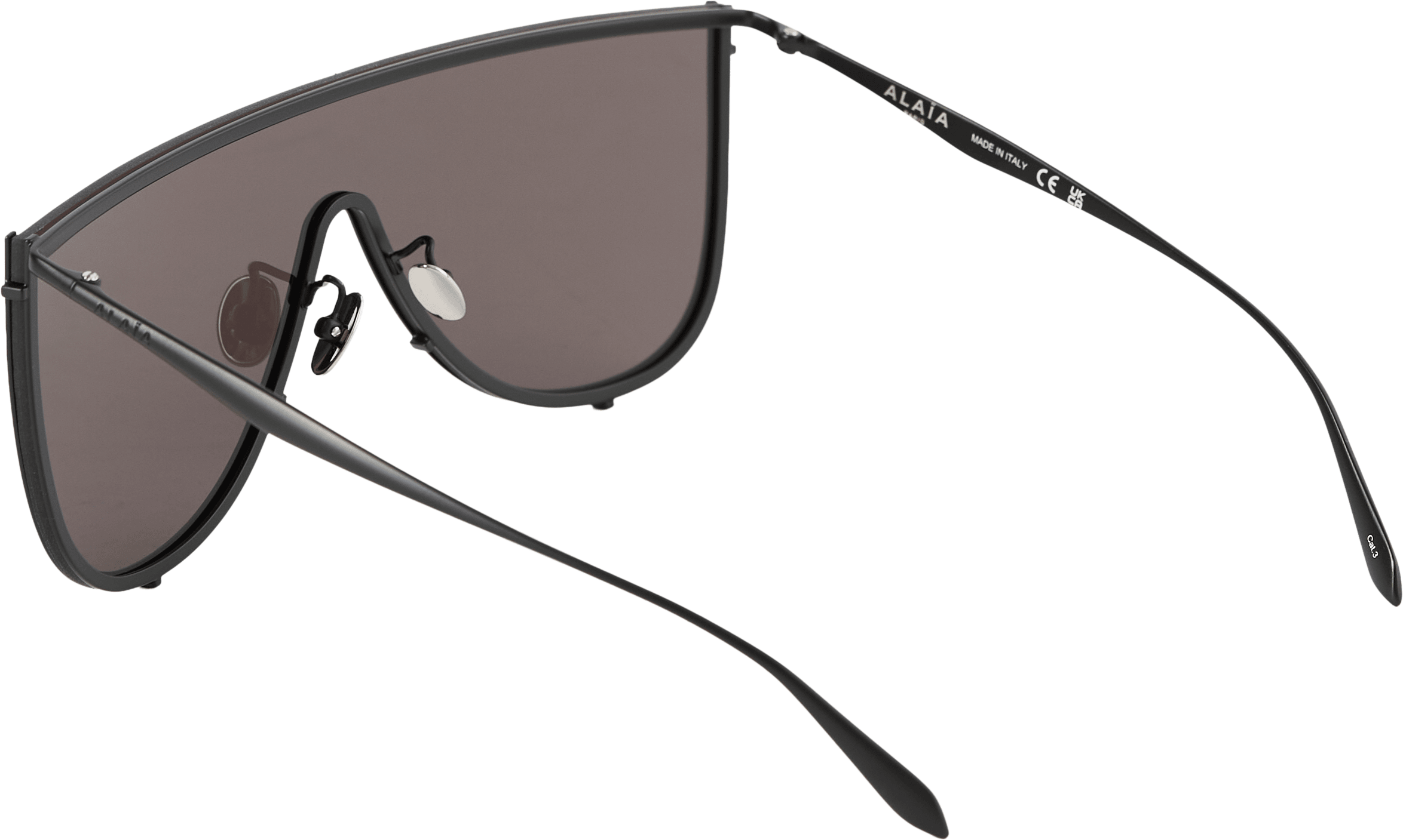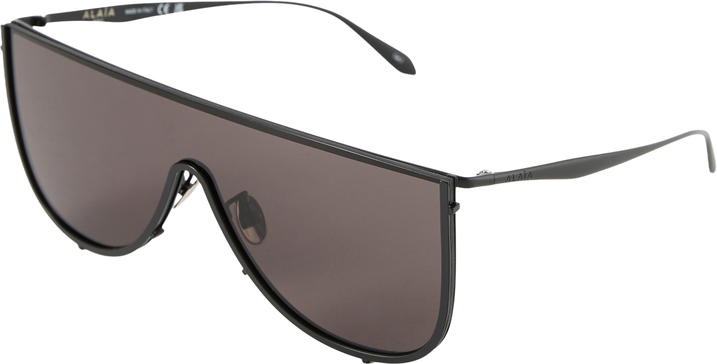 Diese Sonnenbrille in Schwarz von Alaïa wurde aus Metall gefertigt und besticht durch die rechteckige Form. Die Alaïa-Signatur auf den Bügeln sowie die schwarzen Glaslinsen mit UV-Schutz bieten einen markanten Kontrast zum dezenten Gestell und runden das Modell stillvoll ab.