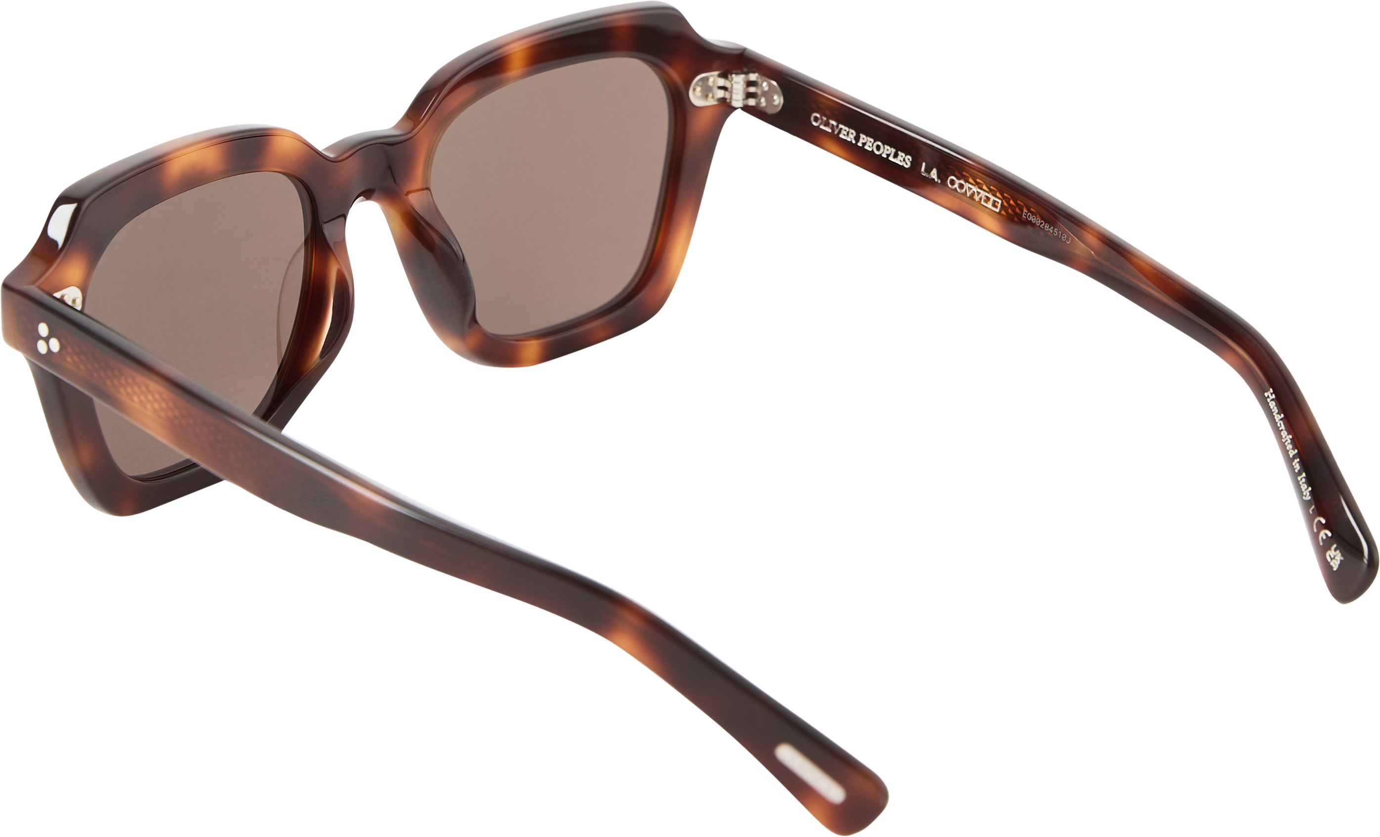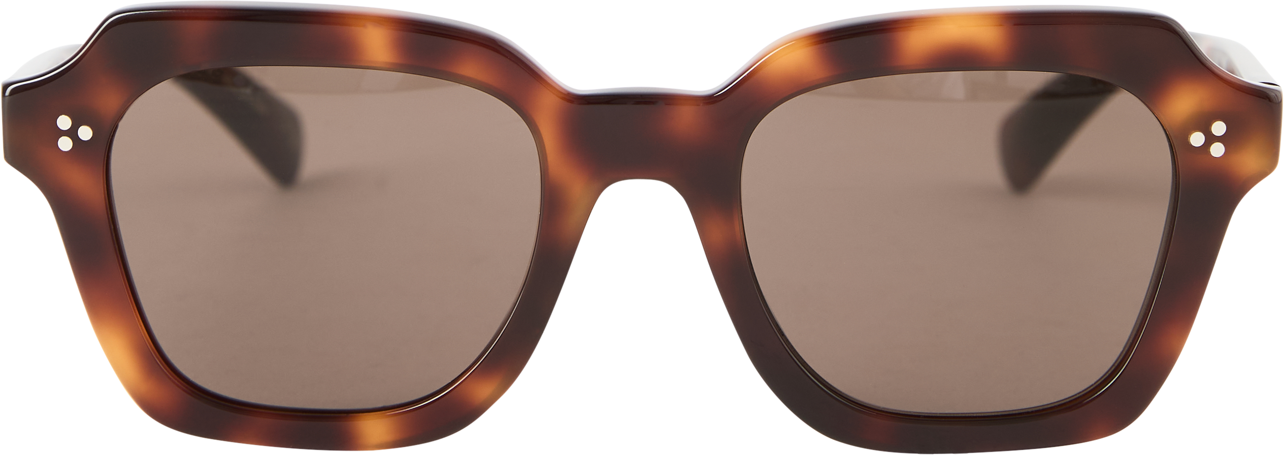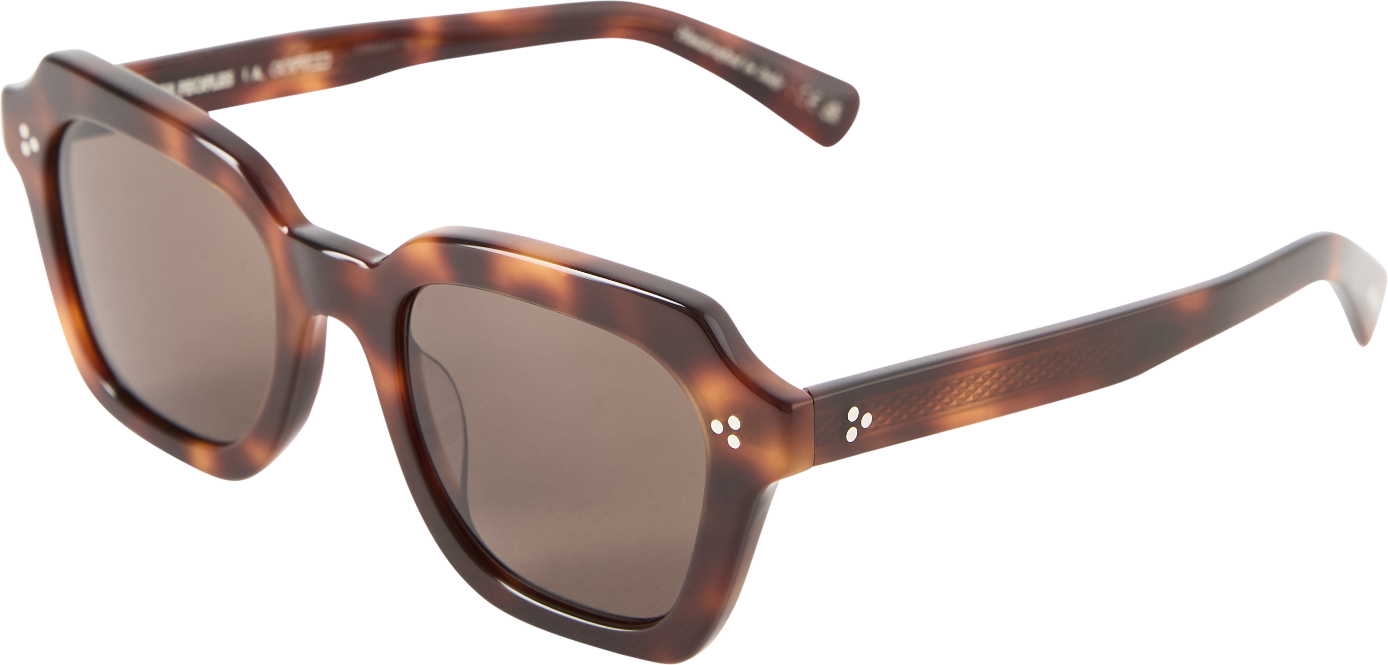 Die Sonnenbrille 'Kienna' in Dark Mahogany von Oliver Peoples wurde aus hochwertigem Acetat gefertigt und besticht durch die zeitlose Schildpatt-Optik. Das breite Gestell mit abgeschrägter Oberkante wird von silberfarbenen Details akzentuiert, während dunkelbraune Gläser das Modell harmonisch aufrundet.