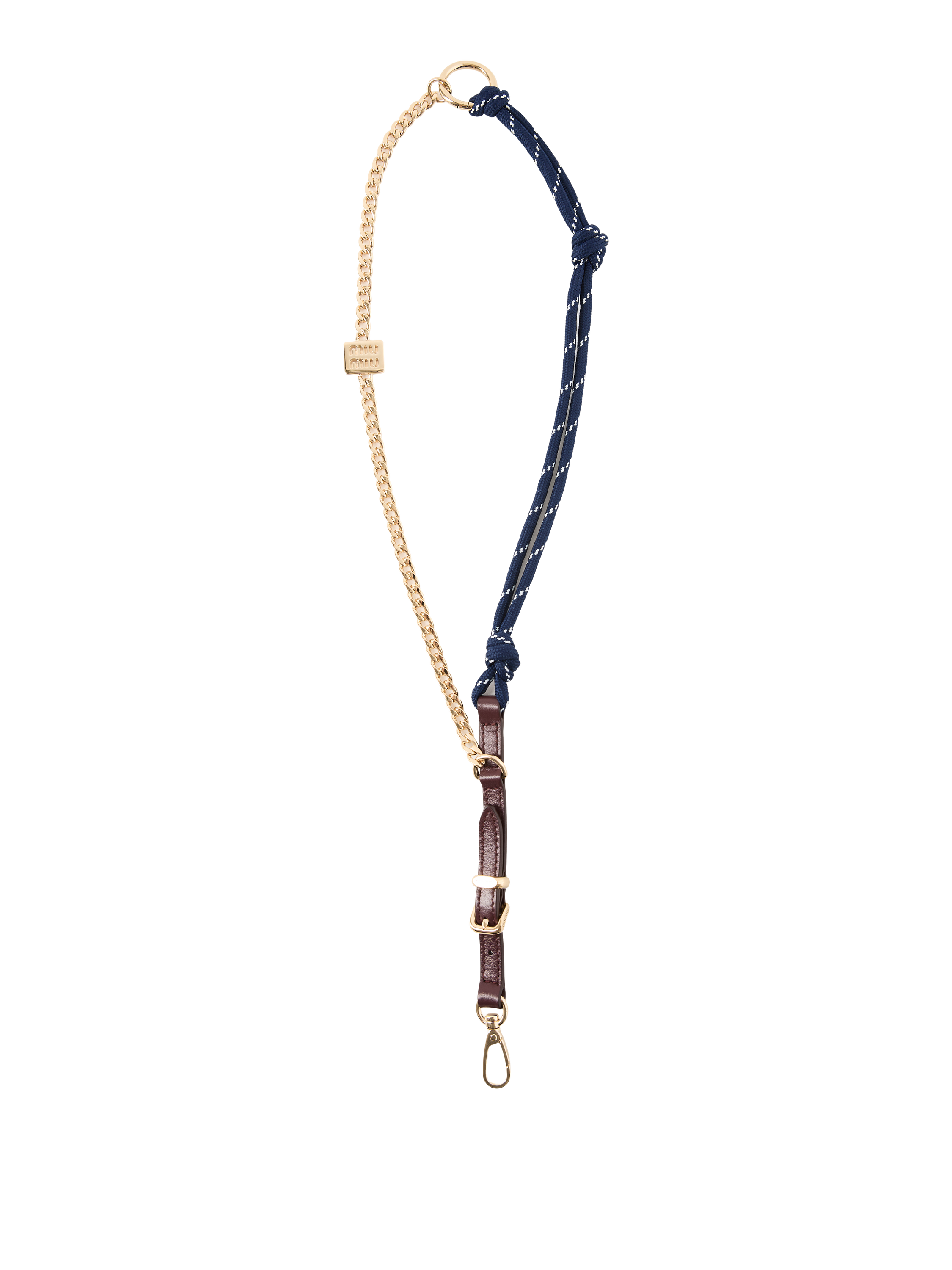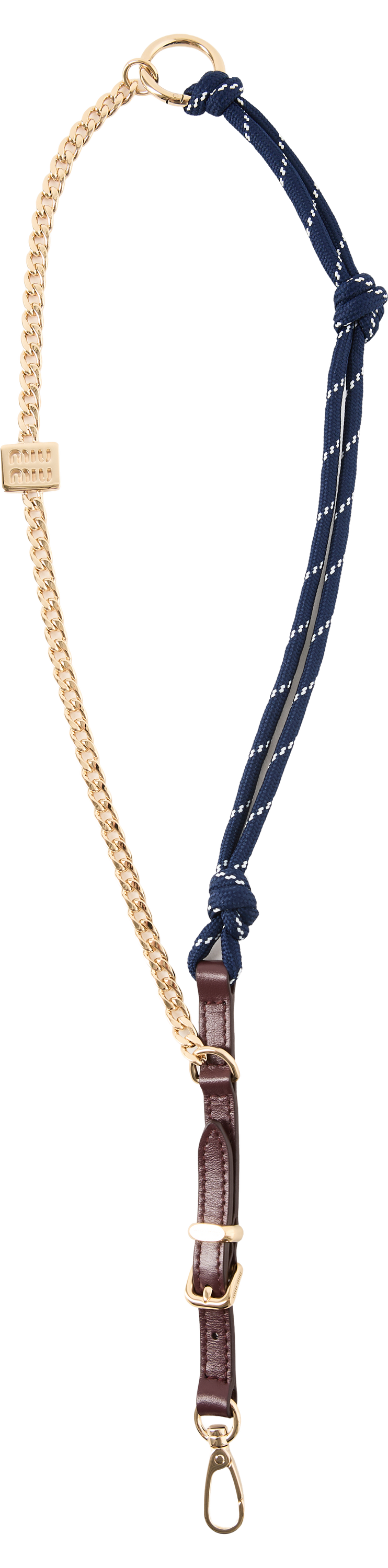 Dieser Schlüsselanhänger in Marineblau von miu miu wurde aus Kalbsleder und Metall gefertigt und besticht durch die zweifarbige Kordel. Das Logo-Detail aus Metall, der Karabinerhaken mit Ring sowie das perforierte Logo auf dem Detail runden das Modell stilvoll ab.