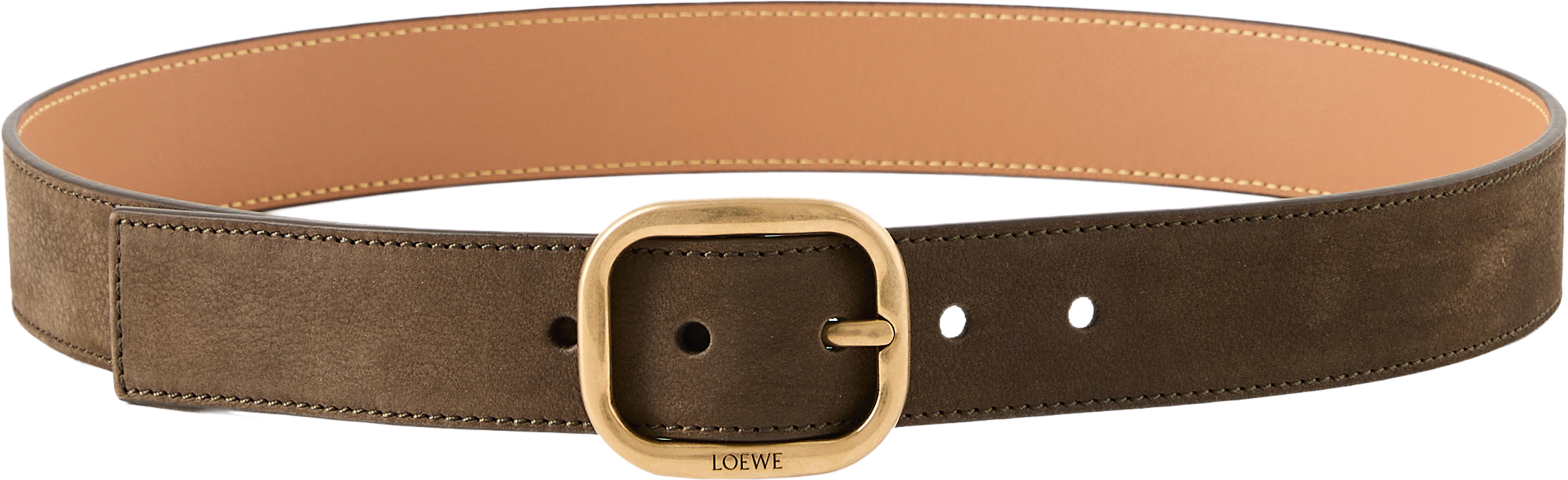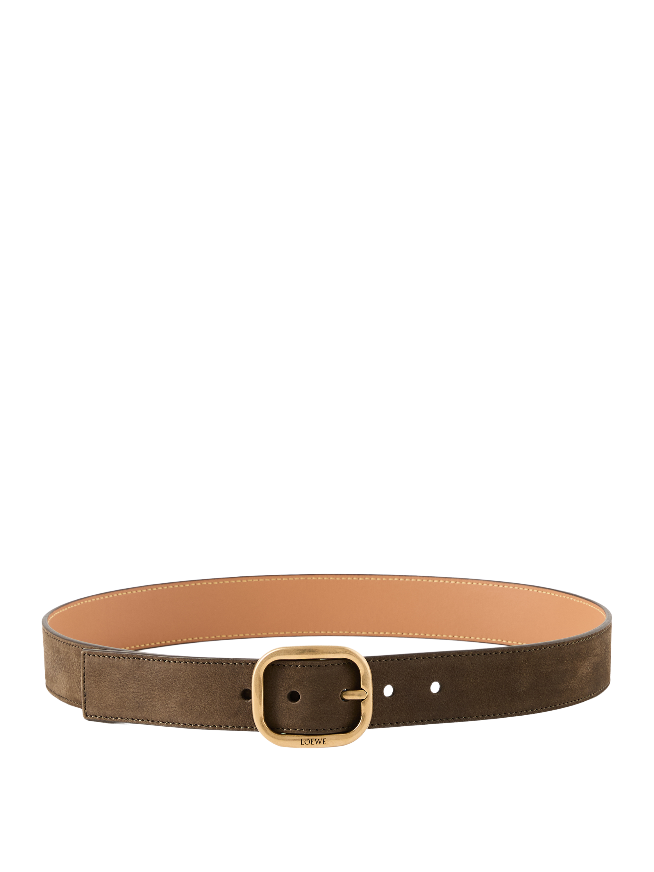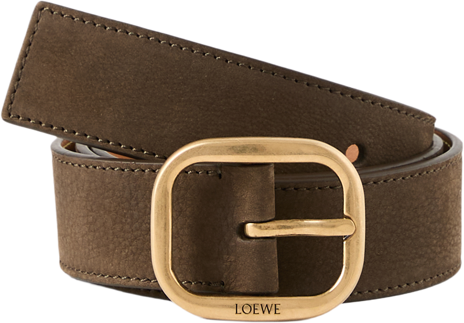 Dieser Gürtel in Dark Brownie/Vintage Gold von LOEWE wurde aus weichem Kalbsleder gefertigt und besticht durch die abgerundete Schnalle. Das weiche Material, die Fünf-Loch-Standardausführung sowie die LOEWE-Gravur machen das Modell zu einem wahren Hingucker.