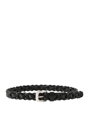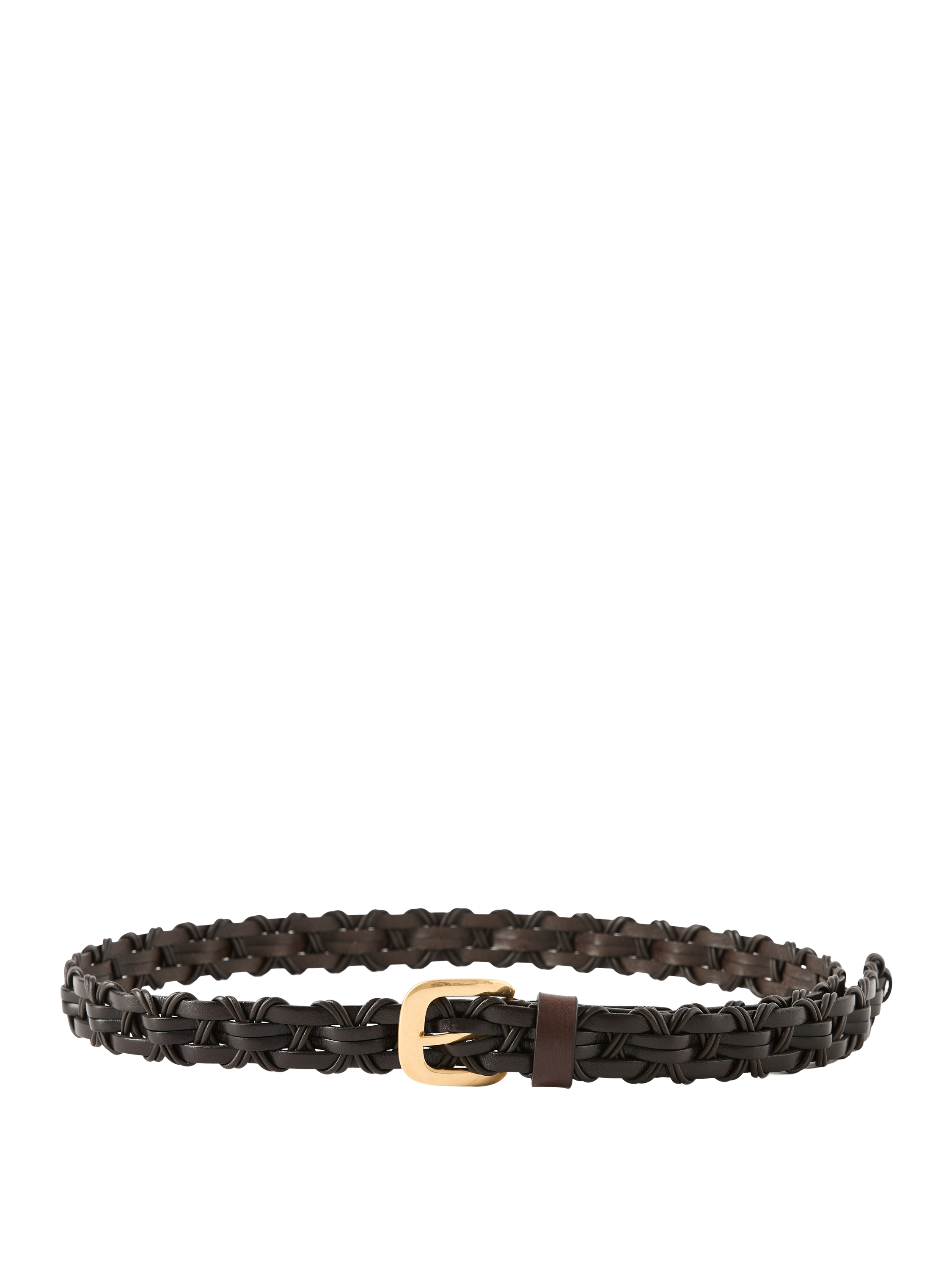 Der Gürtel 'Cord' in Dunkelbraun von The Row wurde aus glänzendem Kalbsleder gefertigt und besticht durch die raffinierte geflochtene Struktur. Das Leder wurde mit pflanzlichen Farbstoffen nach traditionellen Methoden gegerbt und entwickelt mit der Zeit sowie durch den Gebrauch eine charaktervolle Patina.