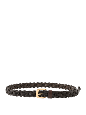 Der Gürtel 'Cord' in Schwarz von The Row wurde aus glänzendem Kalbsleder gefertigt und besticht durch die raffinierte geflochtene Struktur. Das Leder wurde mit pflanzlichen Farbstoffen nach traditionellen Methoden gegerbt und entwickelt mit der Zeit sowie durch den Gebrauch eine charaktervolle Patina.