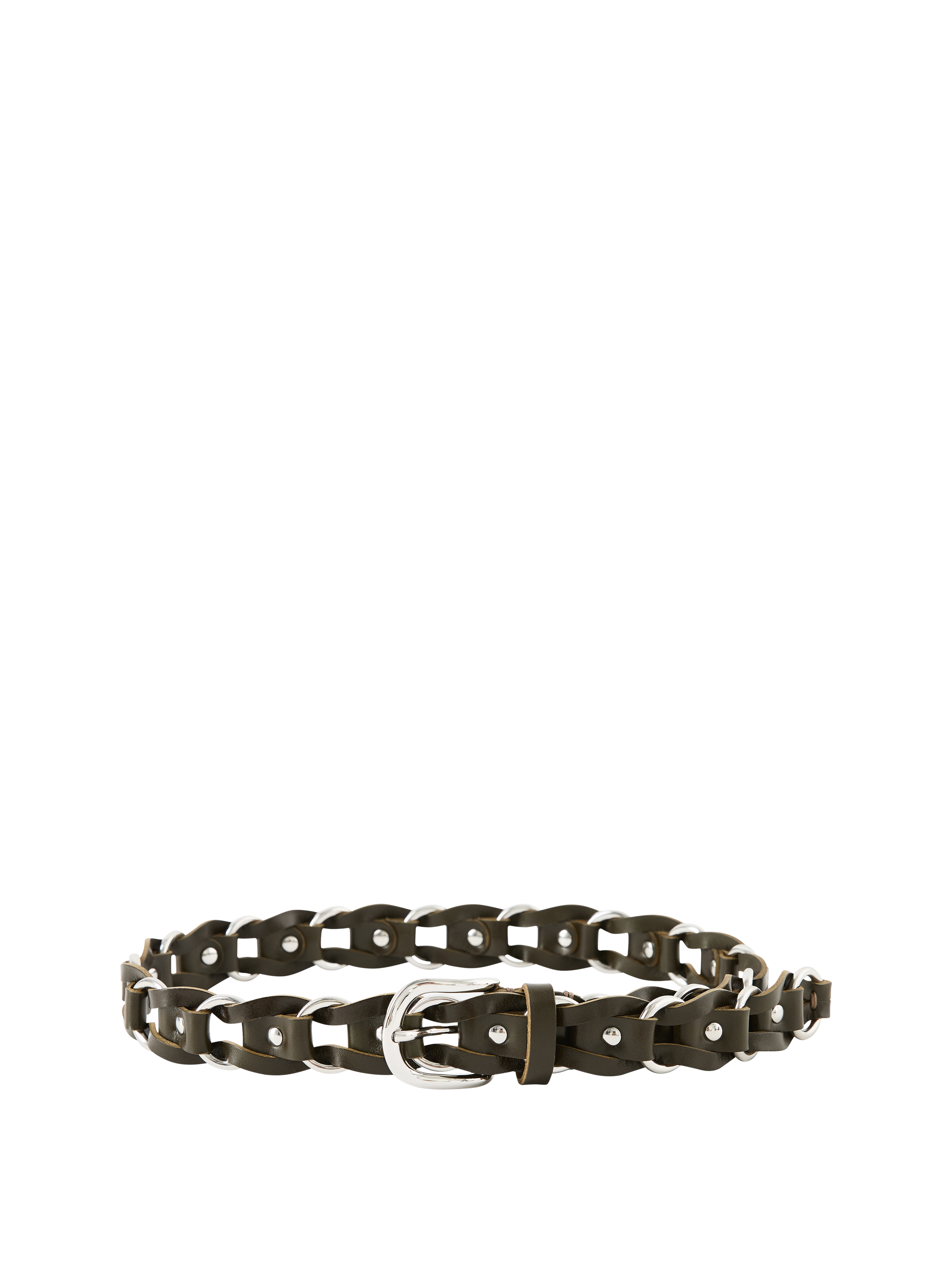 Der Ledergürtel 'Bali' in Khaki von Isabel Marant wurde aus weiches, glattes Rindsleder gefertigt und besticht durch die Metallringe. Der verstellbare Verschluss mit Schnalle aus Metall sowie die Schlaufen aus genageltem Leder zeichnet dieses Design aus.
