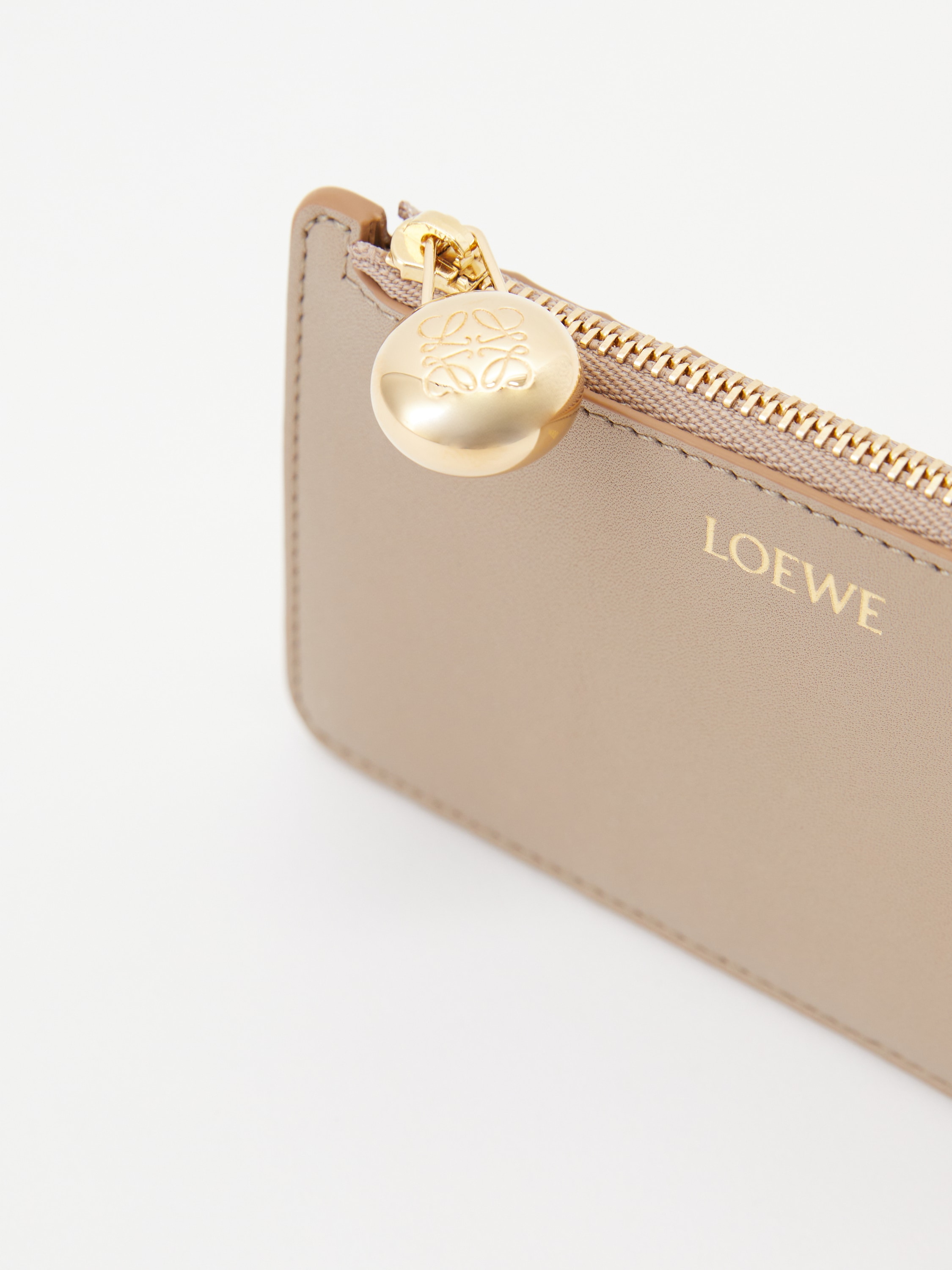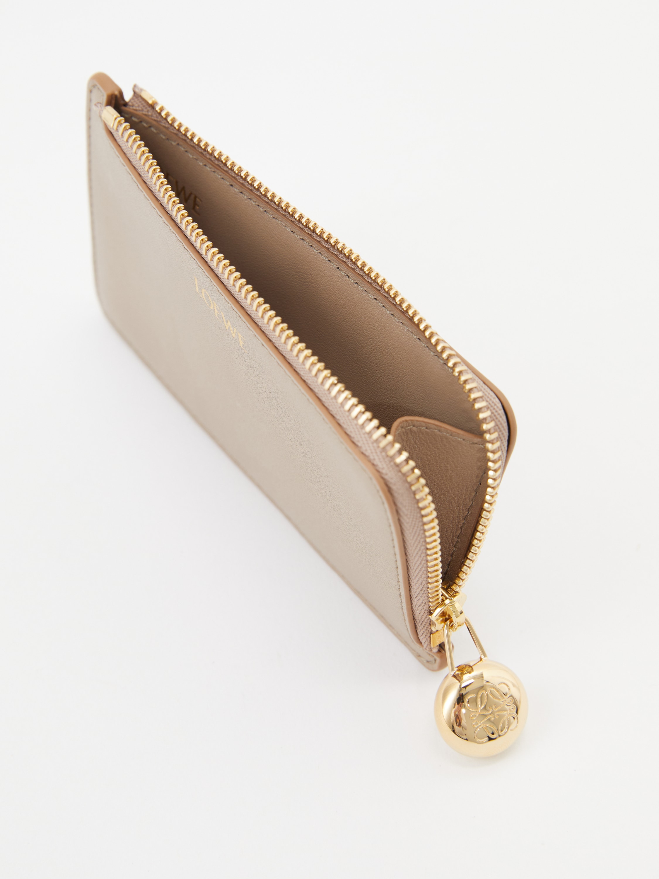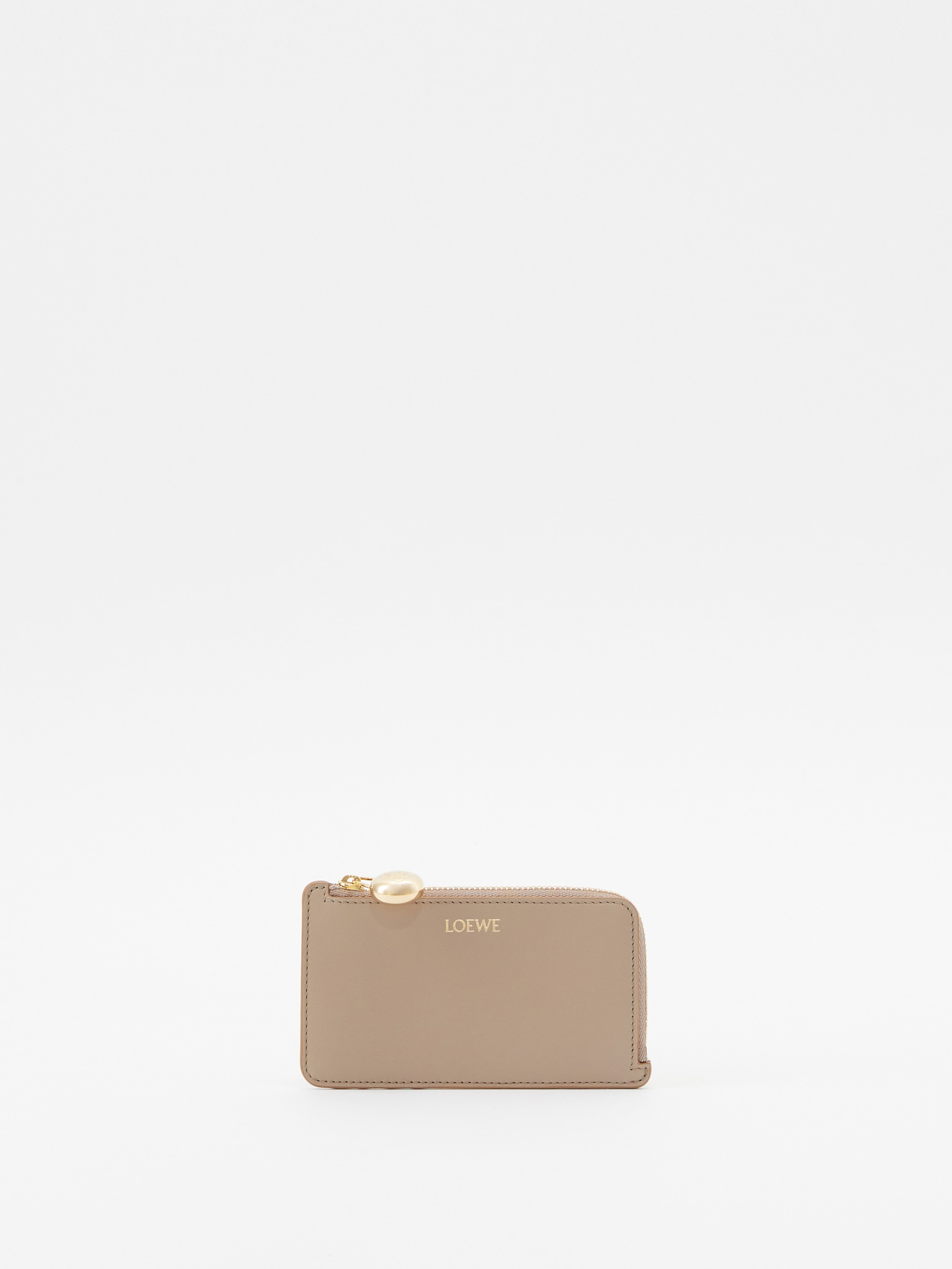 Das Kartenetui 'Pebble Coin' in Beige von LOEWE wurde aus hochwertigem Nappa-Kalbsleder gefertigt. Die vier Kartenfächer und das Reißverschlussfach machen das Modell zu einem praktischen Begleiter. Die goldfarbene Hardware und der charakteristische Pebble-Reißverschluss runden das Modell stilvoll ab.
