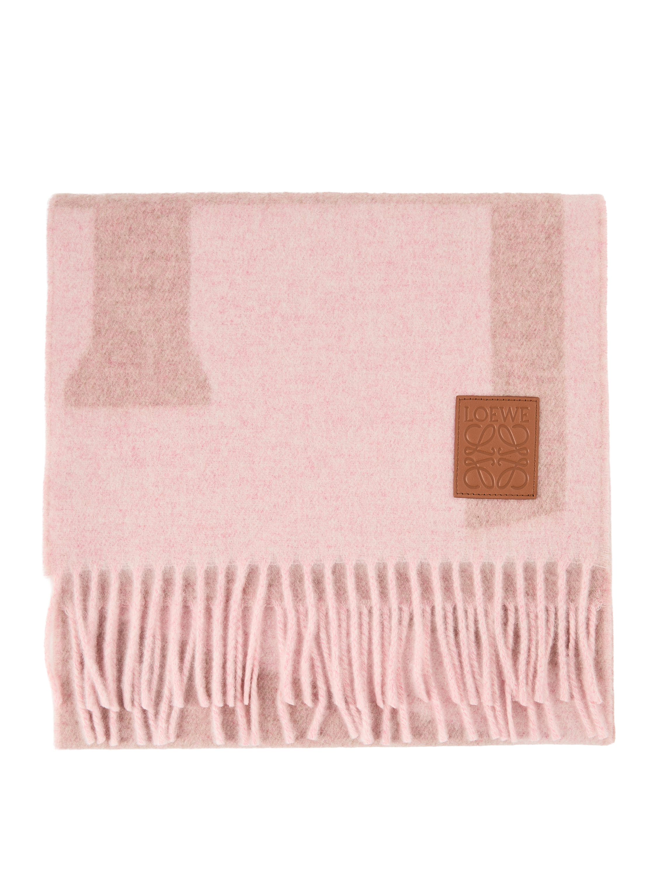 Dieser Schal von LOEWE in Rosé wurde aus leichtem Cashmere gefertigt und besticht durch das übergroße, zweifarbige LOEWE-Jacquard. Die weiche Haptik, die Fransen am Rand sowie der LOEWE-Anagram-Lederaufnäher mit Prägung an der Ecke zeichnen das Design aus.