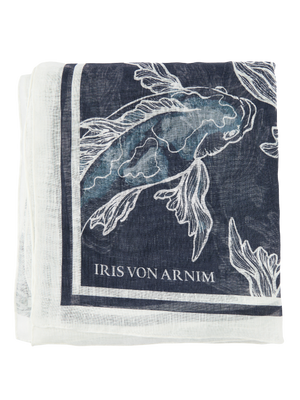 Das Tuch 'Koi' in Rosé von Iris von Arnim wurde aus feinstem Leinen gefertigt und besticht durch einen Allover-Print mit Fischmotiv. Das hochwertige Modell wird durch die quadratische Form und das leichte Material stilvoll ergänzt. Sauber verarbeitete Kanten sorgen für einen harmonischen Abschluss.