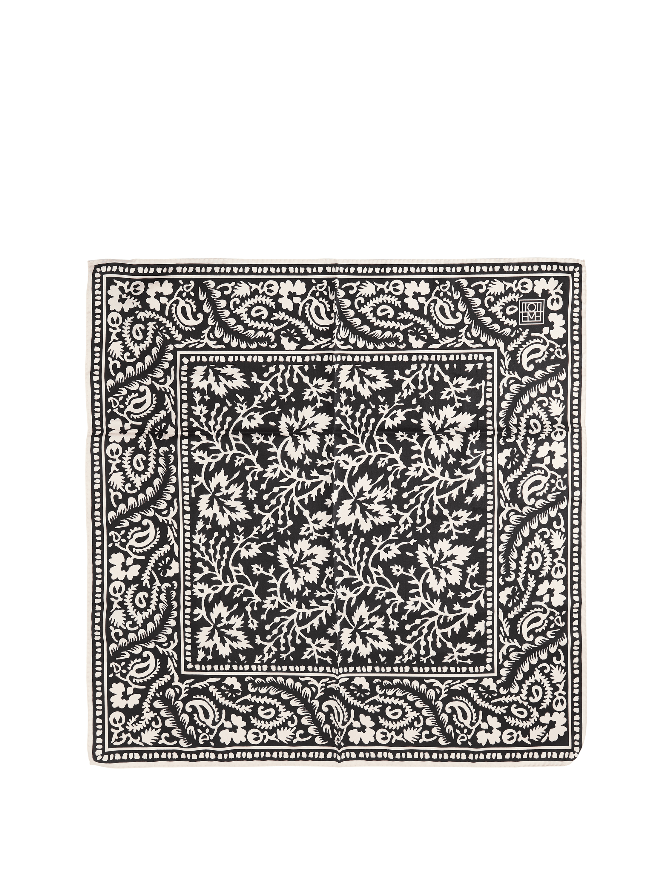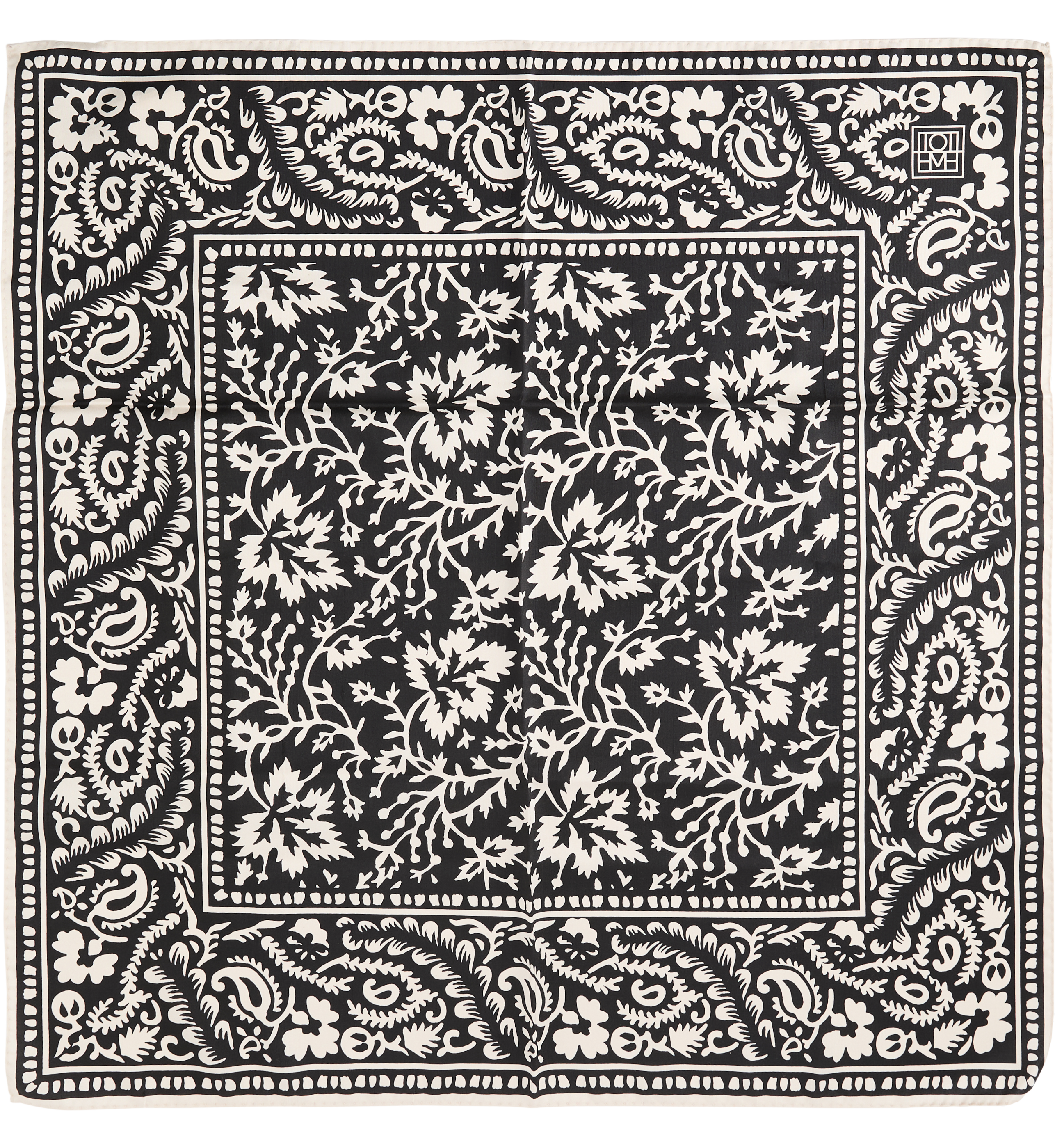 Das Tuch 'Paisley Hankie' in Schwarz von TOTEME wurde aus reiner Seide gefertigt und besticht durch die seidige Haptik. Das hochwertige Modell wird durch die rechteckige Form und den Logo-Aufdruck stilvoll ergänzt. Dieses Tuch kann auf verschiedene Weise getragen werden.