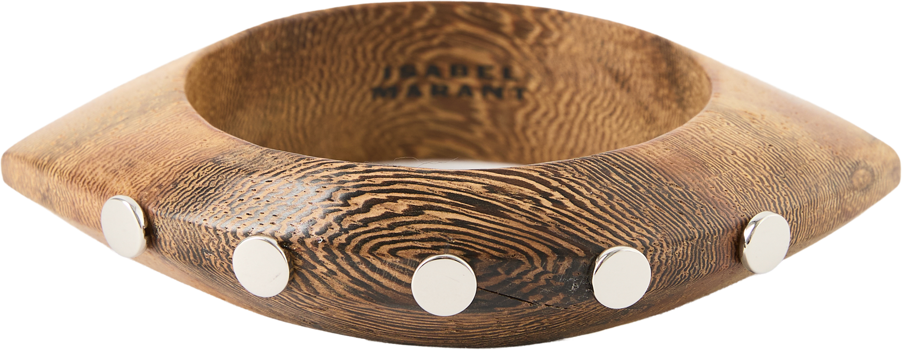 Das Armband 'Layla' in Braun von Isabel Marant wurde aus Holz gefertigt. Die breite Form und die silberfarbenen Messingnieten verleihen dem Accessoire eine markante Optik.