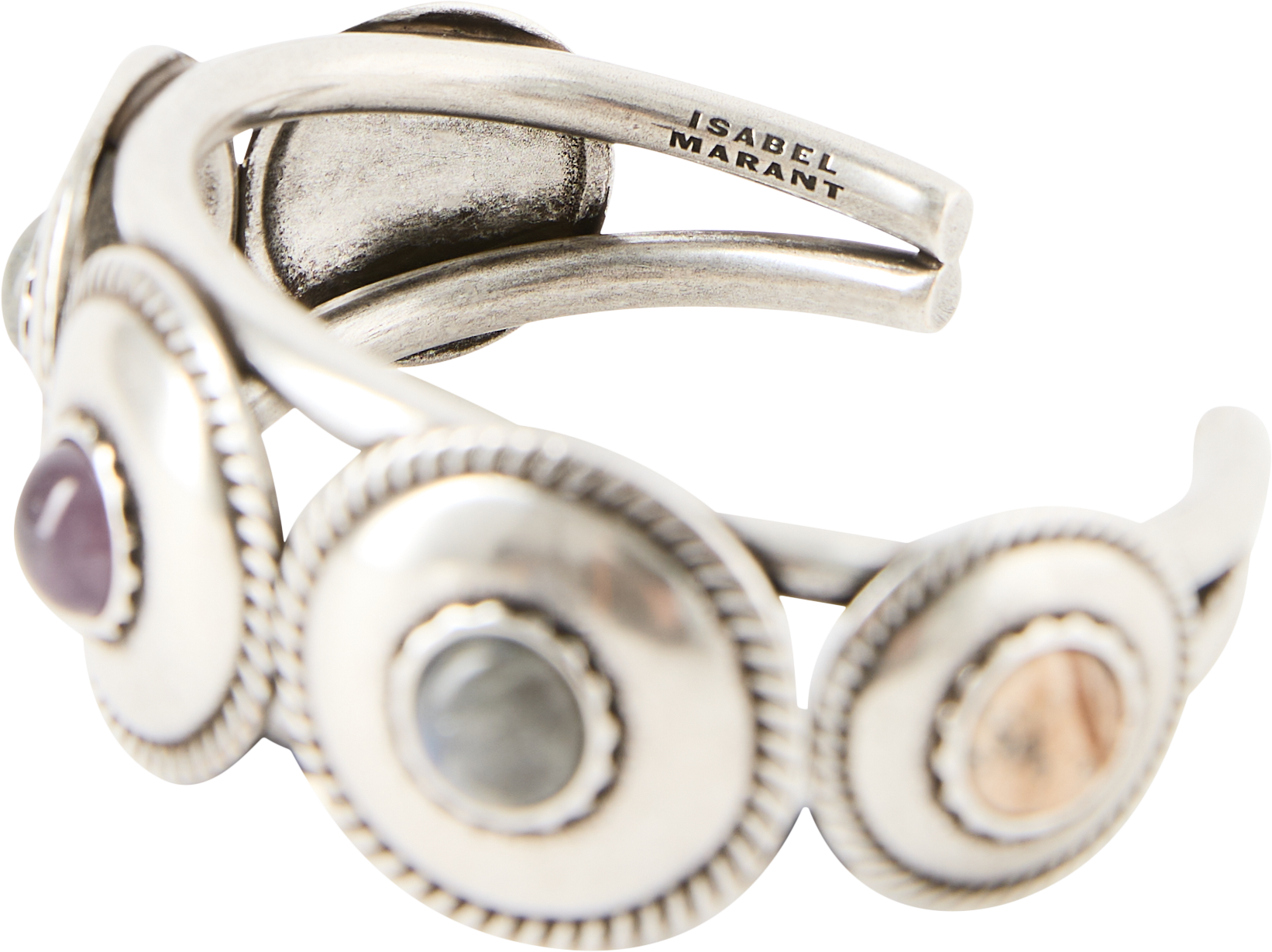 Dieser Armreif in Silber von Isabel Marant wurde aus Messing gefertigt und besticht durch die markante Manschettenform. Das versilberte Messing sowie die eingravierte Isabel-Marant-Signatur verleihen dem Schmuckstück einen besonderen Charme.