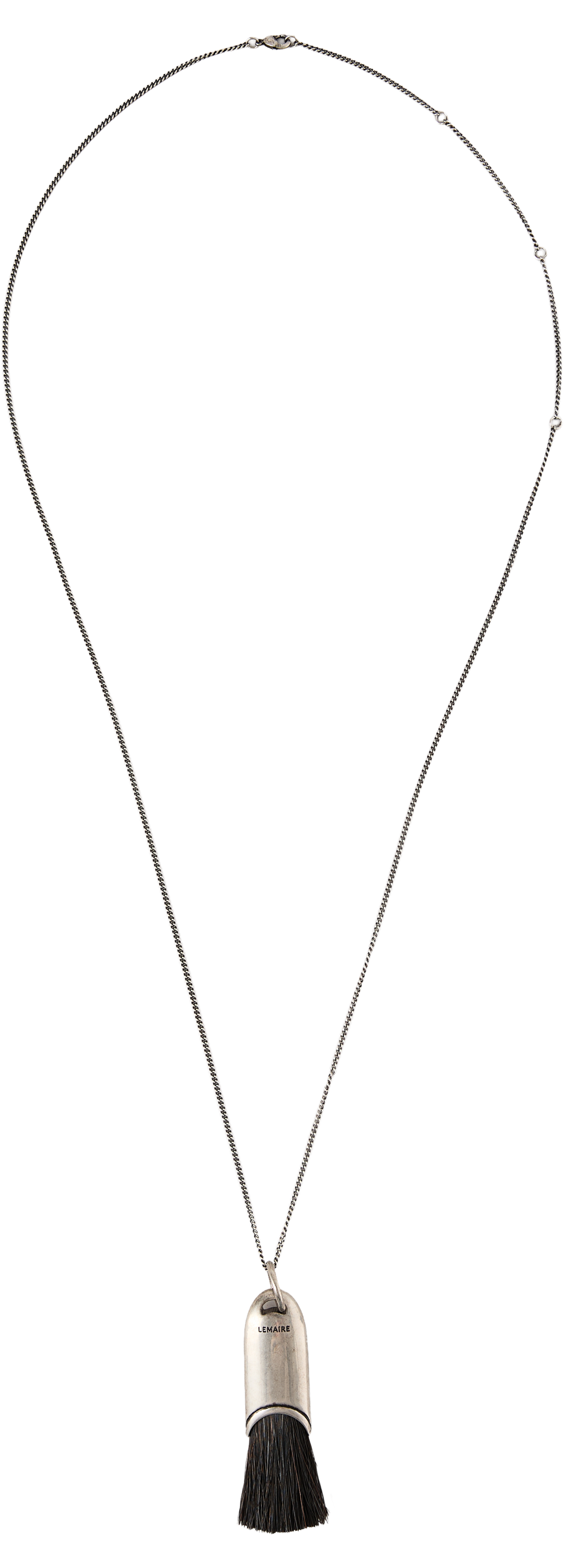 Die Halskette 'Personal Brush' in Silber von Lemaire wurde aus Messing und Pferdehaar gefertigt und besticht durch den Pinselanhänger. Die einstellbare Länge mit Ring und Karabinerhaken sowie das Lemaire-Logo, eingraviert auf der Rückseite des Griffs, runden dieses Schmuckstück stilvoll ab.