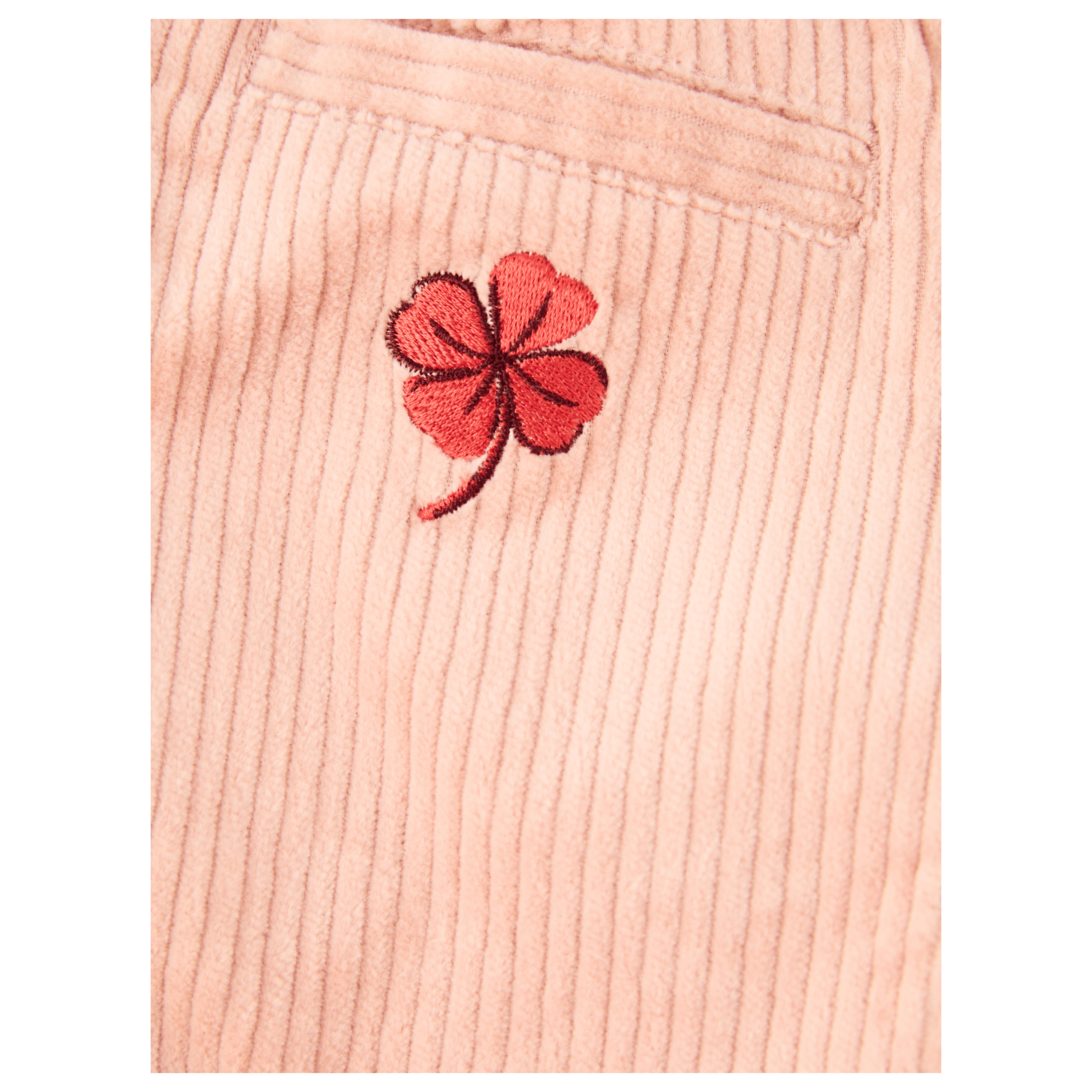 - Mit gesticktem Kleeblatt