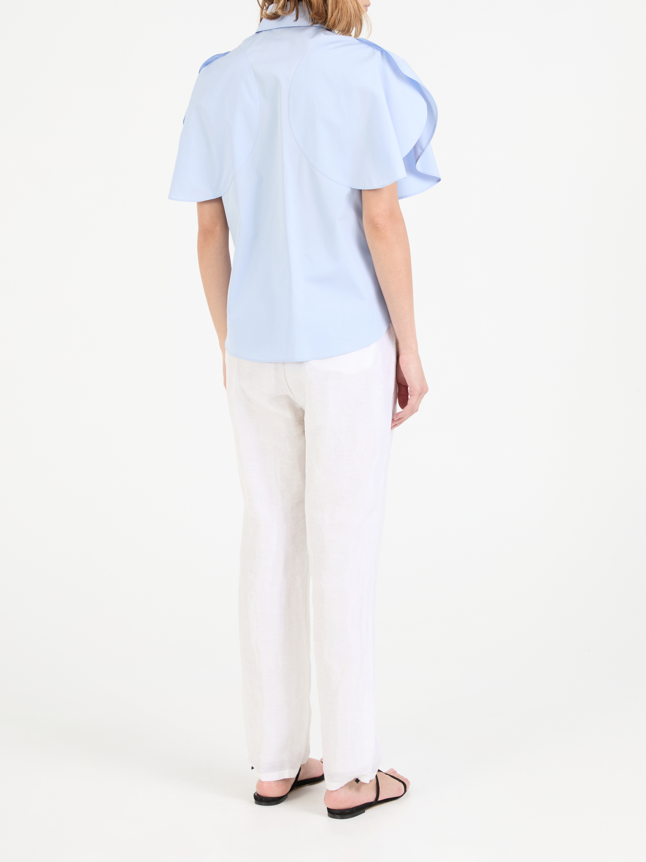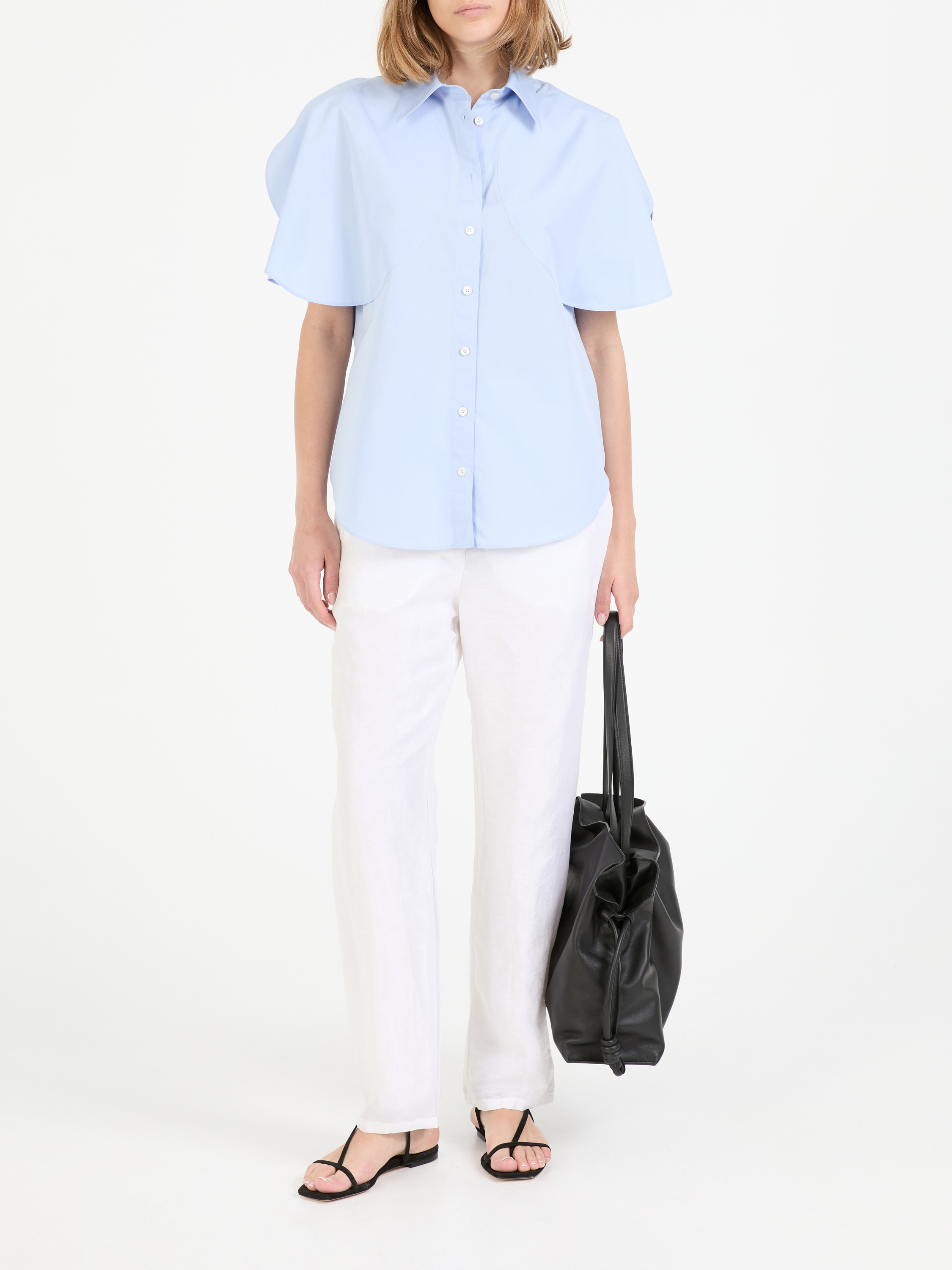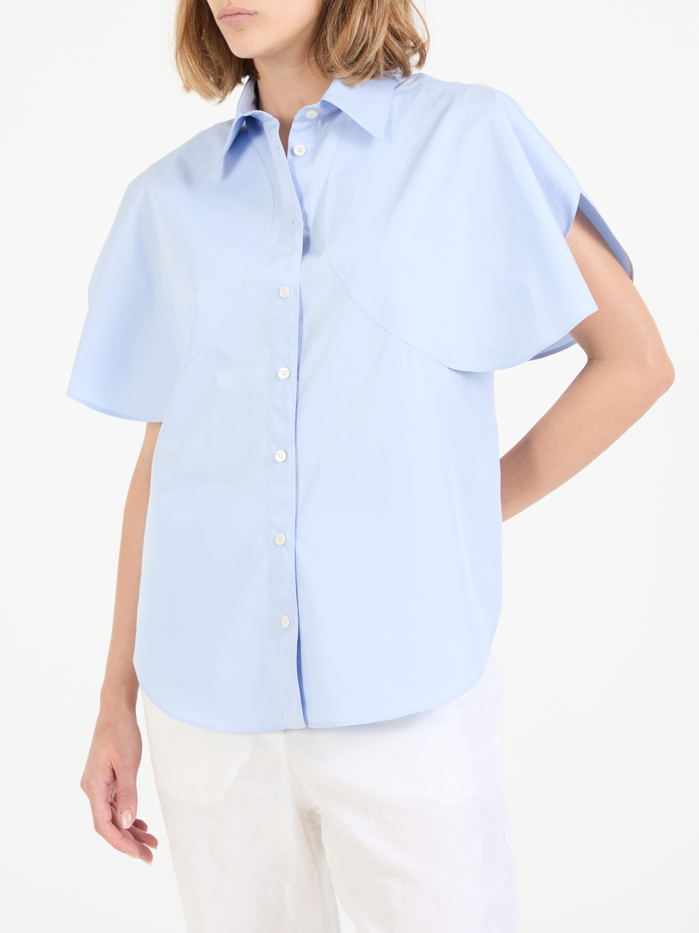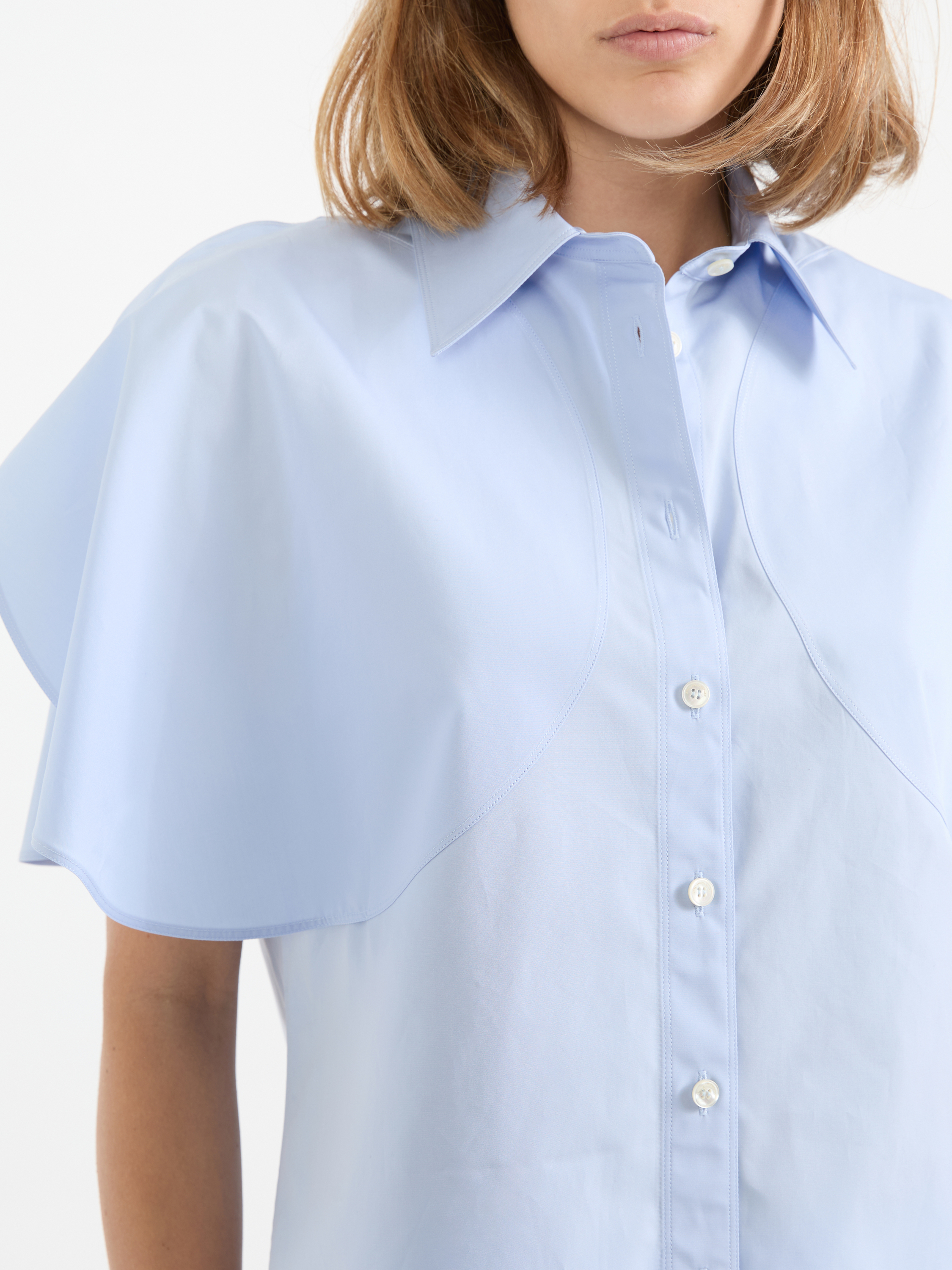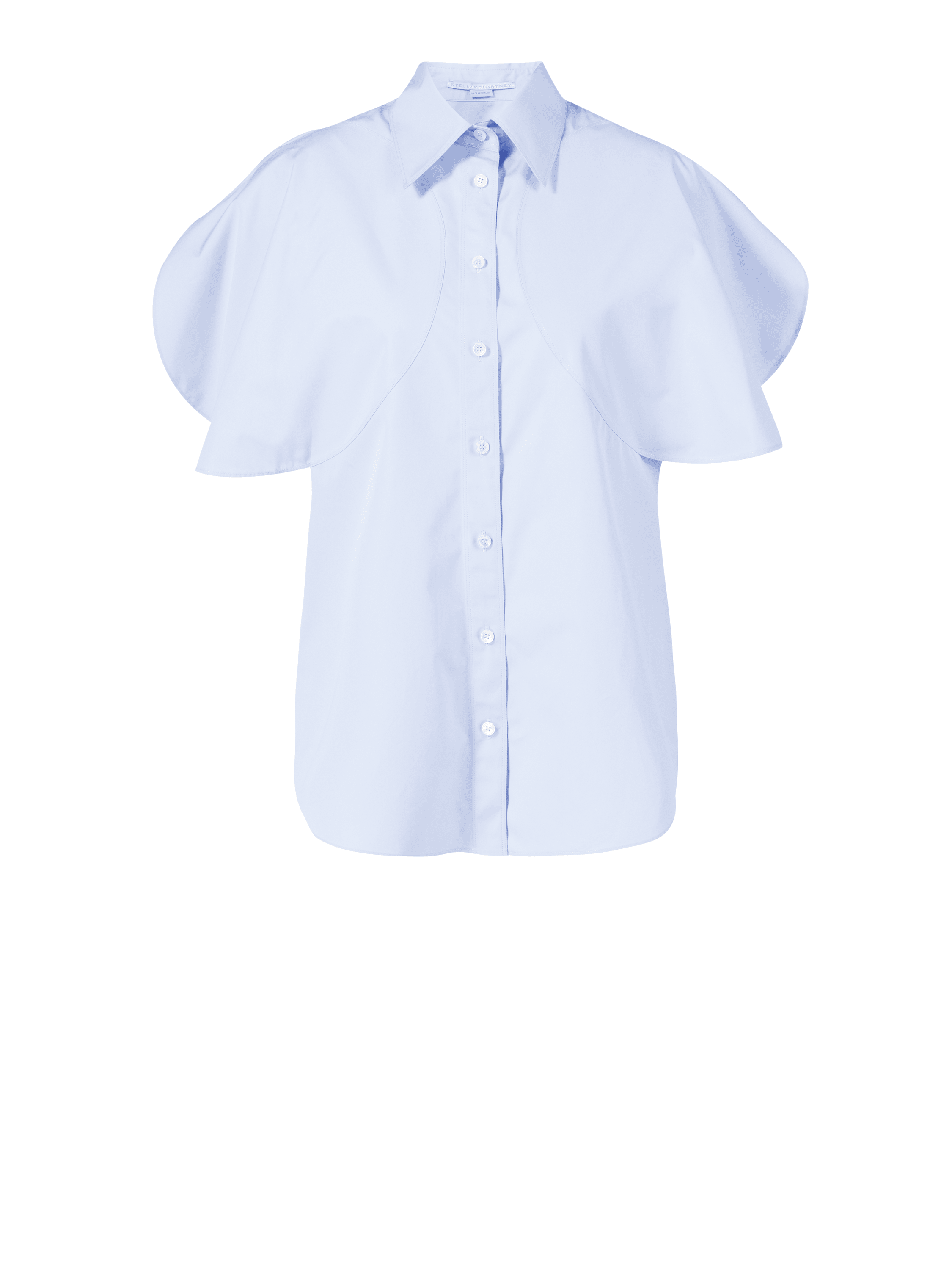 Diese Bluse in Hellblau von Stella McCartney wurde aus Baumwolle gefertigt und besticht durch die geometrischen Flügelärmel. Die runden Linien auf der geraden Silhouette und die feinen Steppnähte zeichnen dieses moderne Design aus.