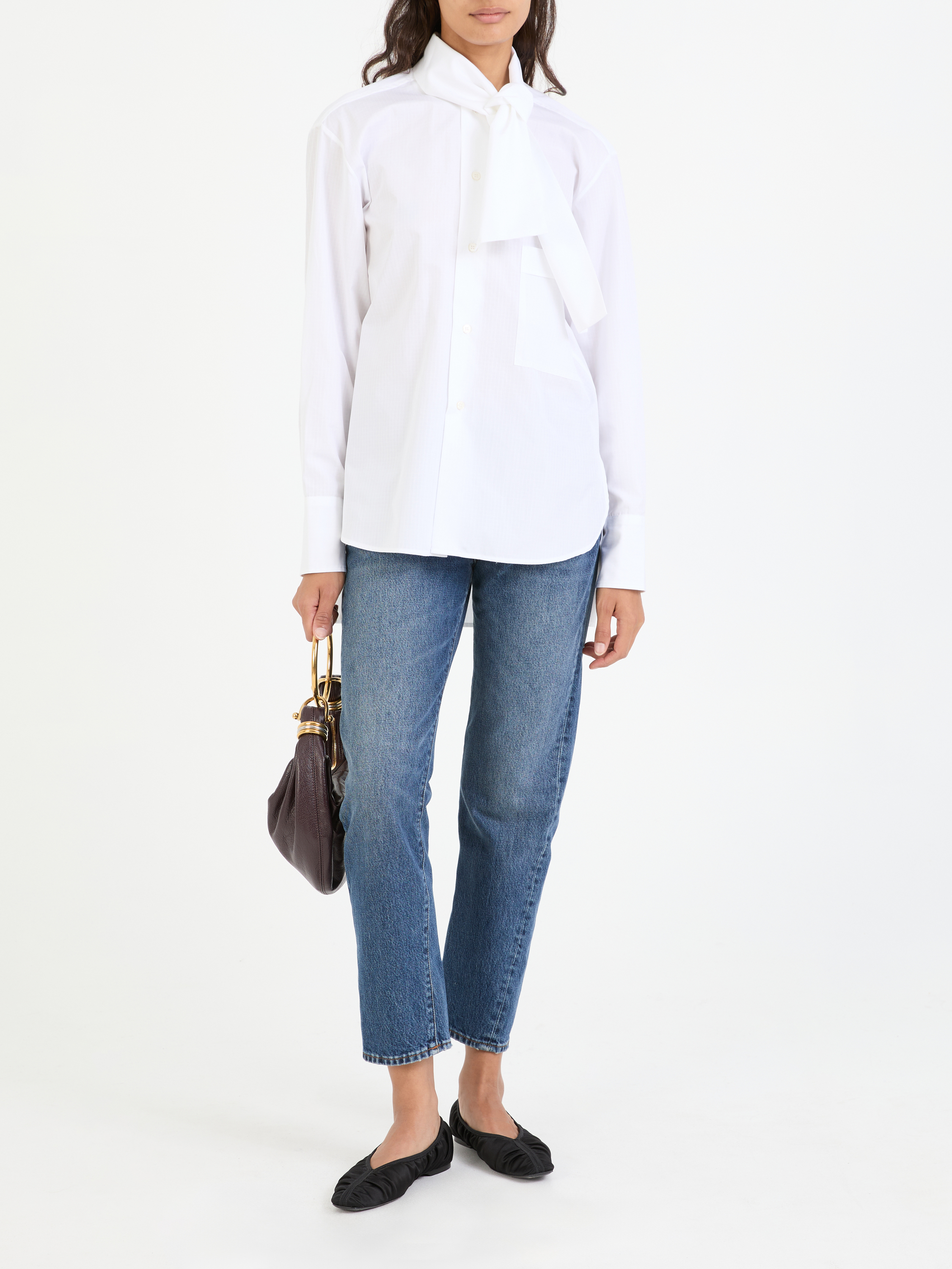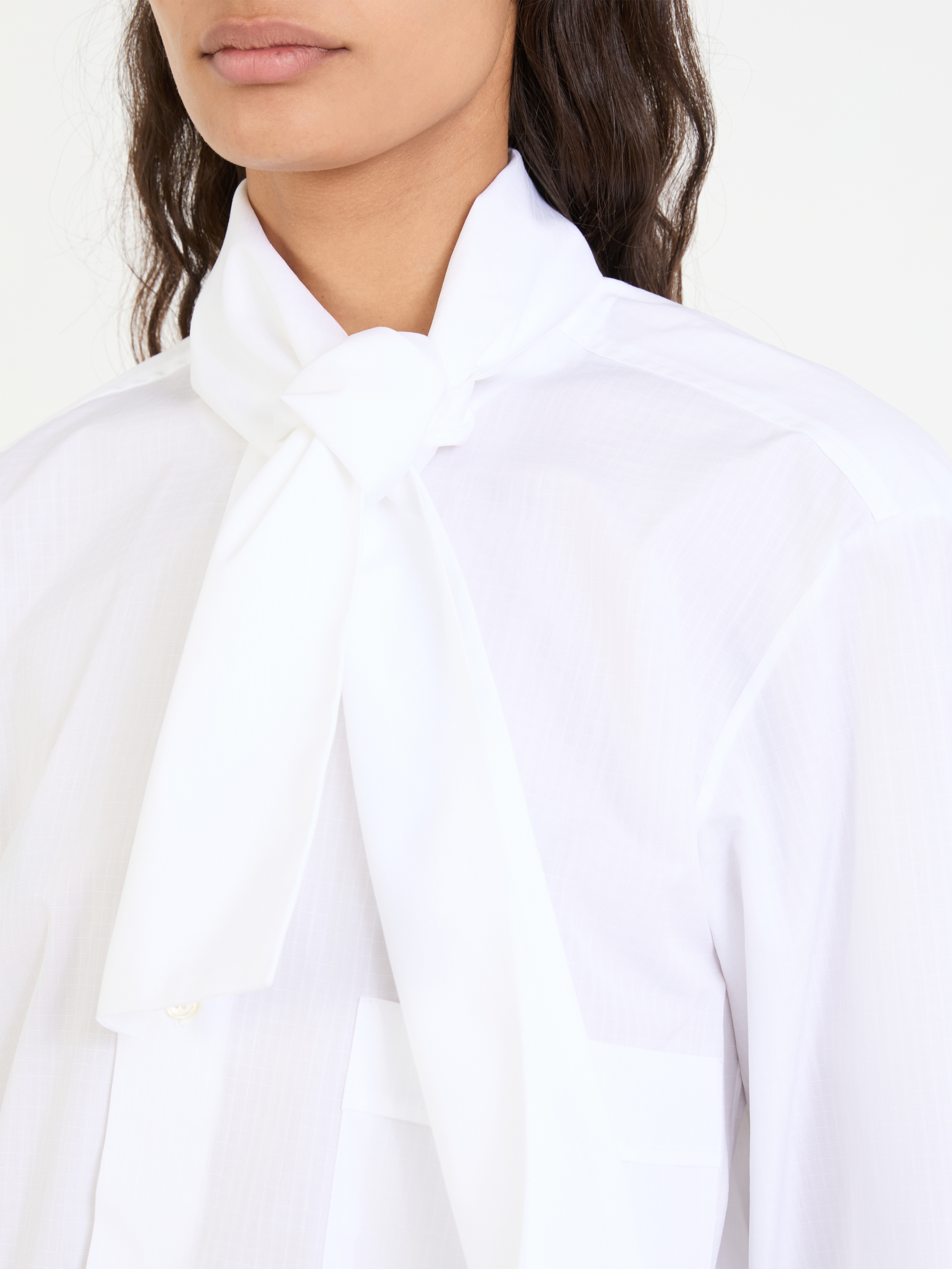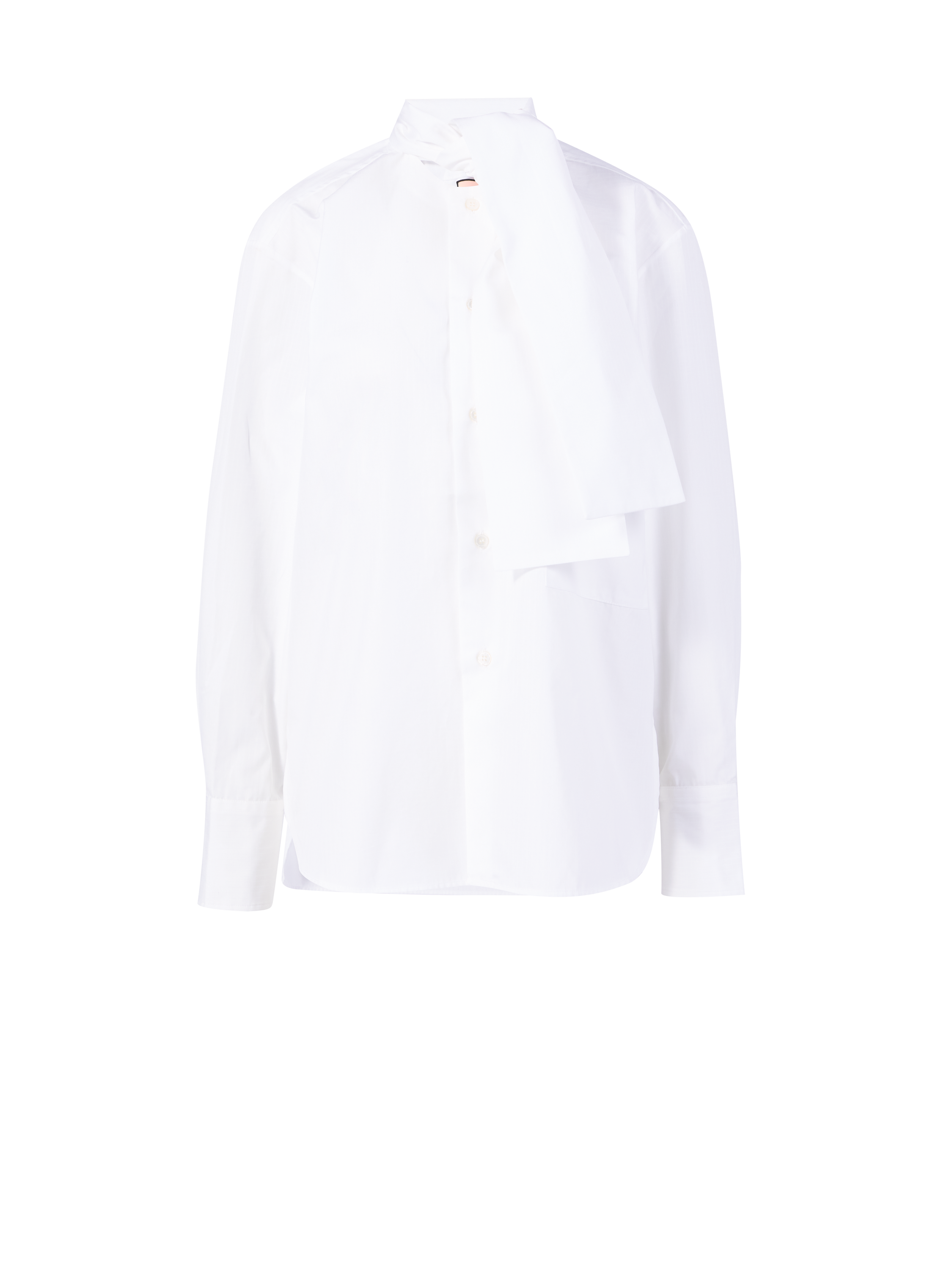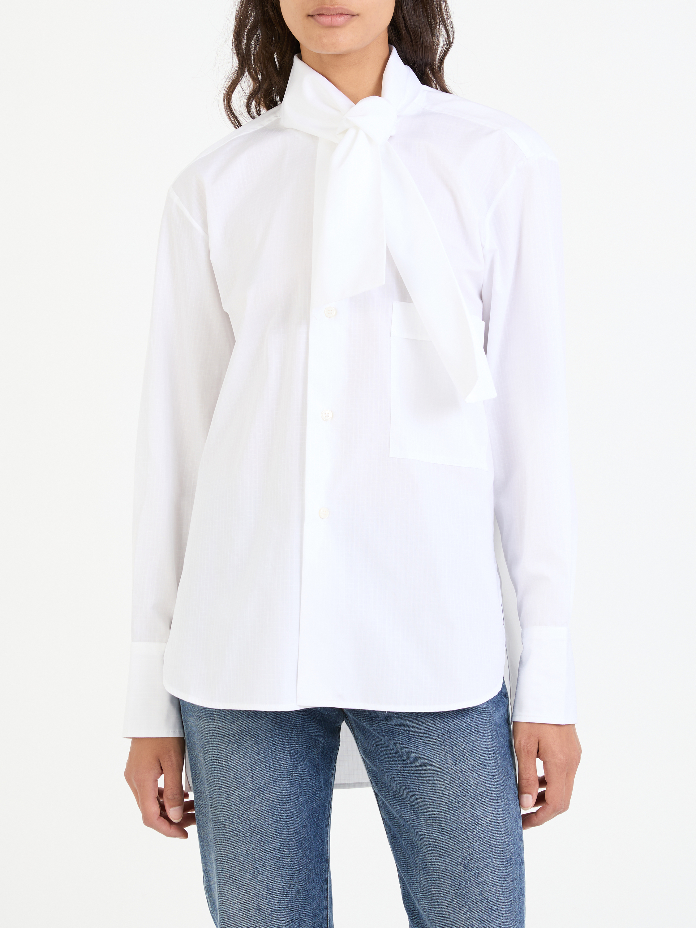 Diese Bluse in Weiß von PLAN C wurde aus hochwertiger Baumwolle gefertigt und besticht durch das klassische Design. Die lockere Passform und die frontale Knopfleiste mit abnehmbarem Halstuch definieren dieses edle Design. Die geknöpften Manschetten und die Brustleistentasche vollenden dieses legere Modell.