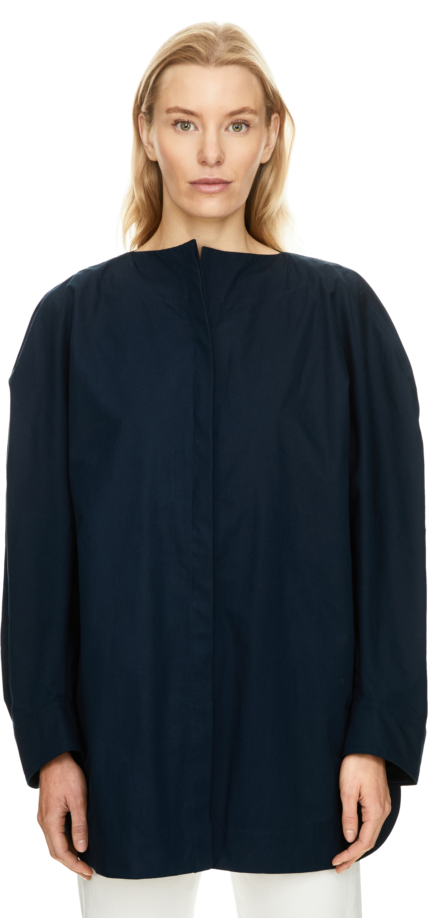 Das Hemd 'La Chemise Pittore' in Marineblau von JACQUEMUS wurde aus kompakter Baumwollpopeline gefertigt und besticht durch die entspannte Passform. Der U-Boot-Kragen, der zugeknöpft oder offen getragen werden kann, die versteckte Knopfleiste, die lang geschwungenen Ärmel sowie die plissierten, geknöpften Manschetten runden dieses Design stilvoll ab.