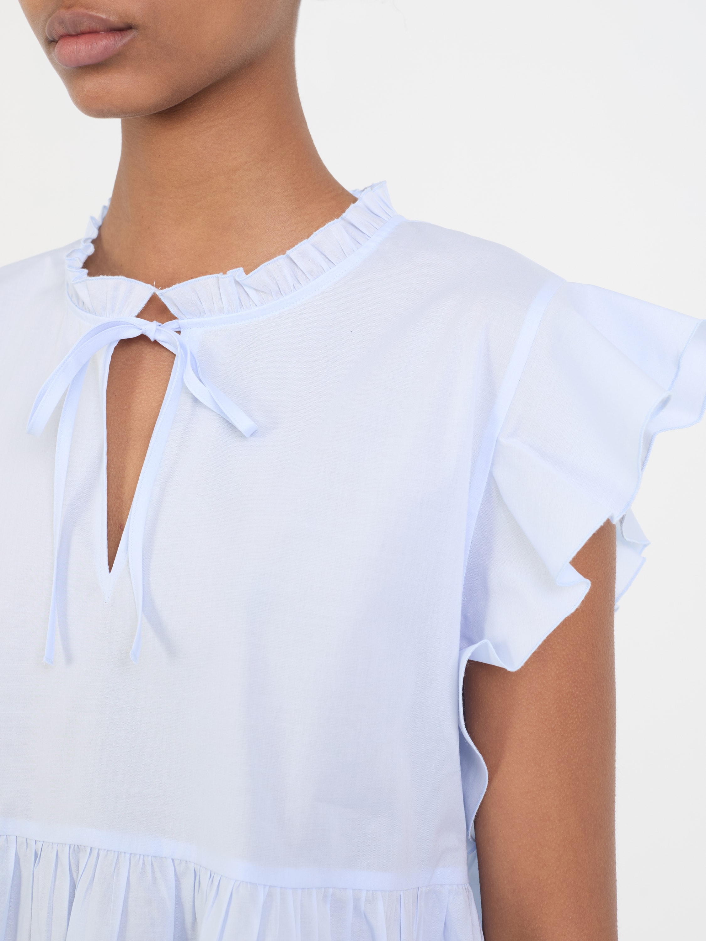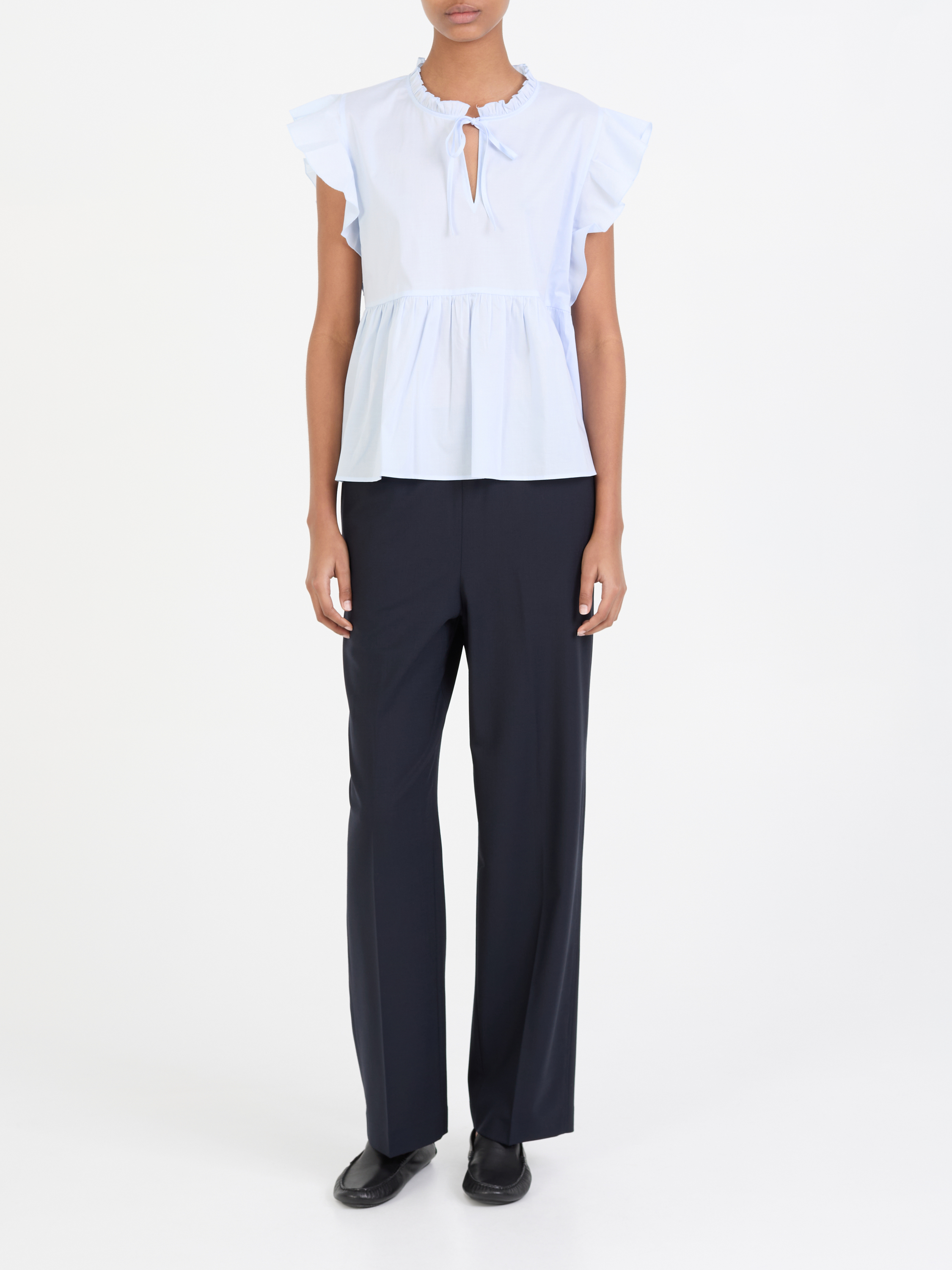 Bluse mit Rüschen Hellblau