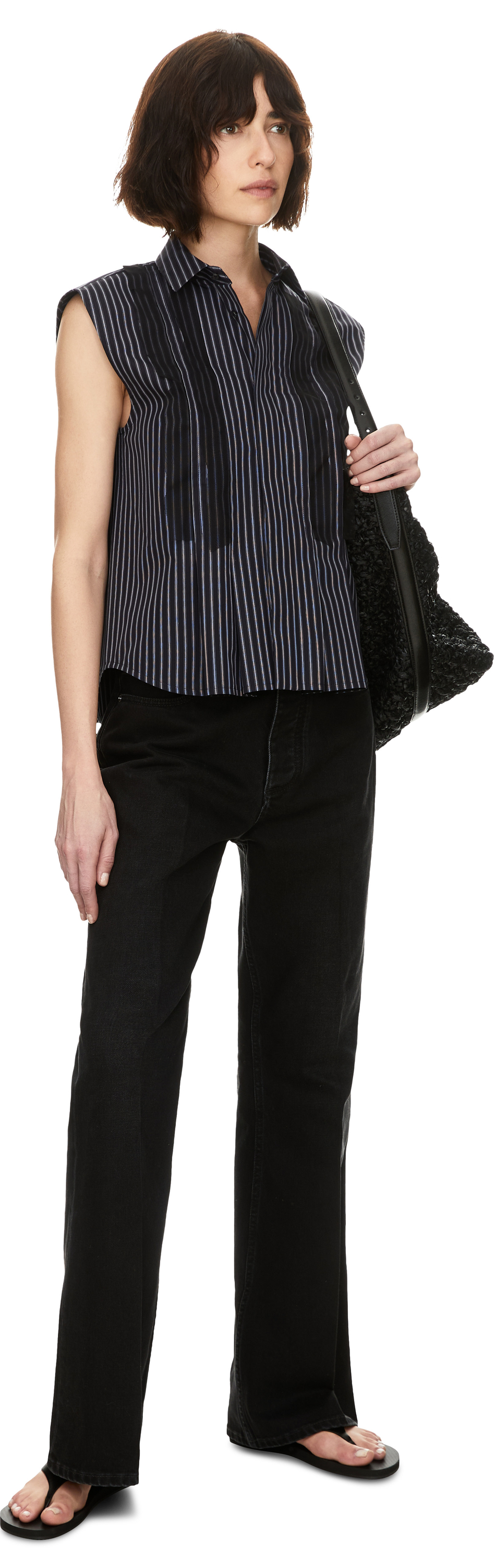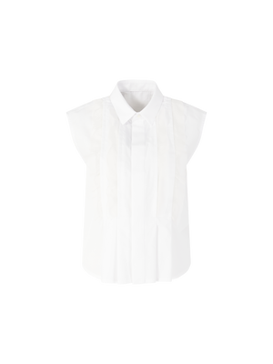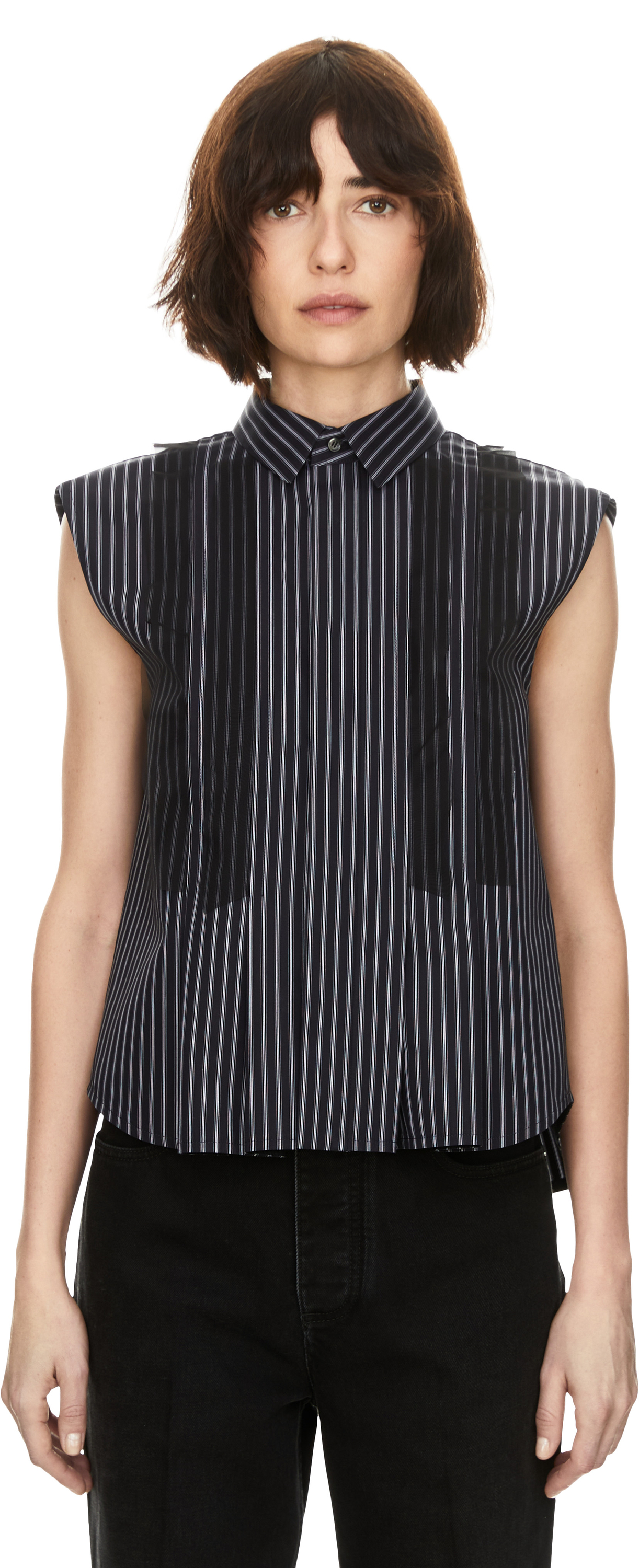 Diese Bluse in Marineblau von Sacai wurde aus Baumwollpopeline gefertigt und besticht durch die Volants sowohl auf der Vorder- als auch auf der Rückseite. Die verdeckte Knopfleiste mit Logoprägung sowie der spitze Kragen setzen elegante Akzente.