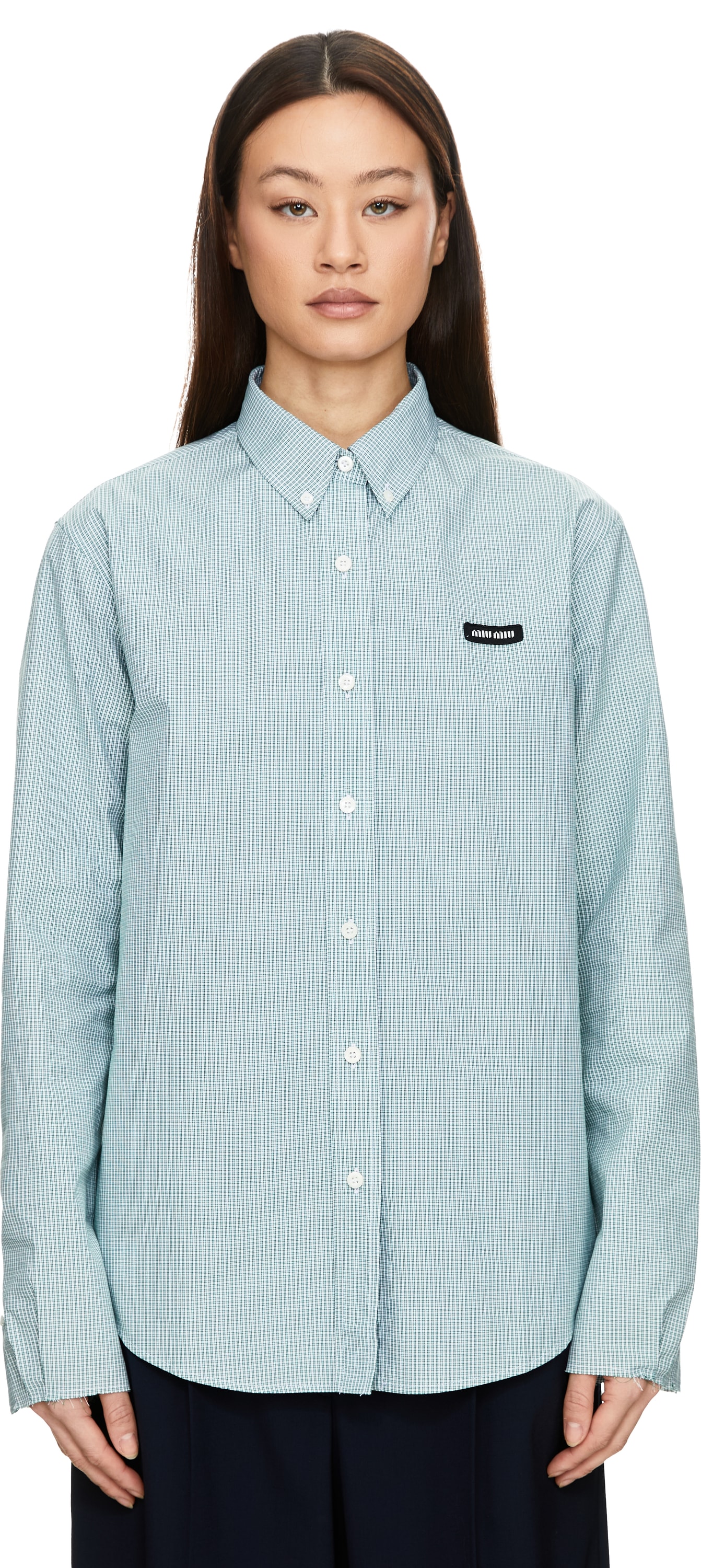 Dieses klassische Hemd in Grün von miu miu wurde aus reiner Baumwolle gefertigt und besticht durch den ikonischen Logo-Schriftzug auf der Vorderseite. Das klassische Button-Down-Design, der Hemdkragen sowie die Knopfleiste auf der Vorderseite zeichnen dieses moderne Modell aus.