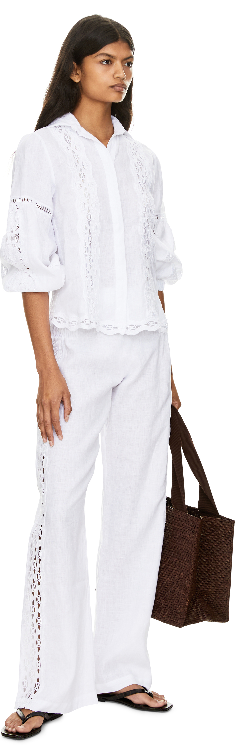 Leinenbluse 'Lavanda' mit Lochstickerei Weiß