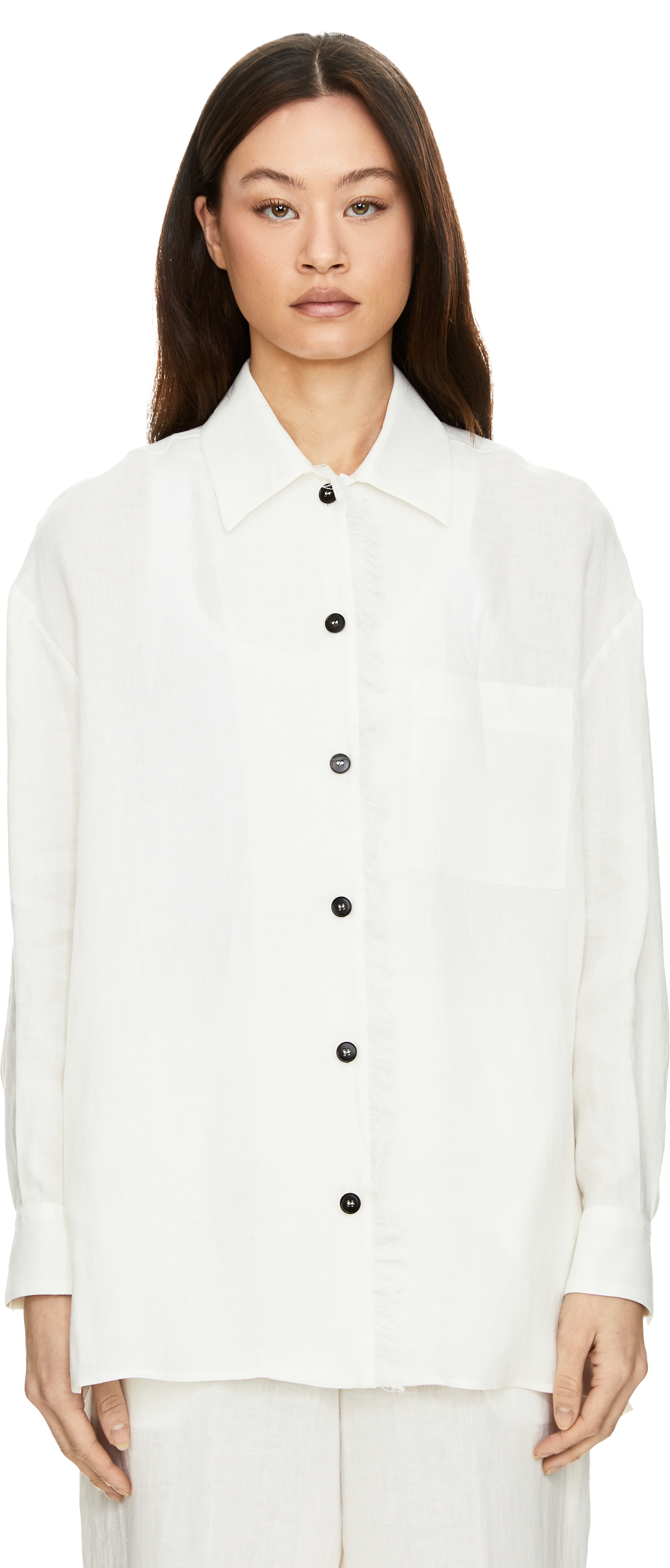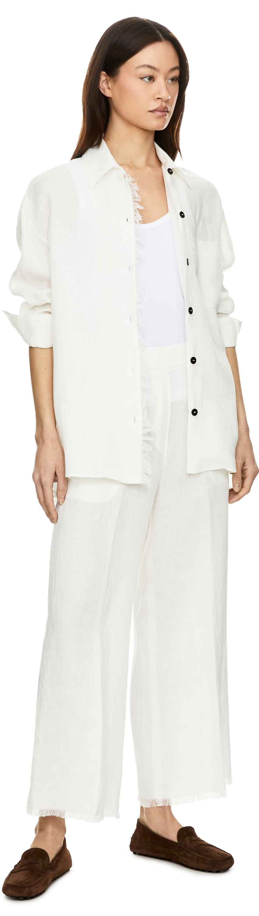 Oversized Leinenbluse 'Alicia' mit Fransen Weiß