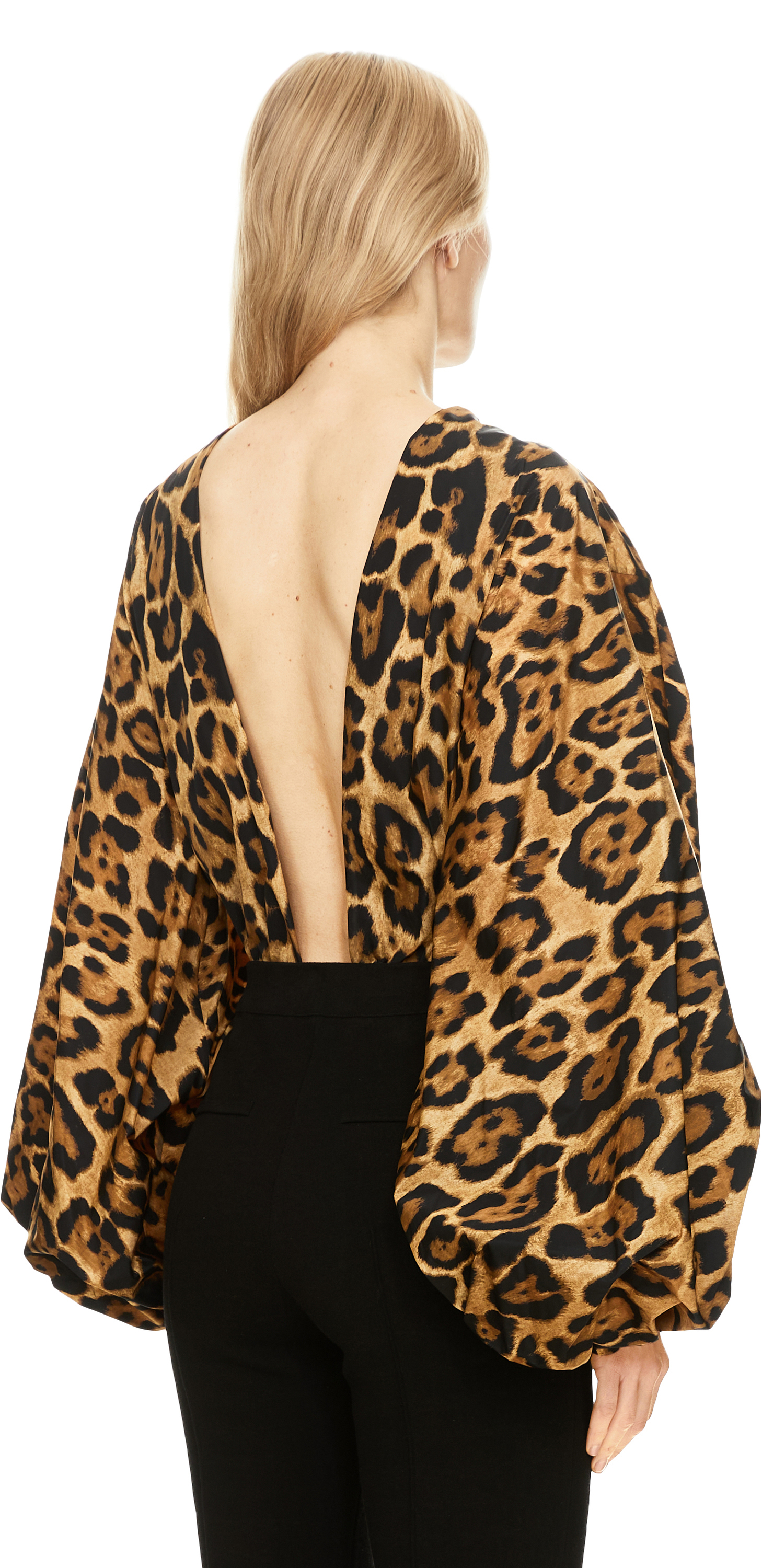 Dieser Body in Braun von Alaïa wurde aus Polyamid gefertigt und besticht durch den tiefen Rückenausschnitt. Das Leopardenmuster sorgt für einen stilvollen Touch, während die Ballonärmel eine raffinierte Note verleihen und die Silhouette gekonnt abrunden.