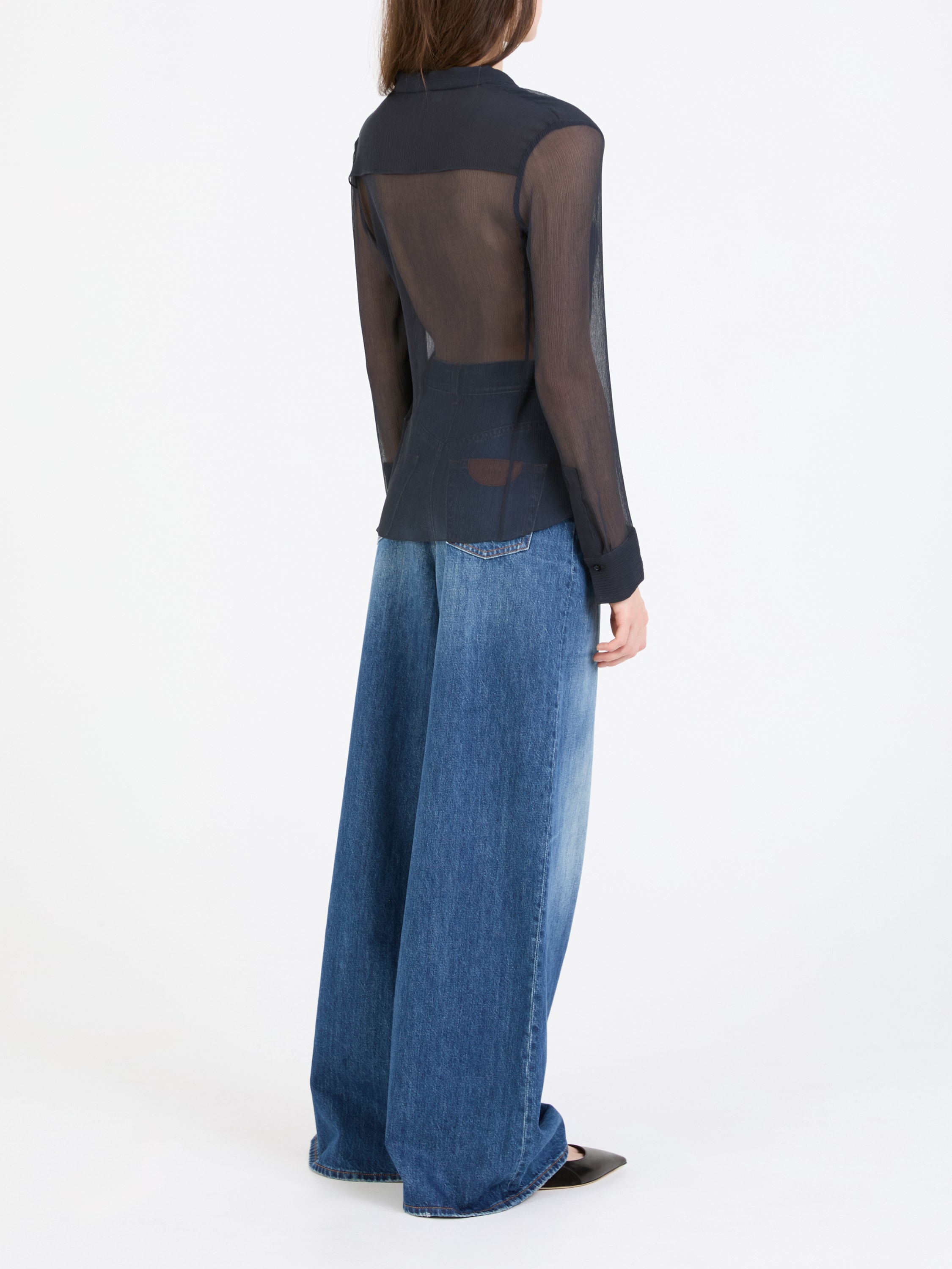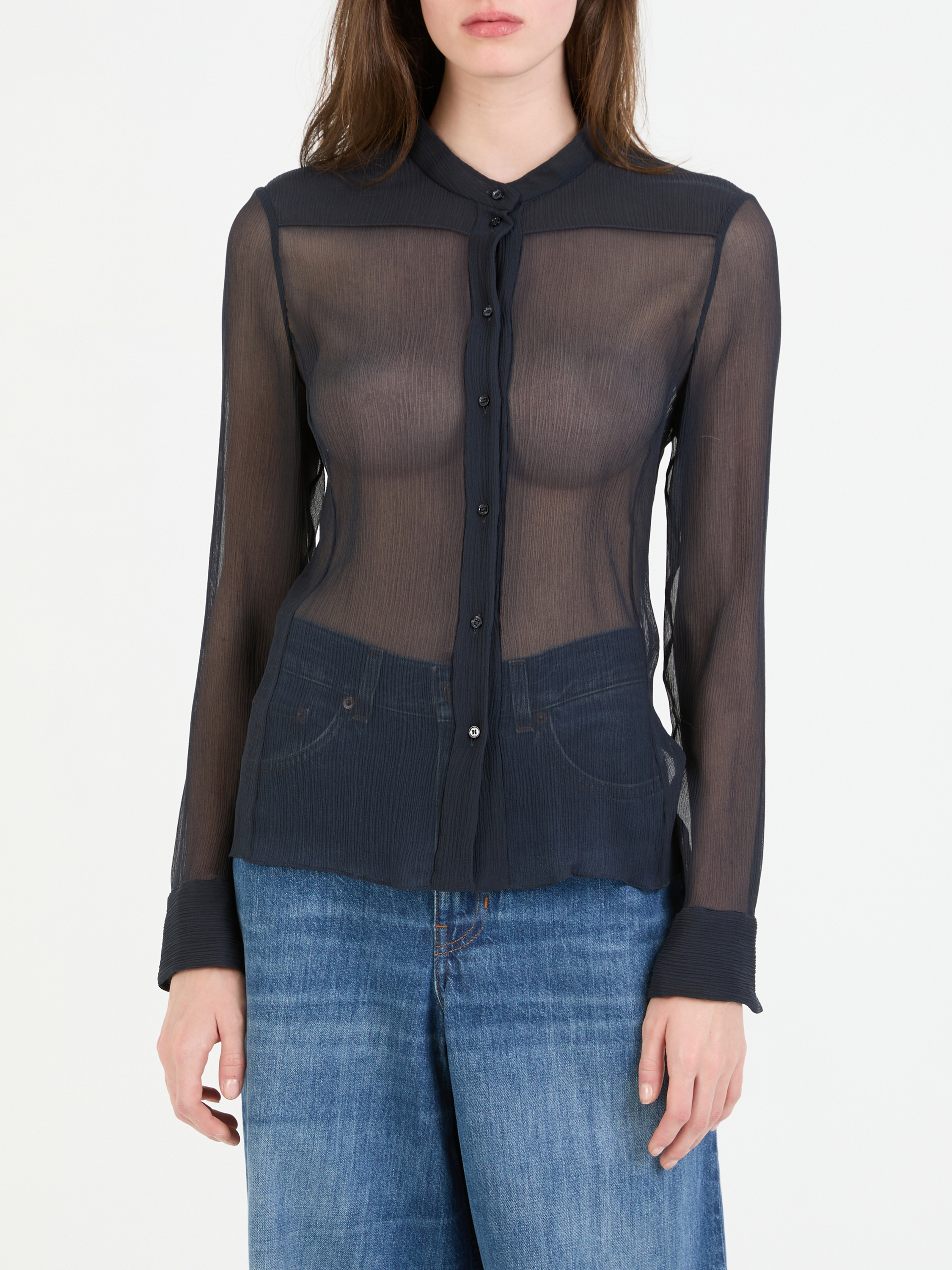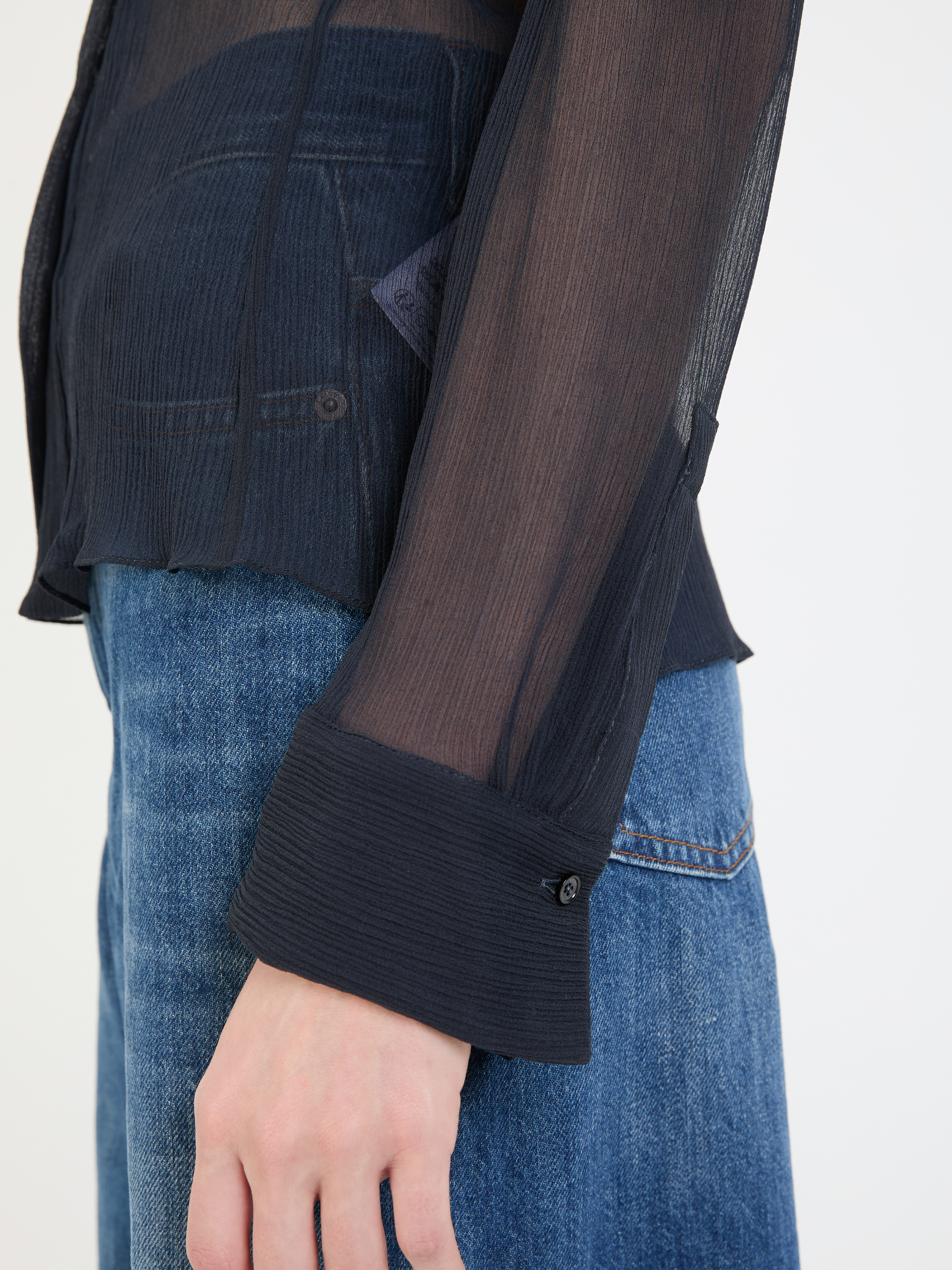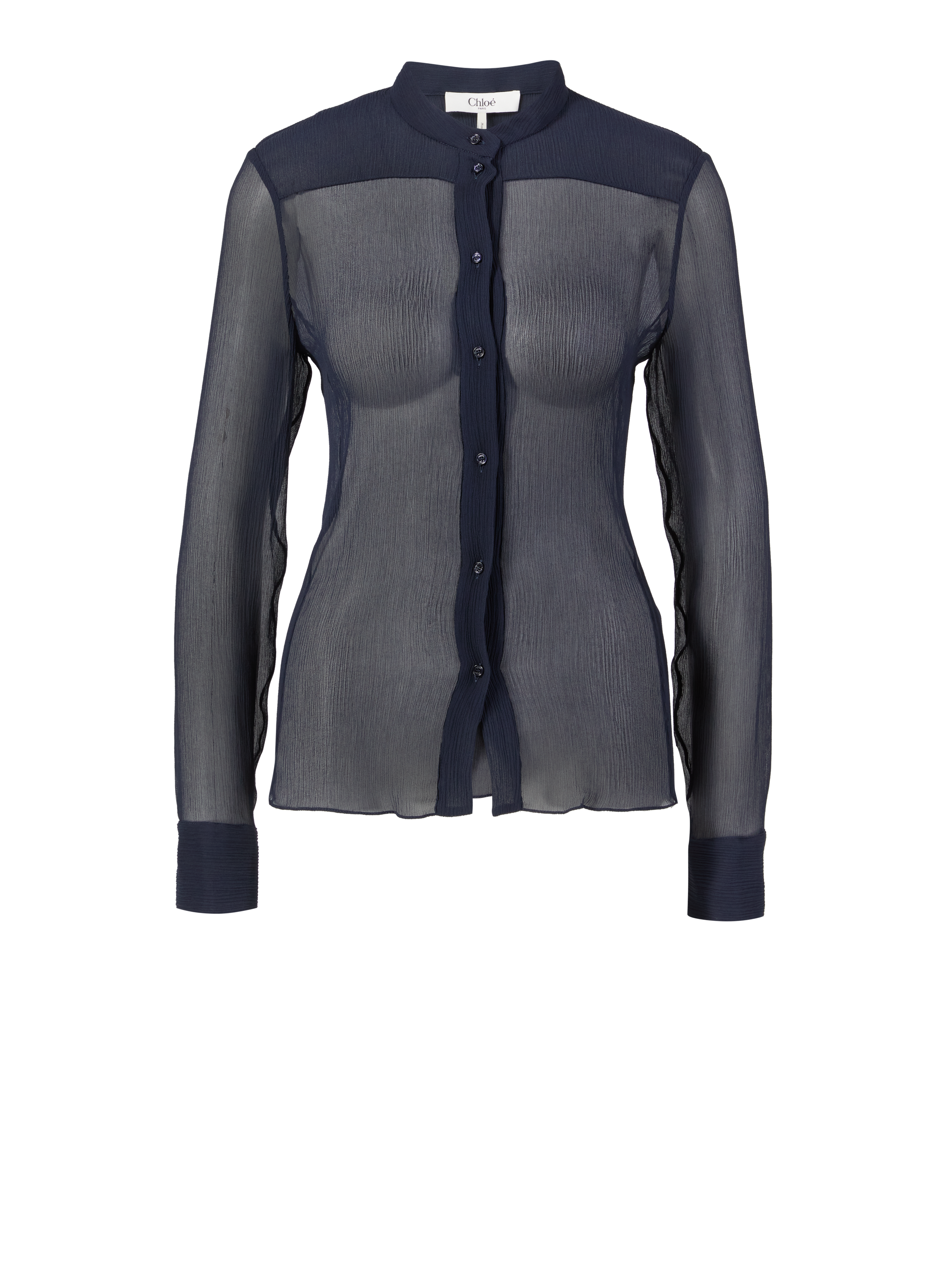 Diese Bluse in Marineblau von Chloé wurde aus purer Bio-Seide gefertigt. Die gerade, schmal geschnittene Silhouette und die schimmernde Optik schaffen einen stimmigen Abschluss.