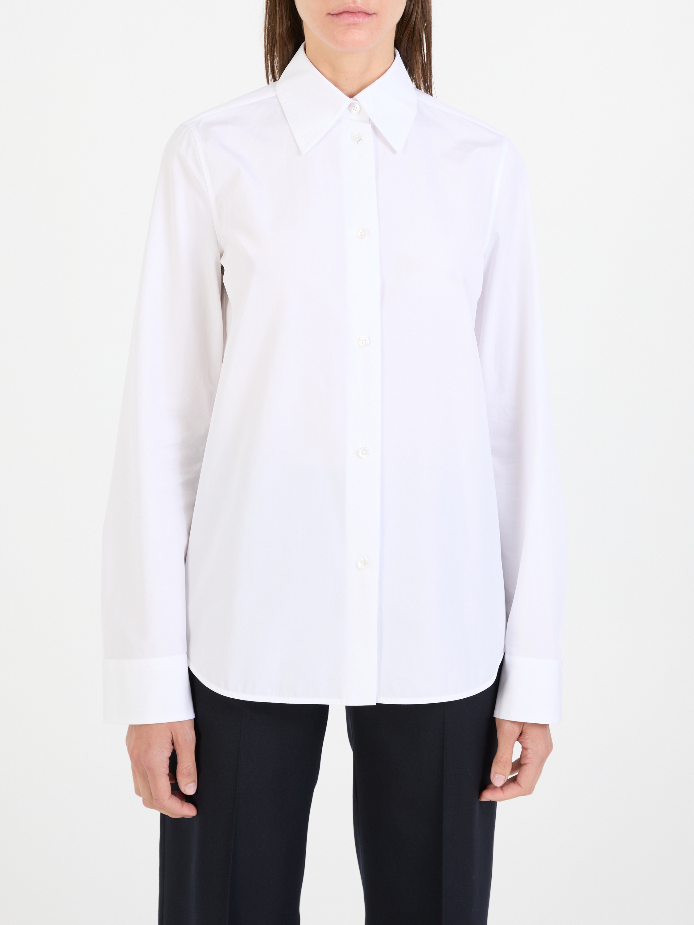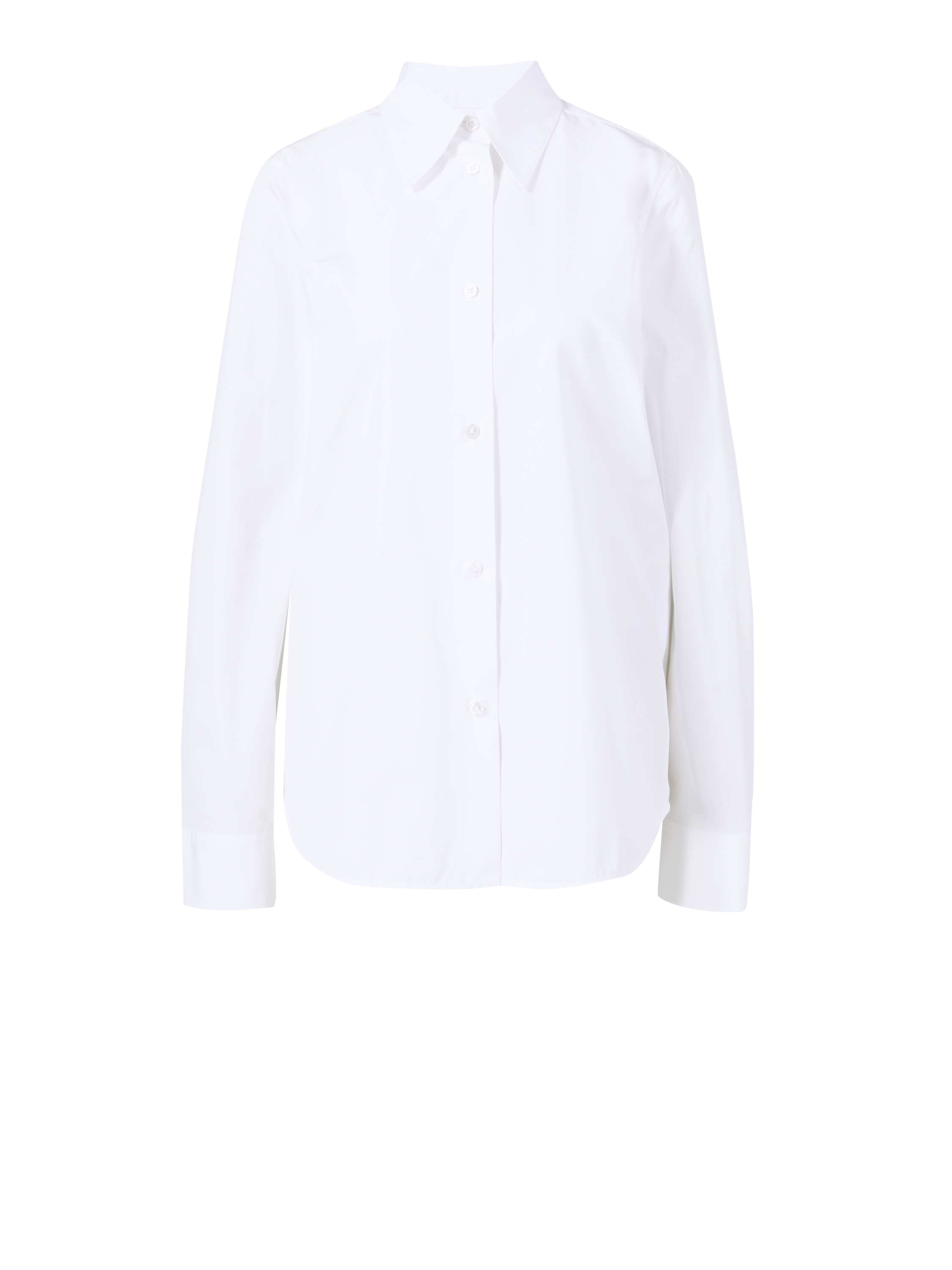 Dieses klassische Hemd in Weiß von JIL SANDER wurde aus reiner Baumwolle gefertigt und besticht durch den Knopfverschluss vorne. Der spitze Kragen und der abgerundete Saum zeichnen dieses Design aus.