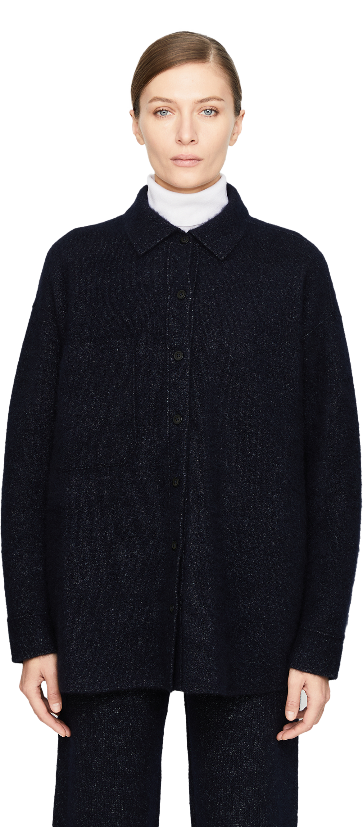 Das Hemd 'Briala' in Navy von Iris von Arnim wurde aus einer hochwertigen Cashmere-Seidenmischung gefertigt und besticht durch die weiche Haptik. Der spitze Kragen, die durchgehende Knopfleiste mit Logoprägung auf den Knöpfen und die Knopf-Manschetten zeichnen dieses hochwertige Design aus.