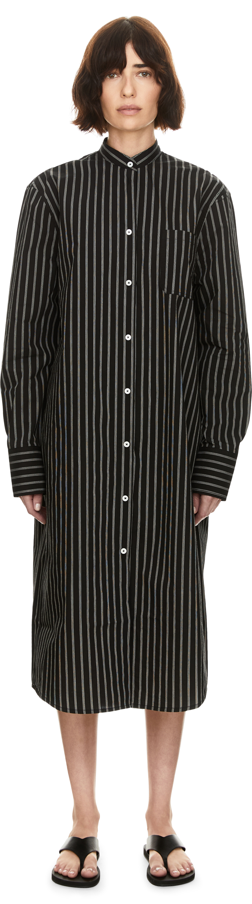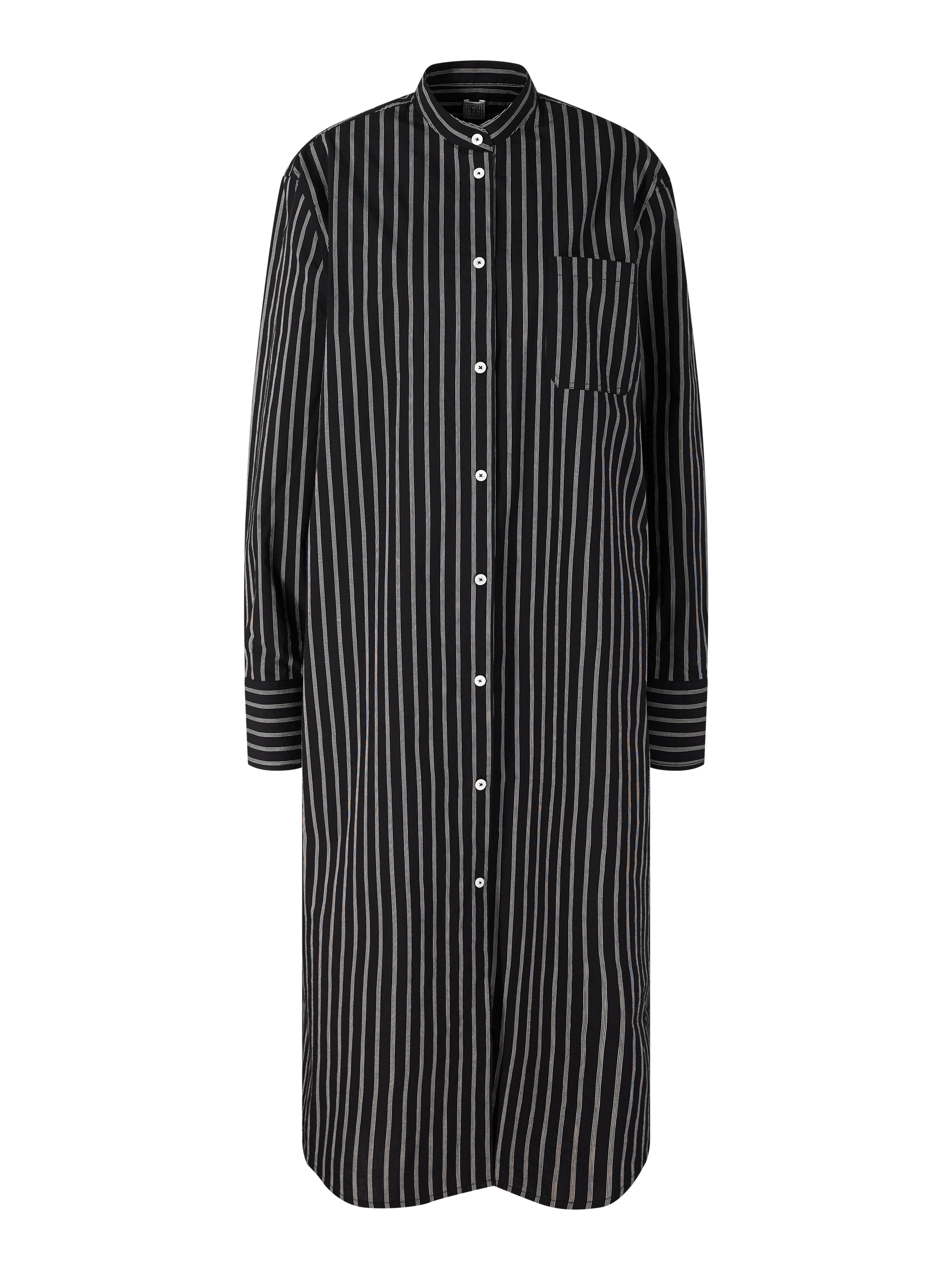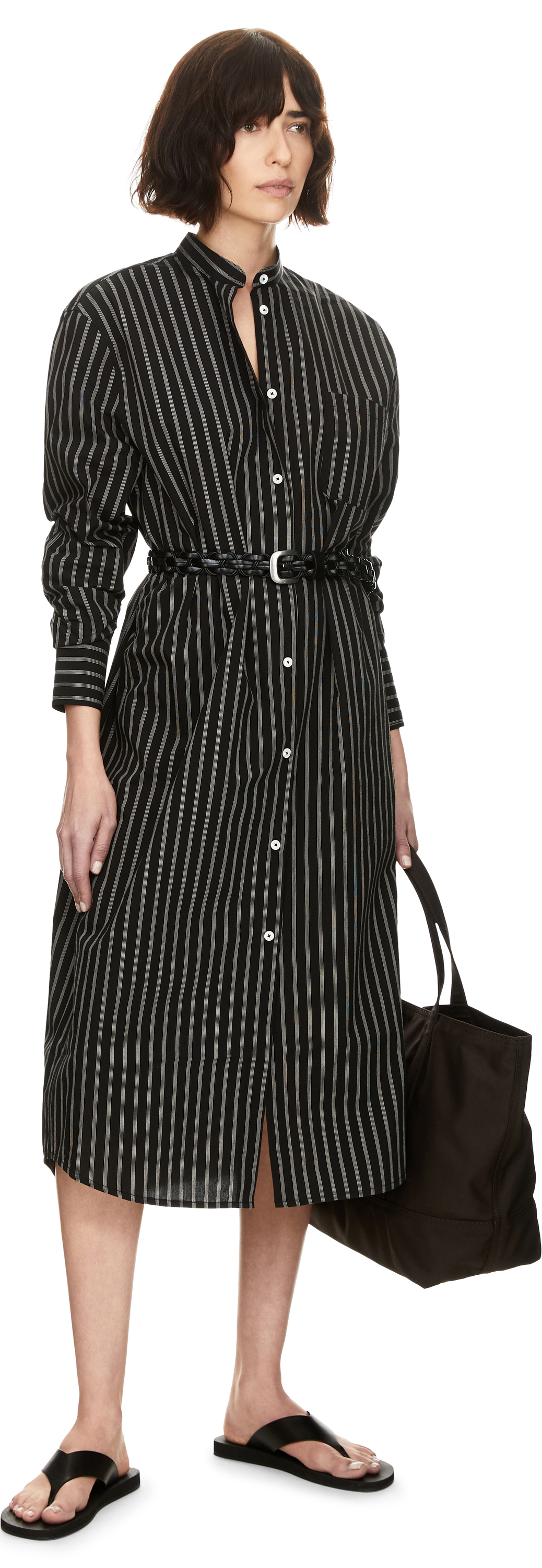 Die Tunika 'Summer' in Schwarz von TOTEME wurde aus einer Baumwollmischung gefertigt und besticht durch den geraden Schnitt. Das leicht griffige Popeline, die feinen Streifen, die aufgesetzte Brusttasche sowie die durchgehende Knopfleiste mit Logoprägung runden das Modell stilvoll ab.