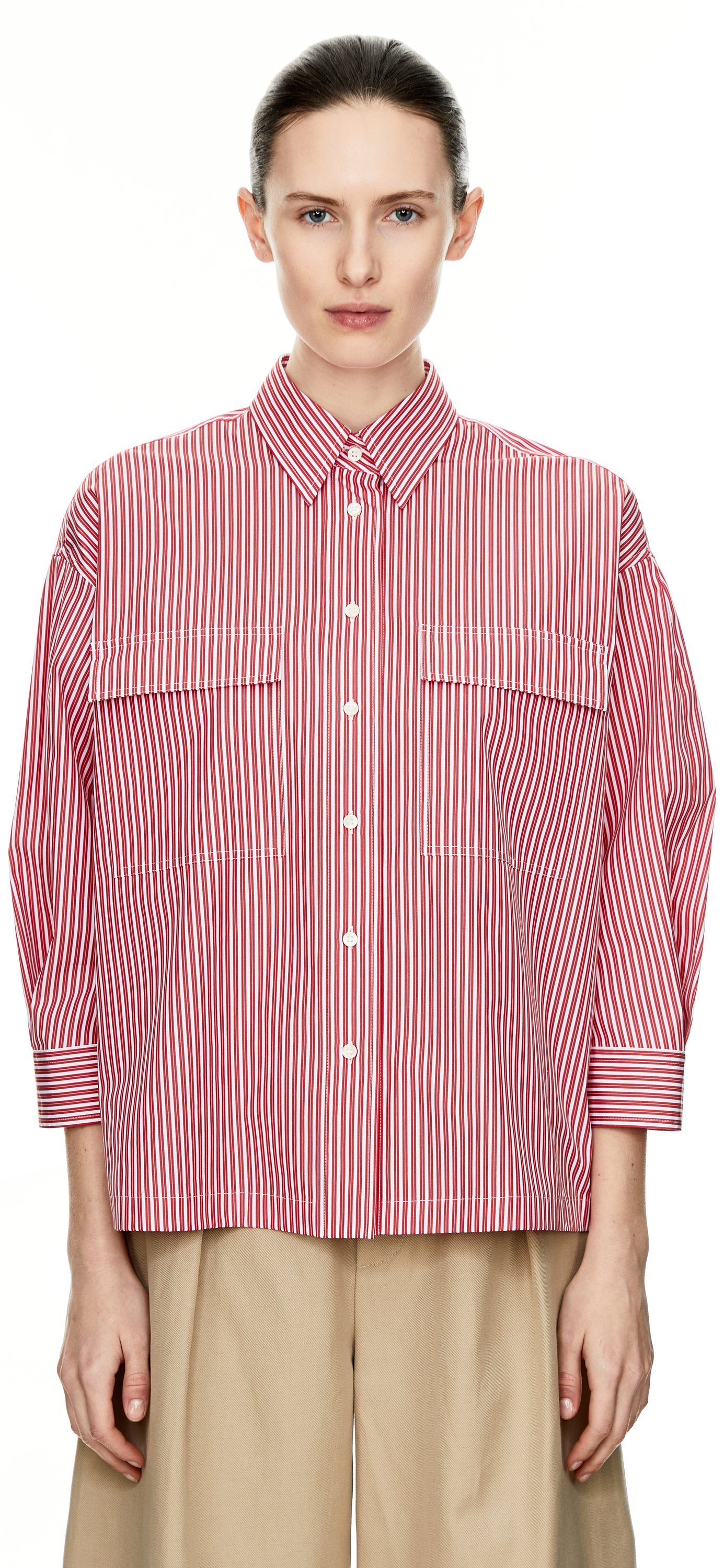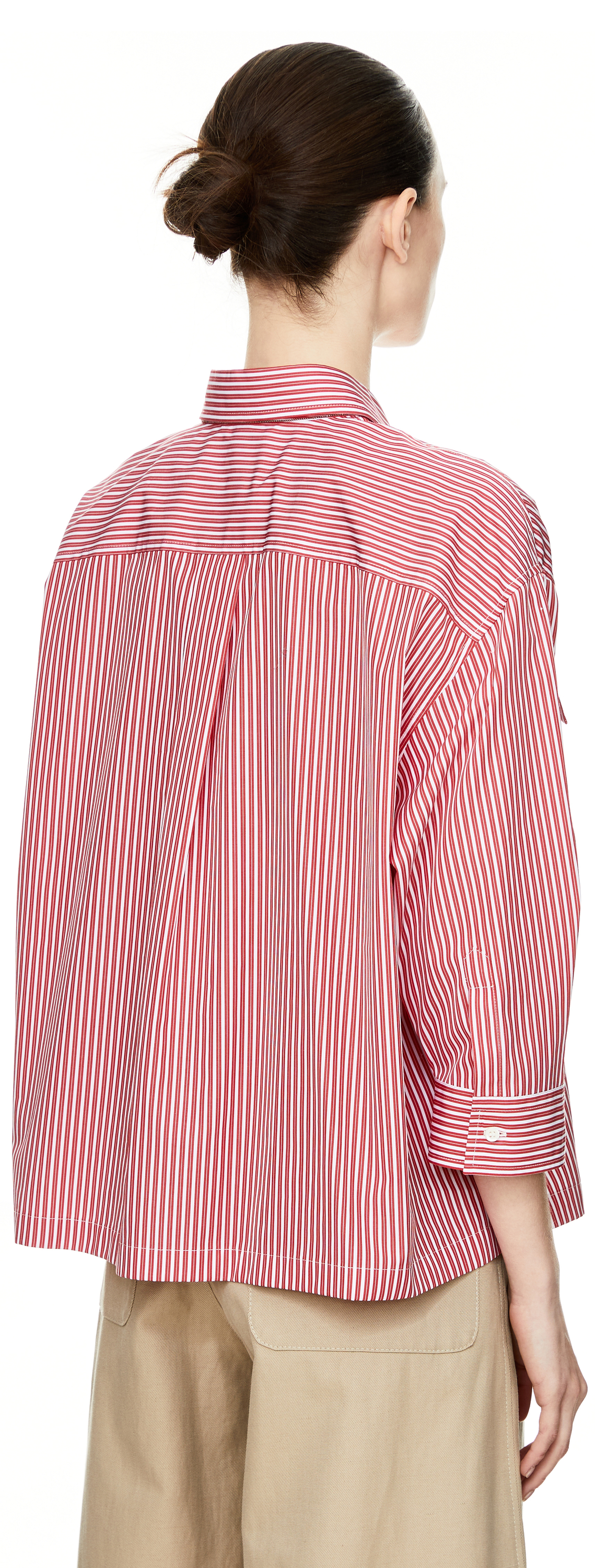 Dieses Hemd in Rot von Brunello Cucinelli wurde aus reiner Baumwolle gefertigt und besticht durch die kurzen, weiten Ärmel. Die Knopfleiste, die Monili-Perlen um den Kragen sowie die zwei Brusttaschen vollenden diesen Look.