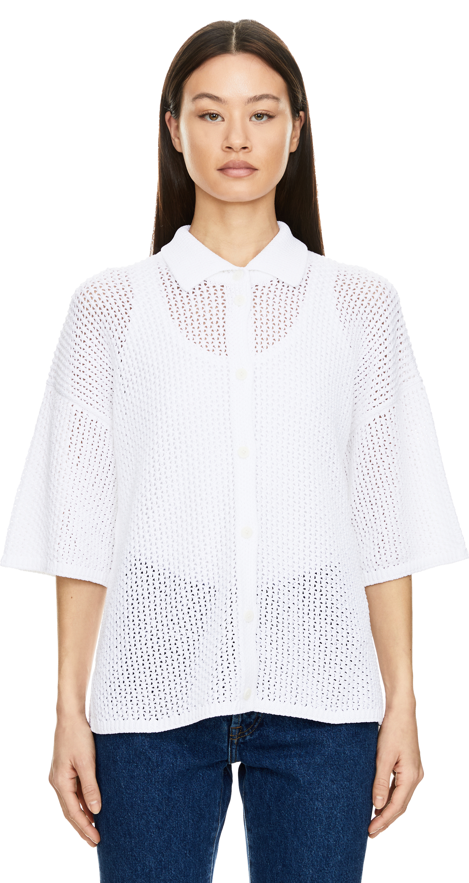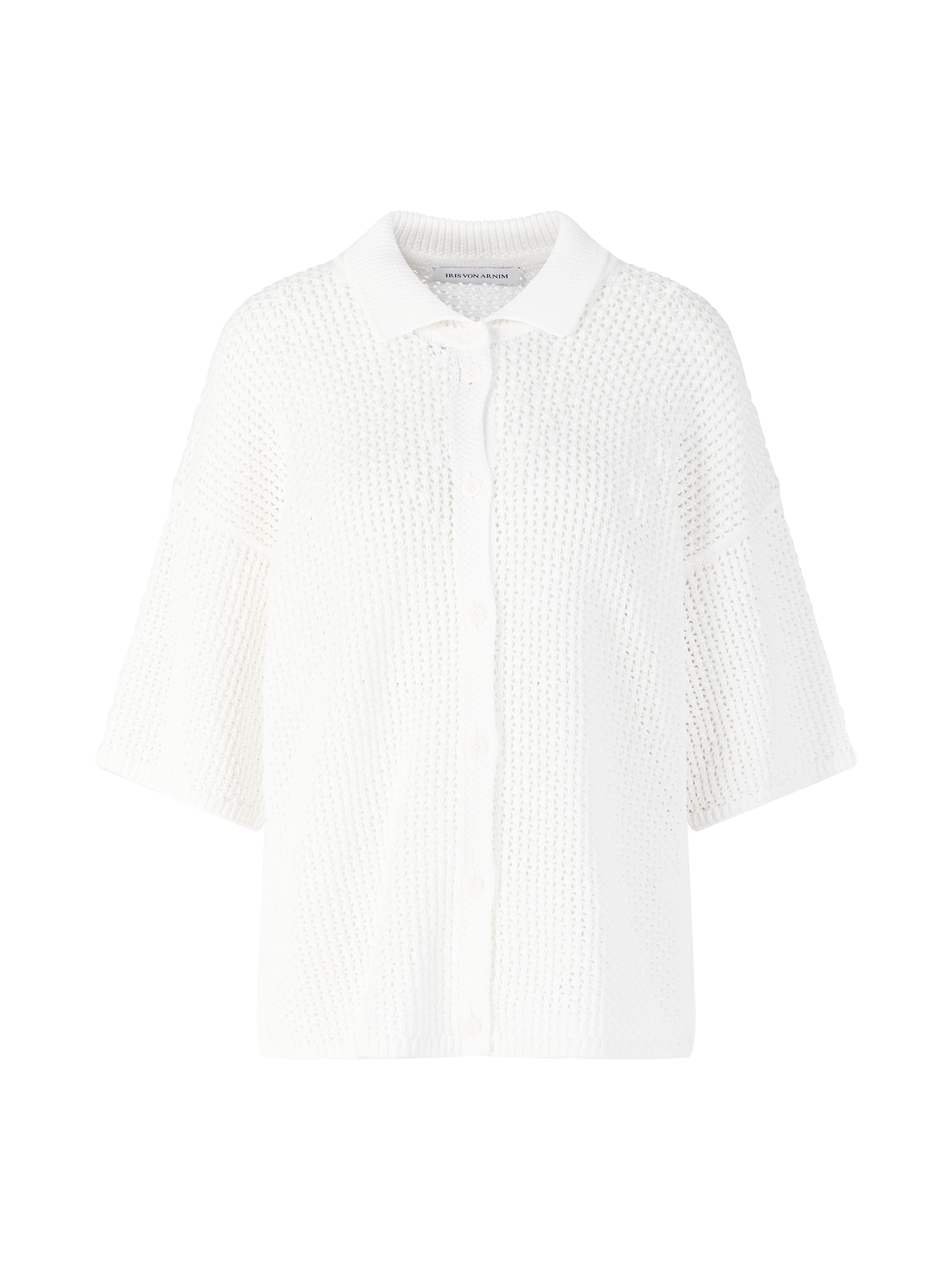 Das Hemd 'Bormio' in Bianco von Iris von Arnim wurde aus reiner Baumwolle gefertigt und besticht durch die feine Lochstruktur. Der gerippte Hemdkragen, die durchgehende Knopfleiste mit Logo-Prägung sowie die überschnittenen Schultern runden dieses Design stilvoll ab.