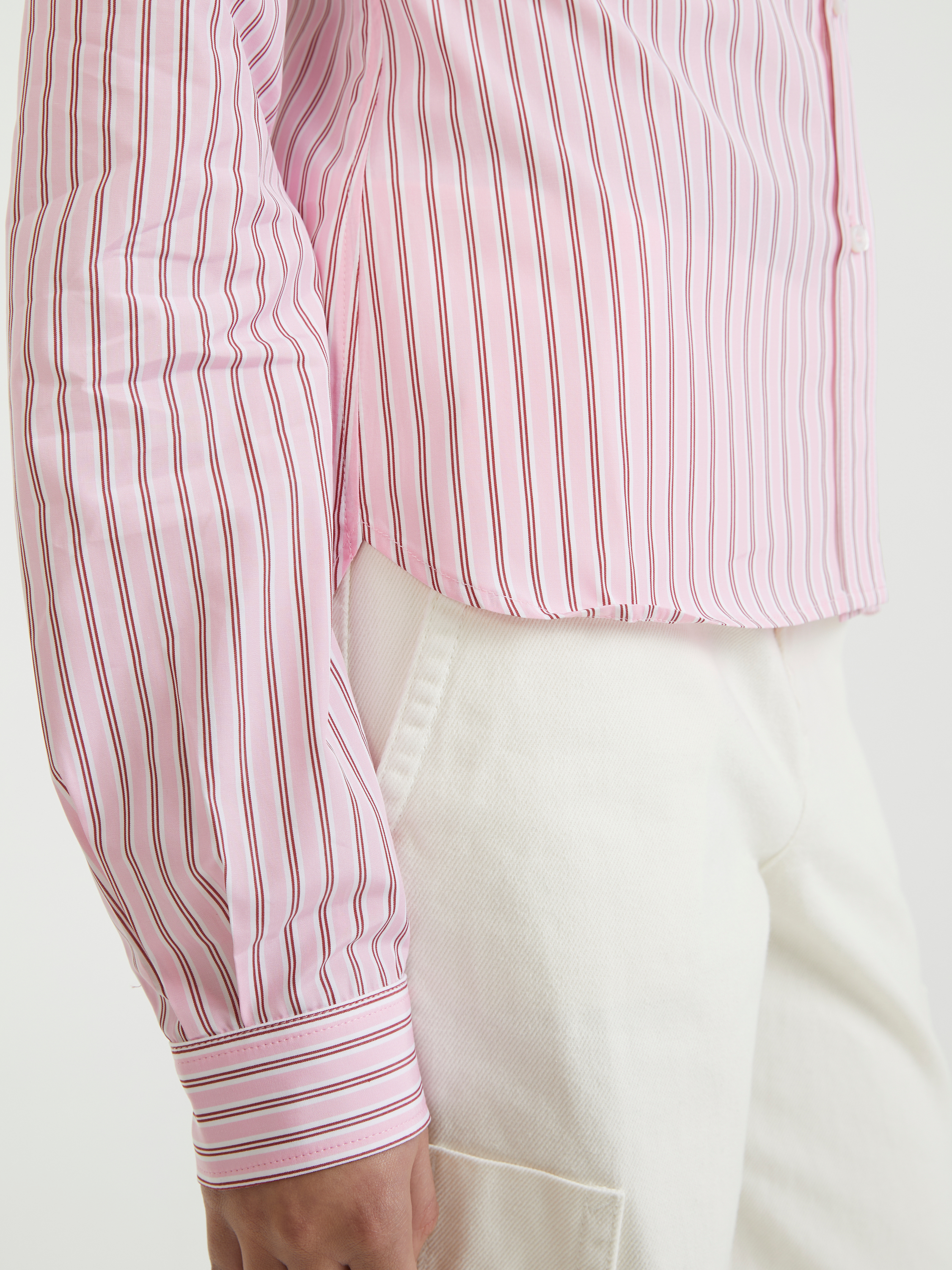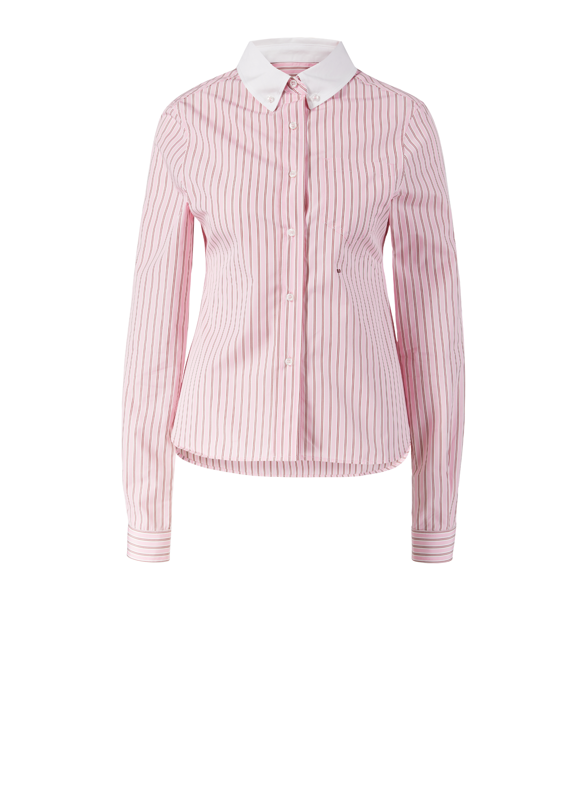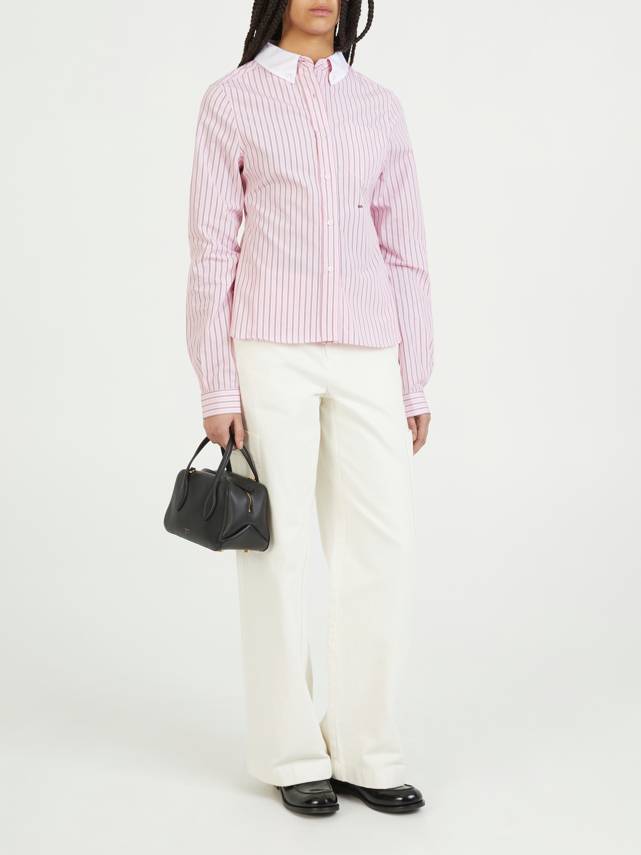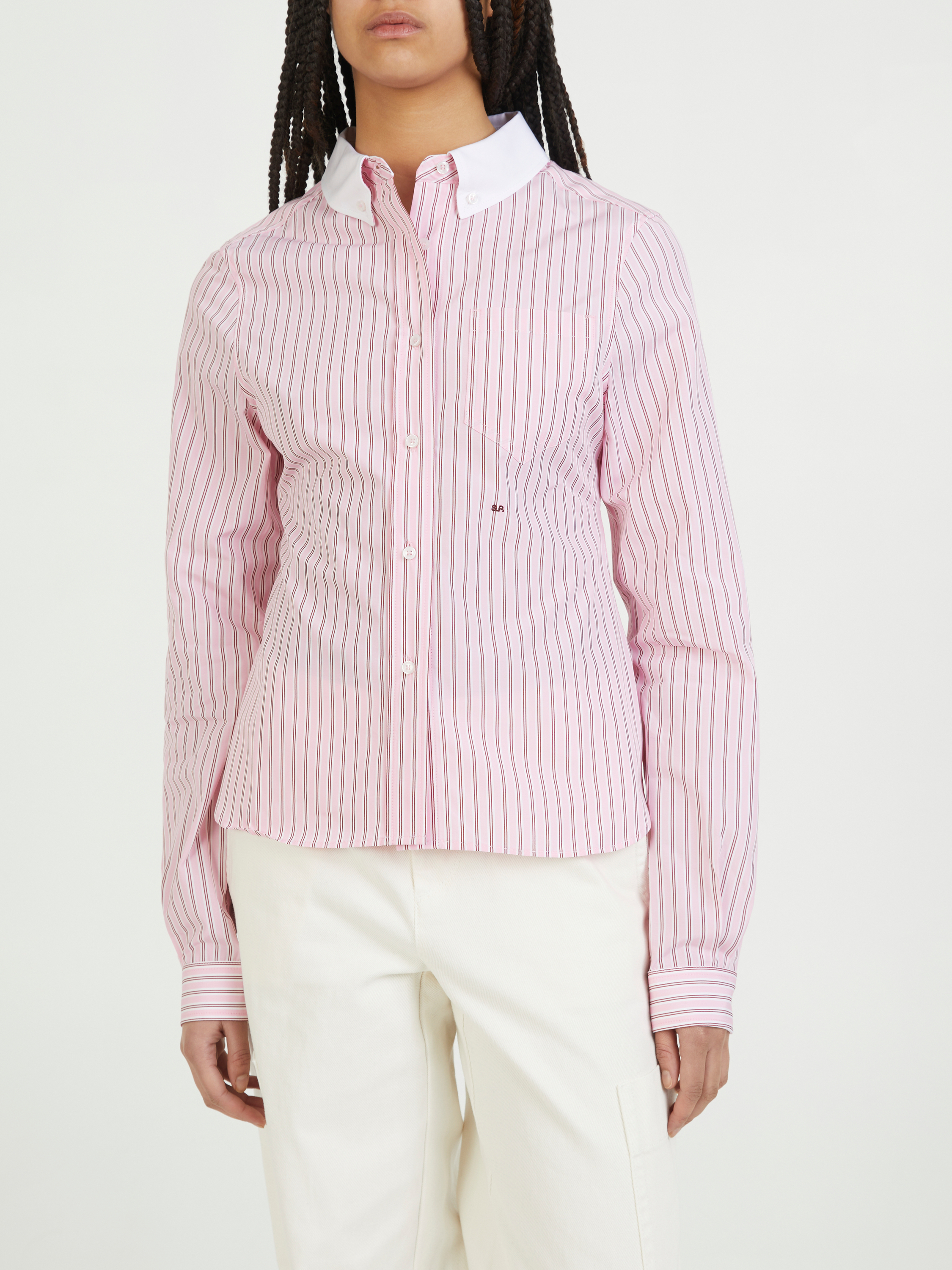 Das Hemd 'Rylo' in Rosé/Weiß von SAKS POTTS wurde aus hochwertiger Thomas Mason Baumwolle gefertigt und besticht durch die gerade Silhouette. Die langen Ärmel, der abgesetzte Kragen und die verkürzte Front machen dieses Modell zu einem echten Hingucker.