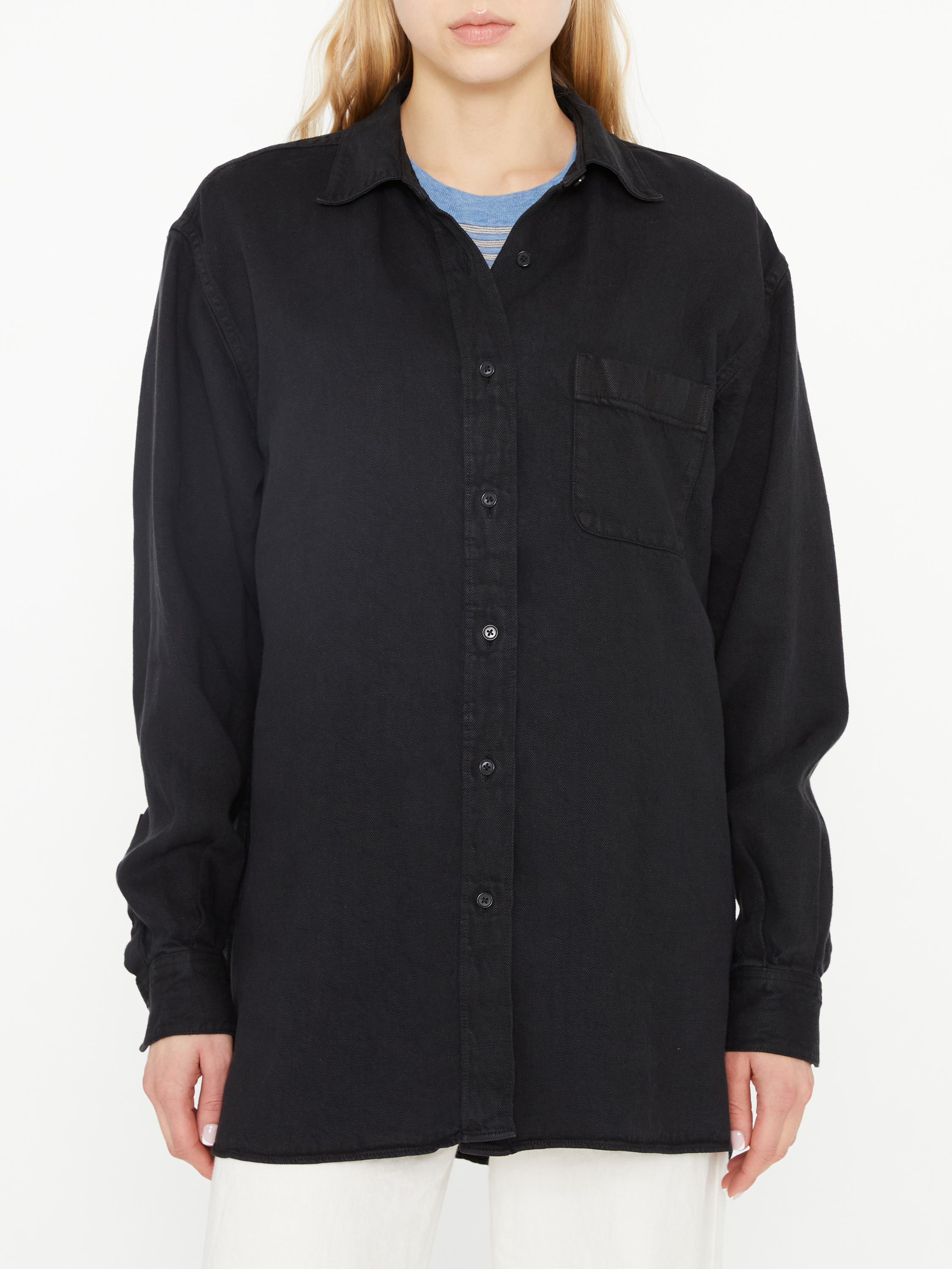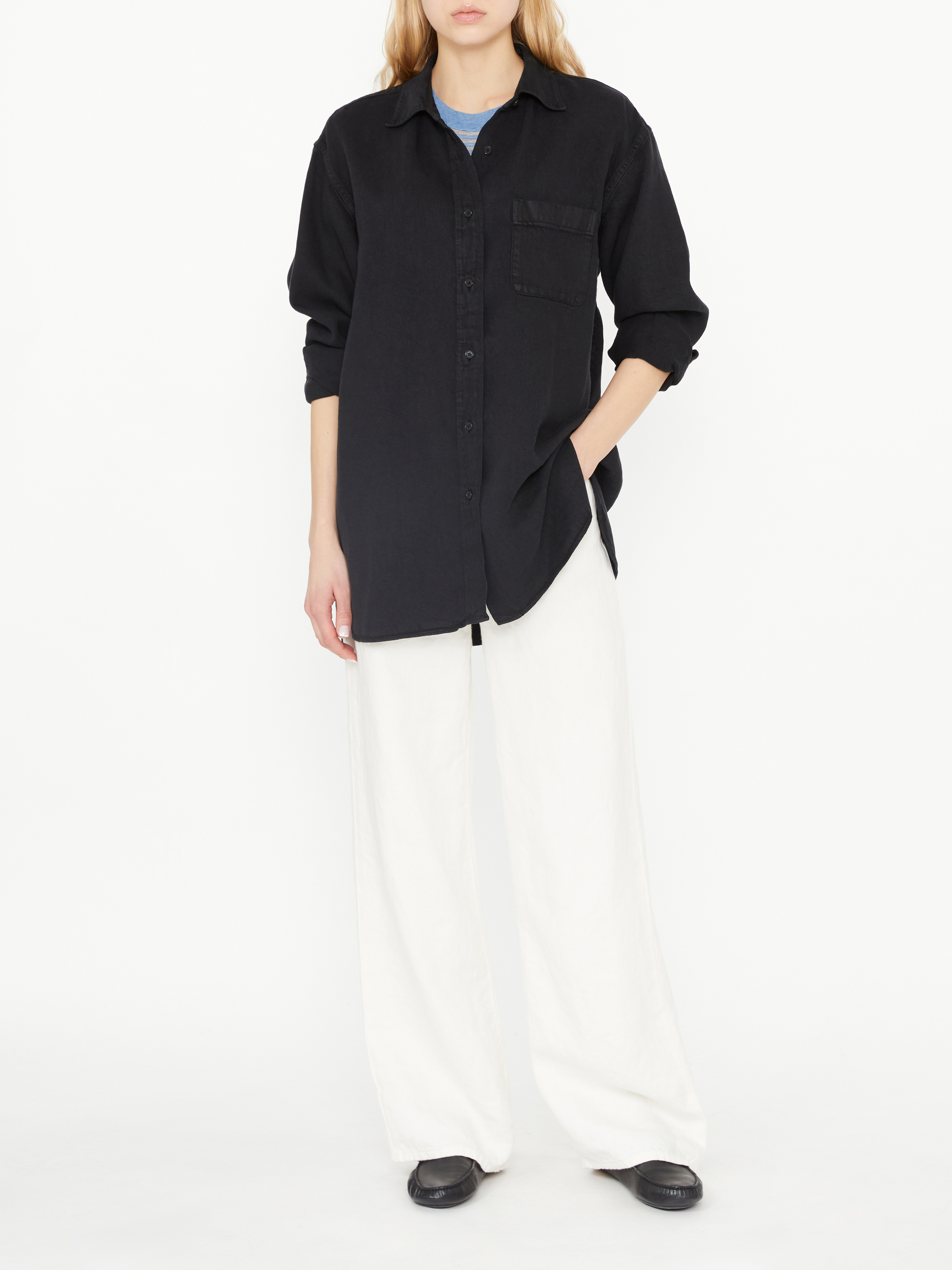Das Hemd 'Nesson' in Schwarz von The Row wurde aus hochwertigem Leinen gefertigt und besticht durch die aufgesetzte Brusttasche. Die gerade Silhouette, die einreihige Knopfleiste und der Umlegekragen zeichnen dieses Modell aus.