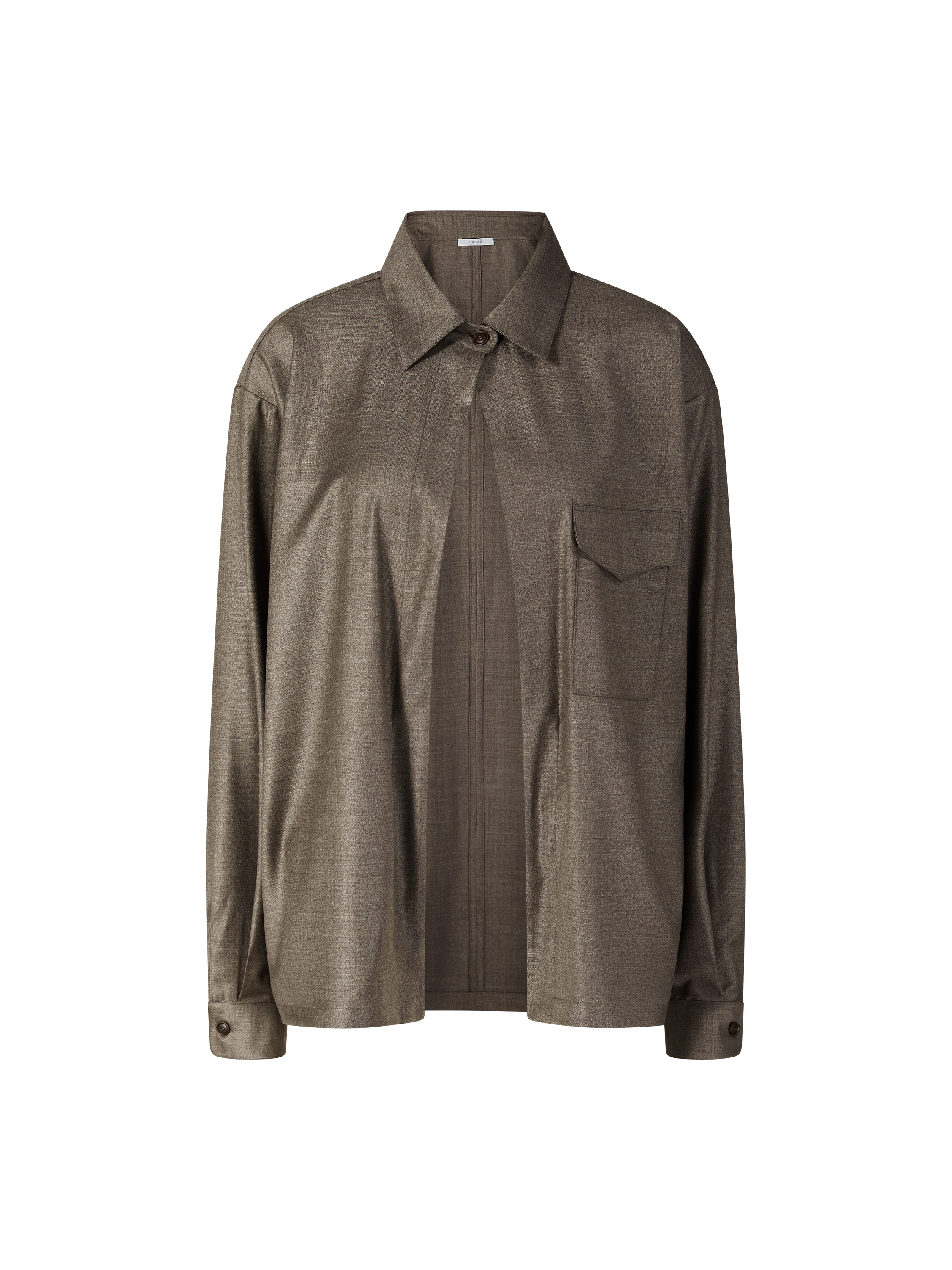 Das Hemd 'Tasmania' in Braun von Dušan wurde aus hochwertiger Schurwolle gefertigt und besticht durch das minimalistische Design. Die lockere Passform und der einzelne Knopfverschluss oben verleihen dem Modell eine moderne Silhouette. Die Brusttasche mit Patte sowie innenliegende Eingrifftaschen sorgen für praktische Funktionalität.