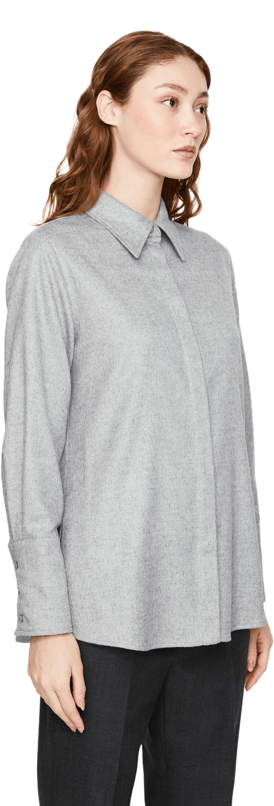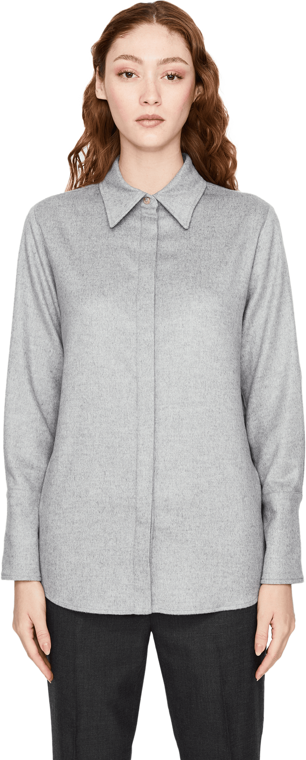 Dieses Hemd in Grau von Colombo wurde aus einer hochwertigen Seiden-Cashmere-Mischung gefertigt und besticht die weiche Haptik. Der spitze Kragen, die verdeckte Knopfleiste und der abgerundete Saum zeichnen dieses Design aus.
