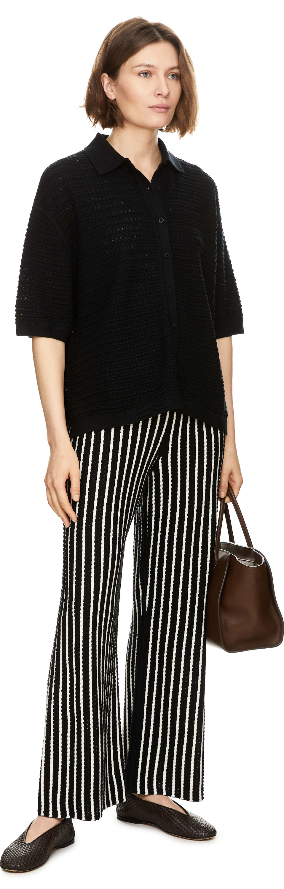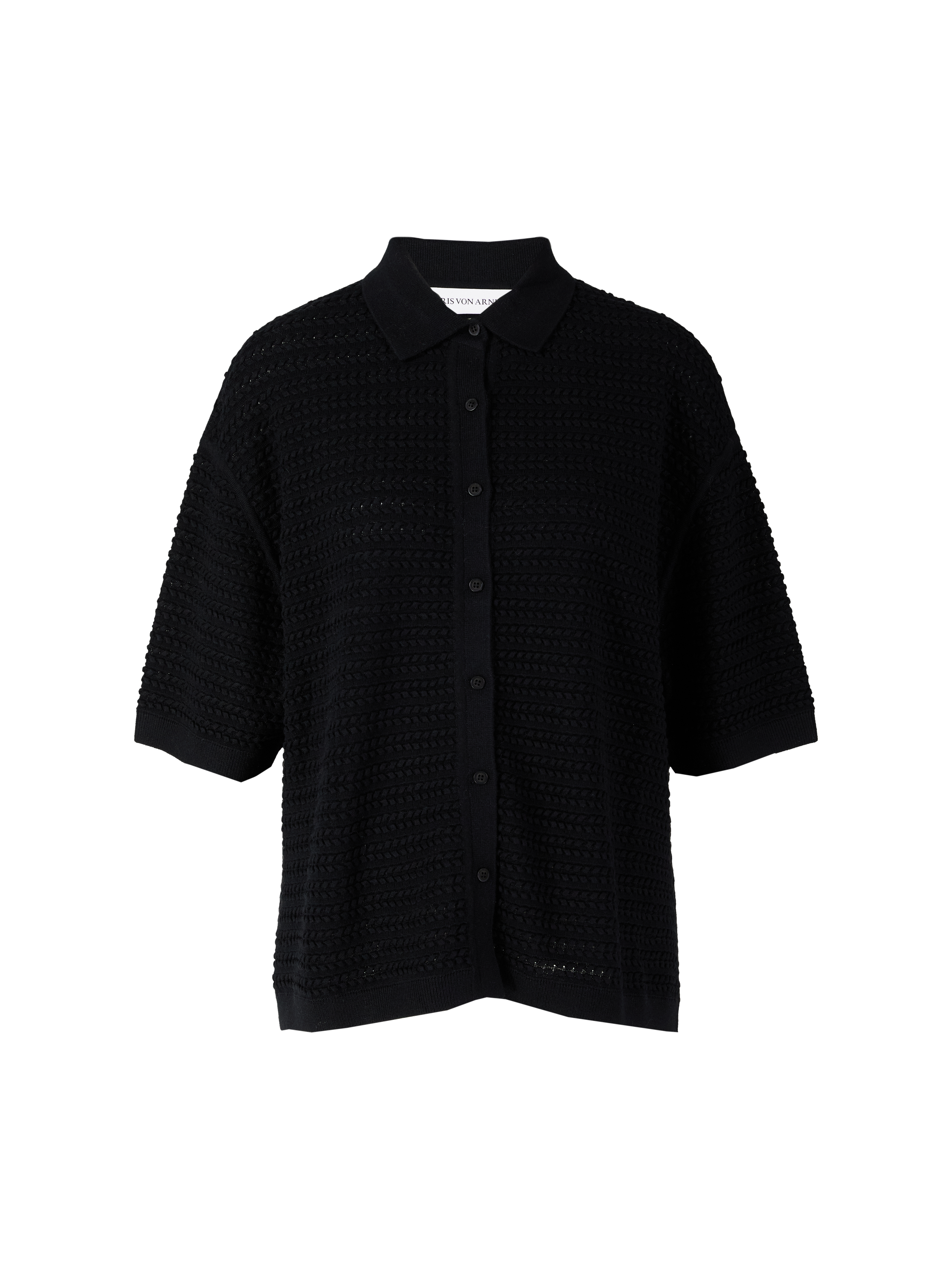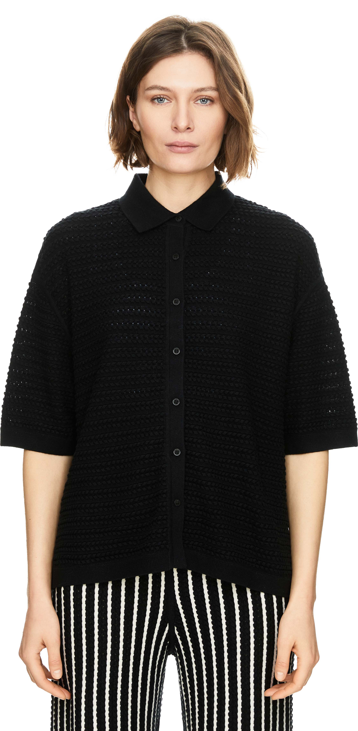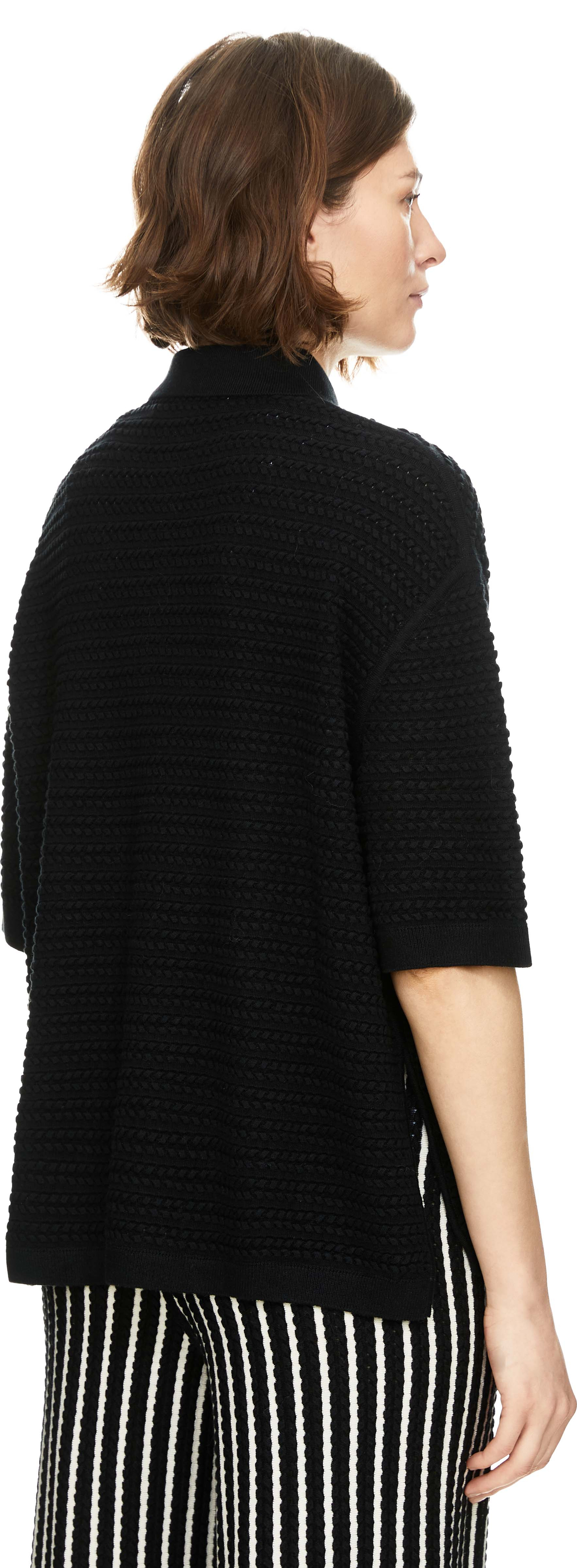 Das Shirt 'Antibes' in Nero von Iris von Arnim wurde aus einer hochwertigen Cashmere-Seidenmischung gefertigt und besticht durch den Polokragen. Die Rippstrickbündchen, die überschnittenen Schultern sowie der geknöpfte Ausschnitt zeichnen dieses Modell aus.