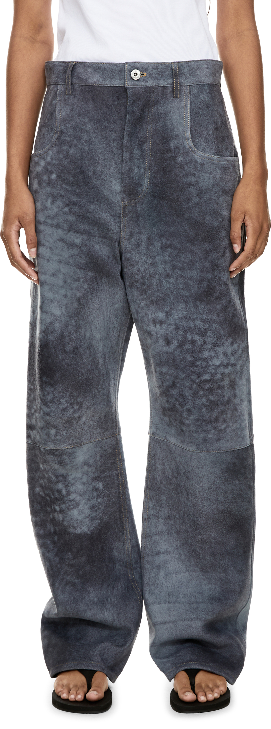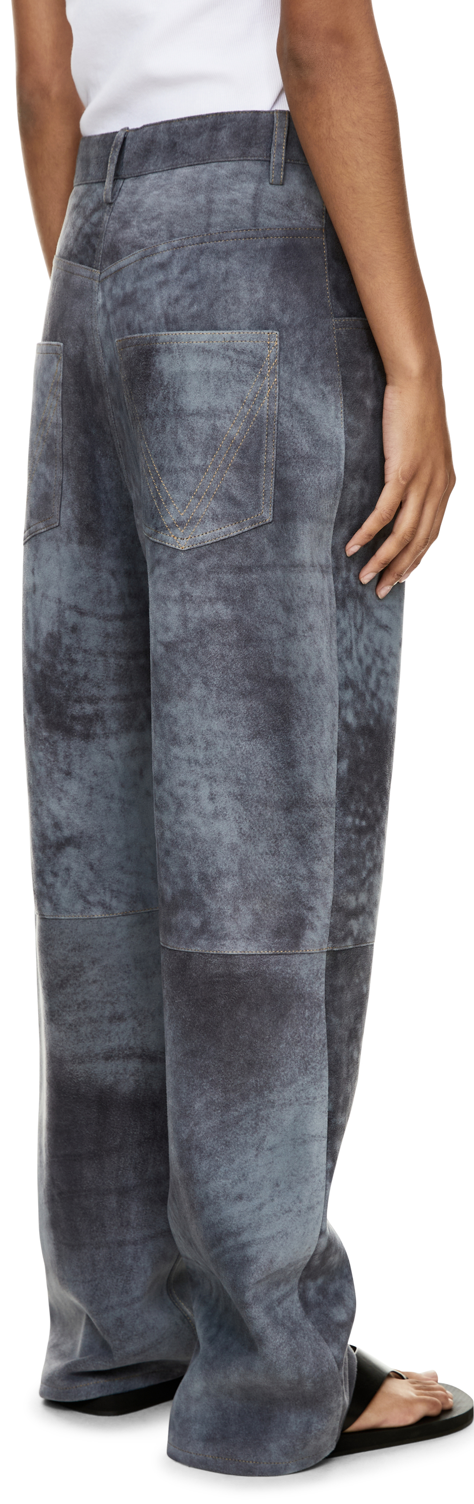 Diese Hose in Blau von Bottega Veneta wurde aus hochwertigem Velourslammleder gefertigt und besticht durch das wolkige Finish. Das weite Bein in Kombination mit der mittleren Leibhöhe verleiht dem Modell eine lässige Silhouette. Der Knopfverschluss mit Logoprägung sowie die charakteristischen Nähte an der aufgesetzten Gesäßtasche unterstreichen das ikonische Design.