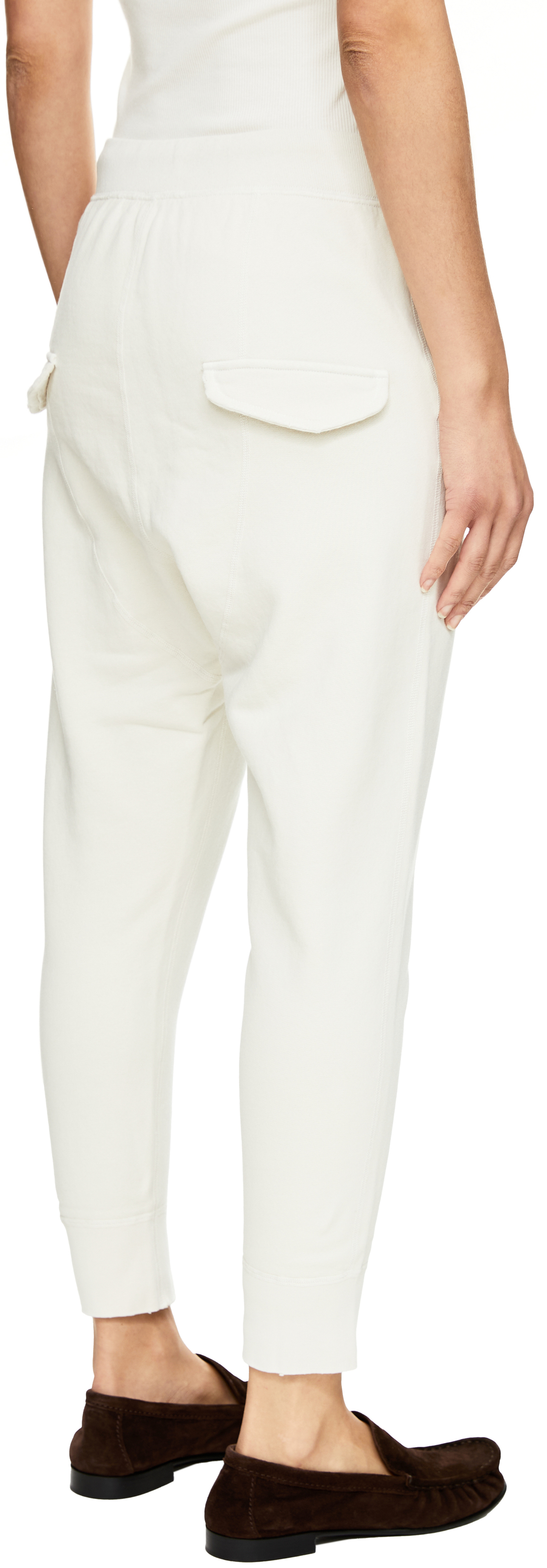Die Jogginghose 'Nolan' in Crème von NILI LOTAN wurde aus reiner Baumwolle gefertigt und besticht durch den komfortablen Schnitt. Ein elastischer Bund mit Kordelzug sorgt für eine flexible Passform, während der tiefe Schritt den lässigen Charakter unterstreicht. Seitliche Eingrifftaschen und rückseitige Zierklappen runden das sportlich-elegante Design ab.