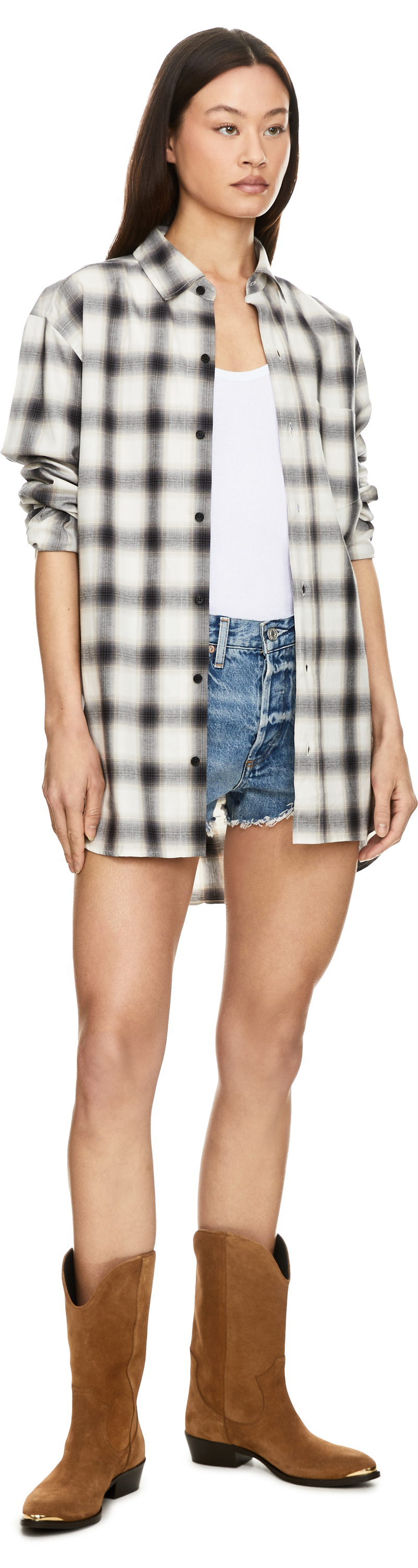 Das Model ist 178 cm groß und trägt Größe 27.